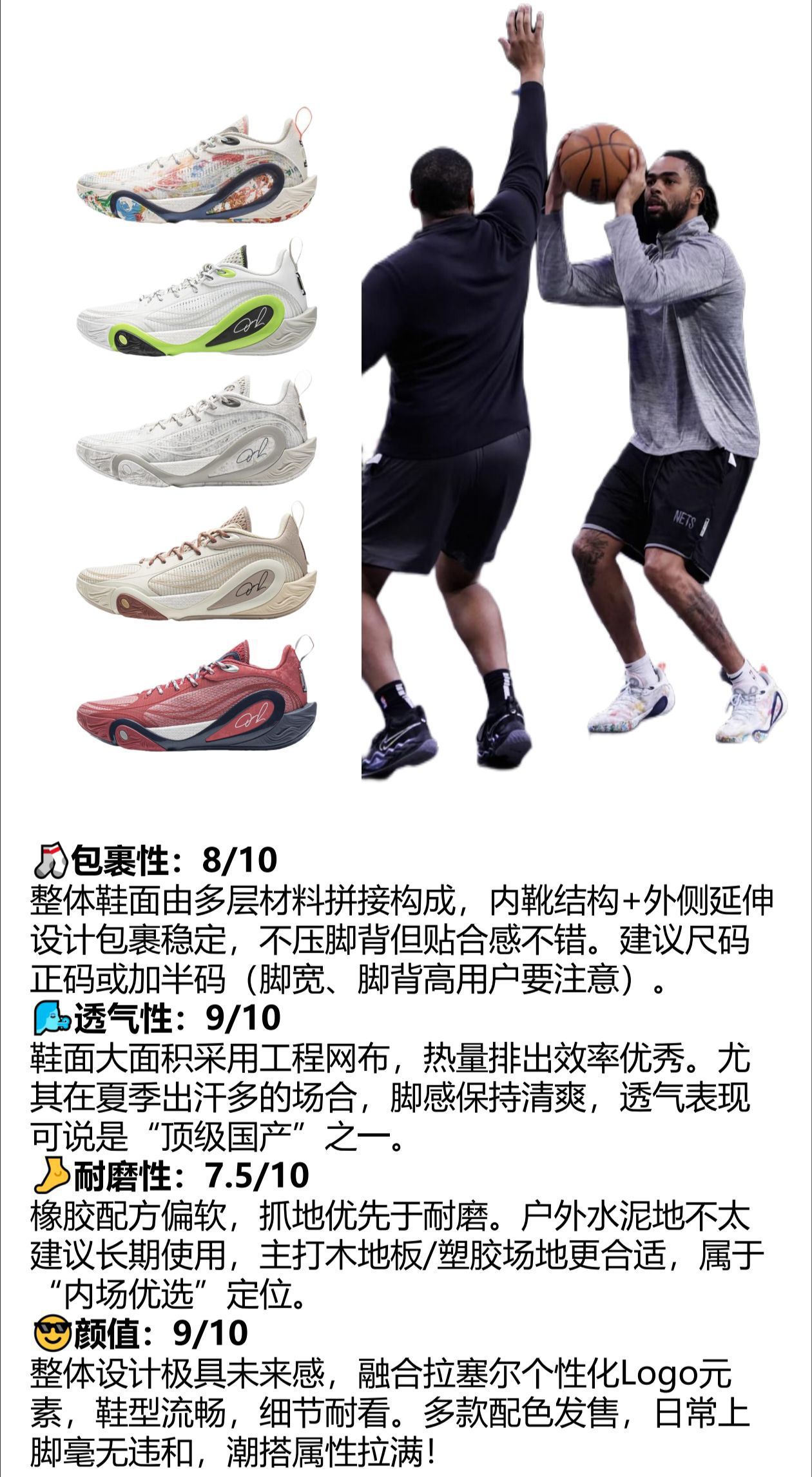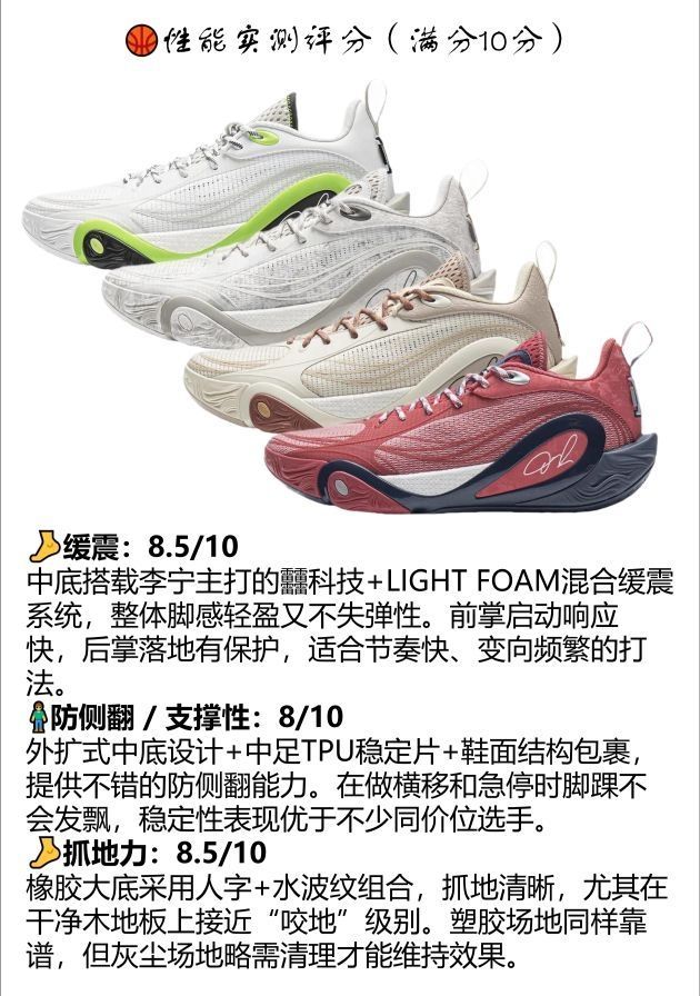 🌪轻若无物,透气出奇,实战稳如老狗,谁说国产签名鞋打不了? 这双李宁 DLO1,是拉塞尔签约李宁后的首款签名鞋。作为国产实战鞋市场上的“新晋狠角”,我用它打了整整一周全场+半场实战,场地从木地板到户外塑胶,以下是我给出的最真实评价👇 🧪性能实测评分(满分10分) 🔹缓震:8.5/10 中底搭载李宁主打的䨻科技+LIGHT FOAM混合缓震系统,整体脚感轻盈又不失弹性。前掌启动响应快,后掌落地有保护...