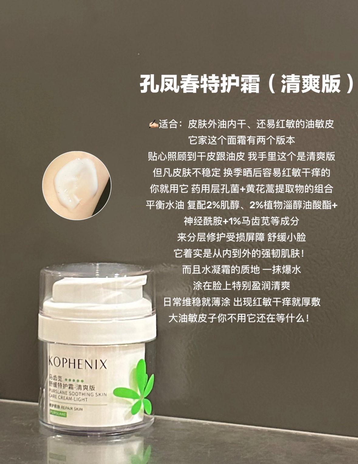 本篇笔记关联了孔凤春 升级款马齿苋保湿喷雾 小分子细腻嫩肤清爽控油晒后修护舒缓干燥敏肌适用 【2.0】补水保湿、孔凤春 马齿苋护肤套装 修护去闭口粉刺净痘舒缓痘肌 精华液30ml+祛痘膏15g、孔凤春 马齿苋净颜清洁泥膜 收敛毛孔去黑头白头闭口 深层清洁等商品,为用户提供真实的使用体验和购买参考。