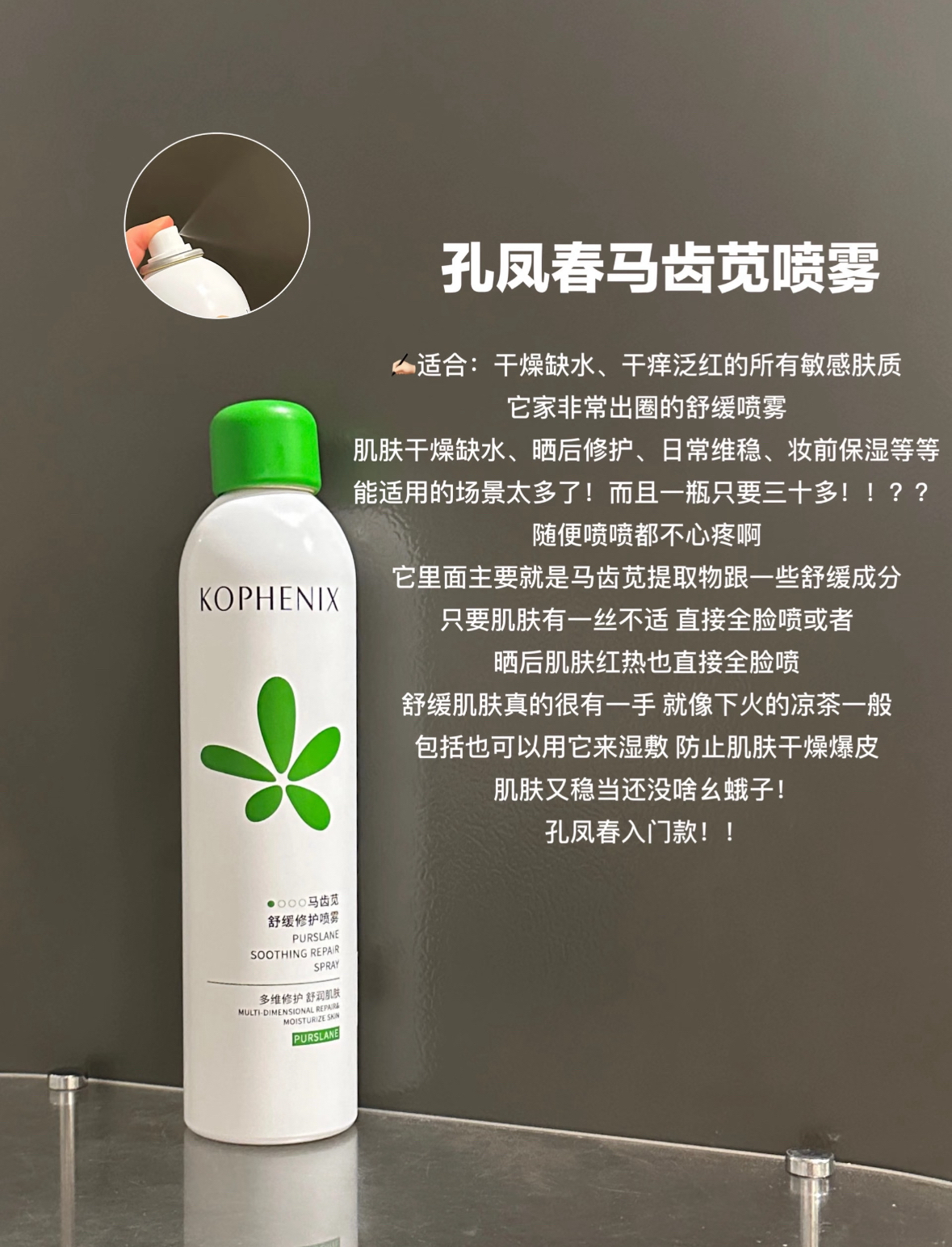 作孔凤春老粉! 再次感叹,你不赚钱的吗! 不卖颜值、不卖情怀、纯靠自己的实力的百年国货品牌! 孔凤春!!真的要哭s我G!平价又大碗! 它家不止马齿苋舒缓喷雾好用哎 用了一圈,发现它家这个系列的其他产品效果也很在线!! 那么多产品,到底如何选? 我直接来分享下使用感受,姐妹们根据自行护肤需求,对号入座! •孔凤春马齿苋喷雾 人适合:干燥缺水、干痒泛红的所有敏感肤质肌肤干燥缺水、晒后修护、日常维稳、妆...