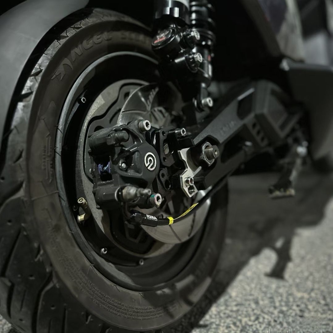 外观机甲破风设计太带感,线条凌厉棱角分明! 峰值功率2500W不是吹的,拧动把手瞬间提速超猛,最高时速55km/h,遇到紧急情况想冲刺,弹射模式一开启,极速能飙到60km/h,那推背感简直刺激,偶尔撒个欢太爽了。