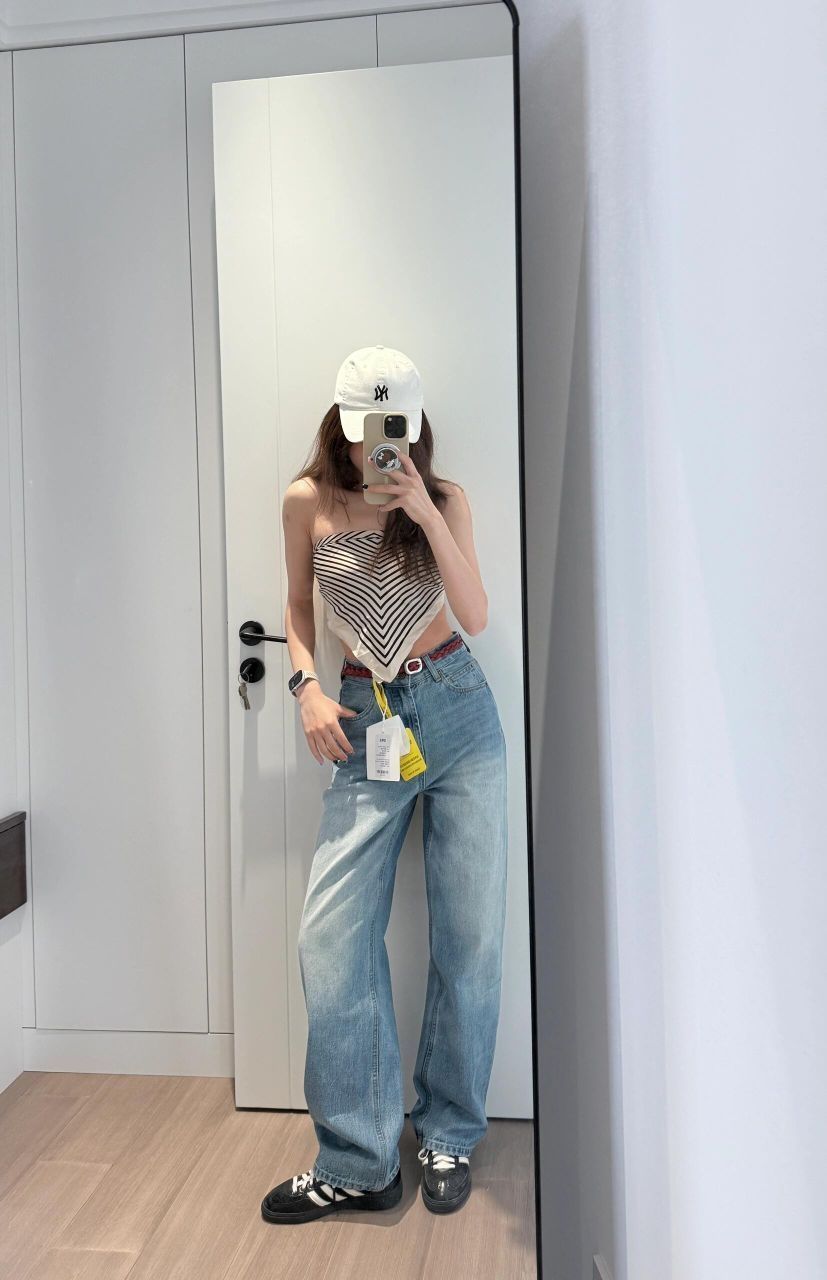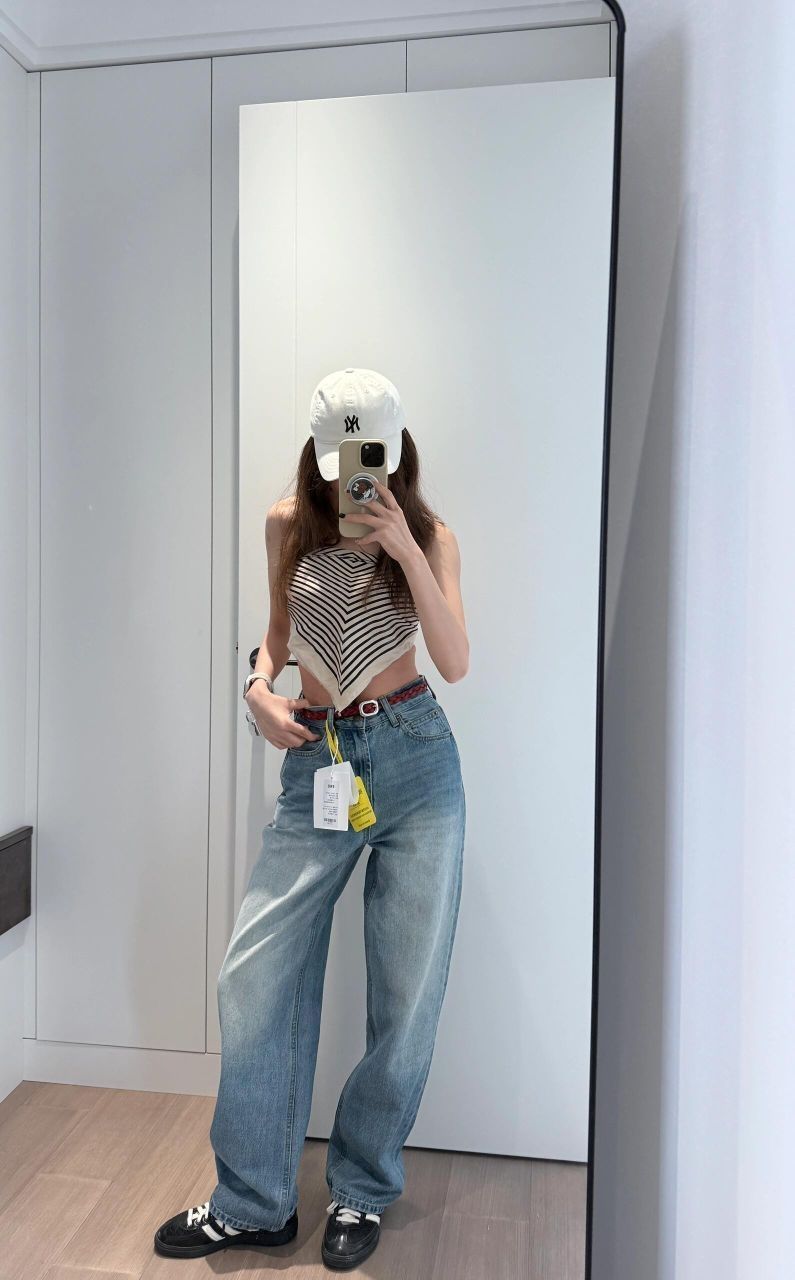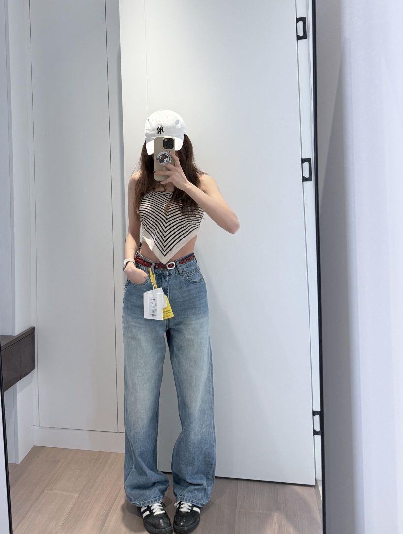 这条牛仔裤 上新的时候就觉得蛮好看的 为啥没人买捏 原图直出 版型可以 这条裆也不咋长 显高显腿直 裤脚微收又不是完全小脚 穿平底鞋可以不拖地