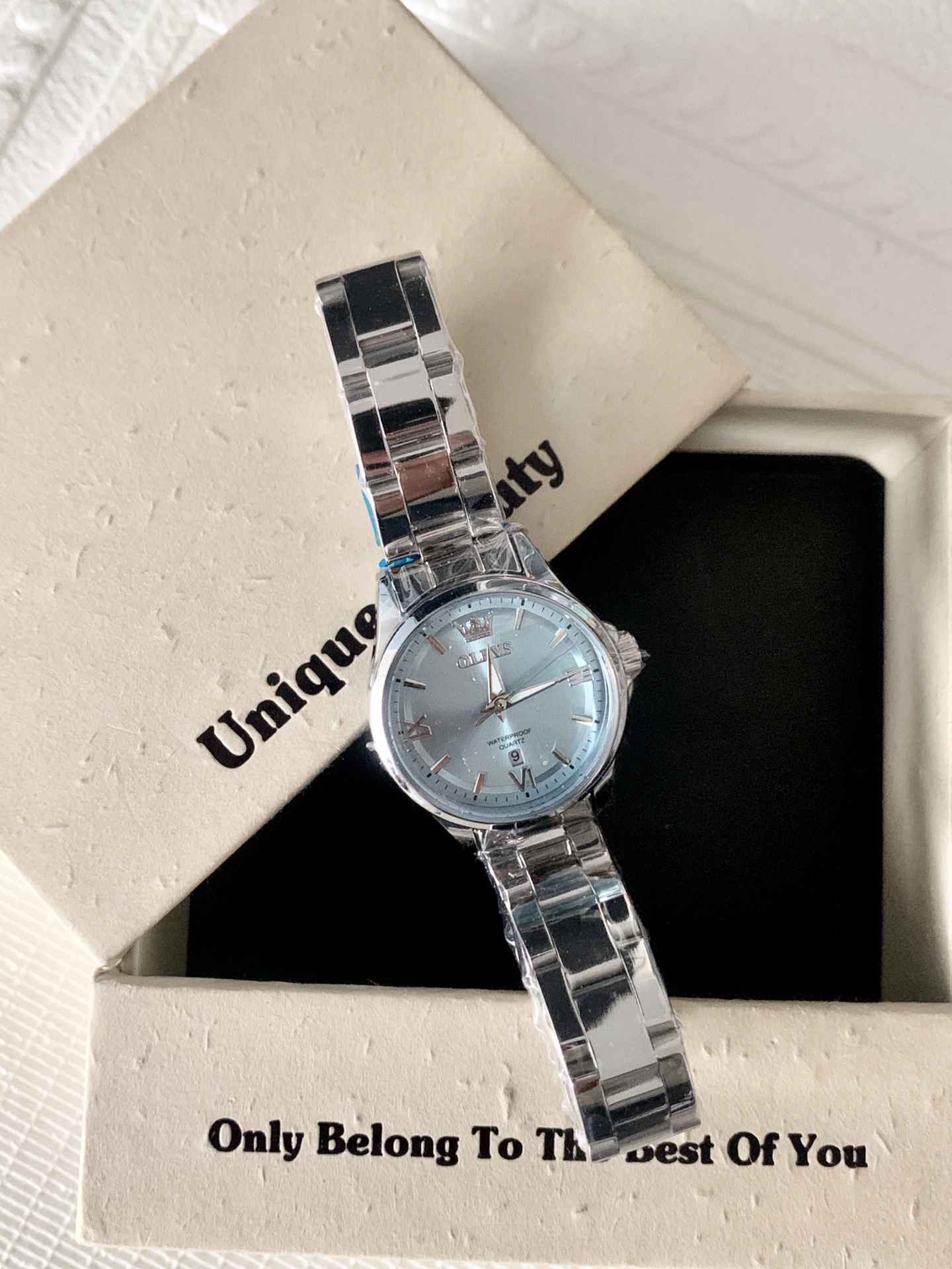本篇笔记关联了OLEVS/欧利时 璀璨系列 时尚轻奢复古镶钻日历精致小巧日常百搭防水石英女士手表 银带蓝面等商品,为用户提供真实的使用体验和购买参考。