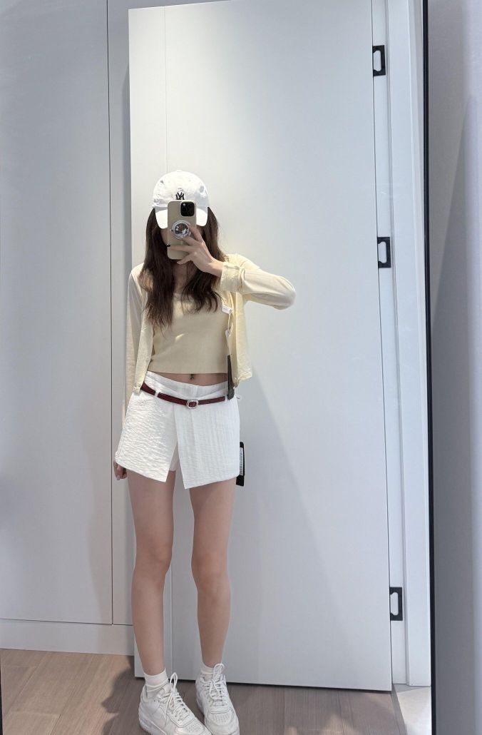 开衫和吊带有点短了说实话哈哈 裙裤比较喜欢 质感还是不错的 正在考虑是否留下