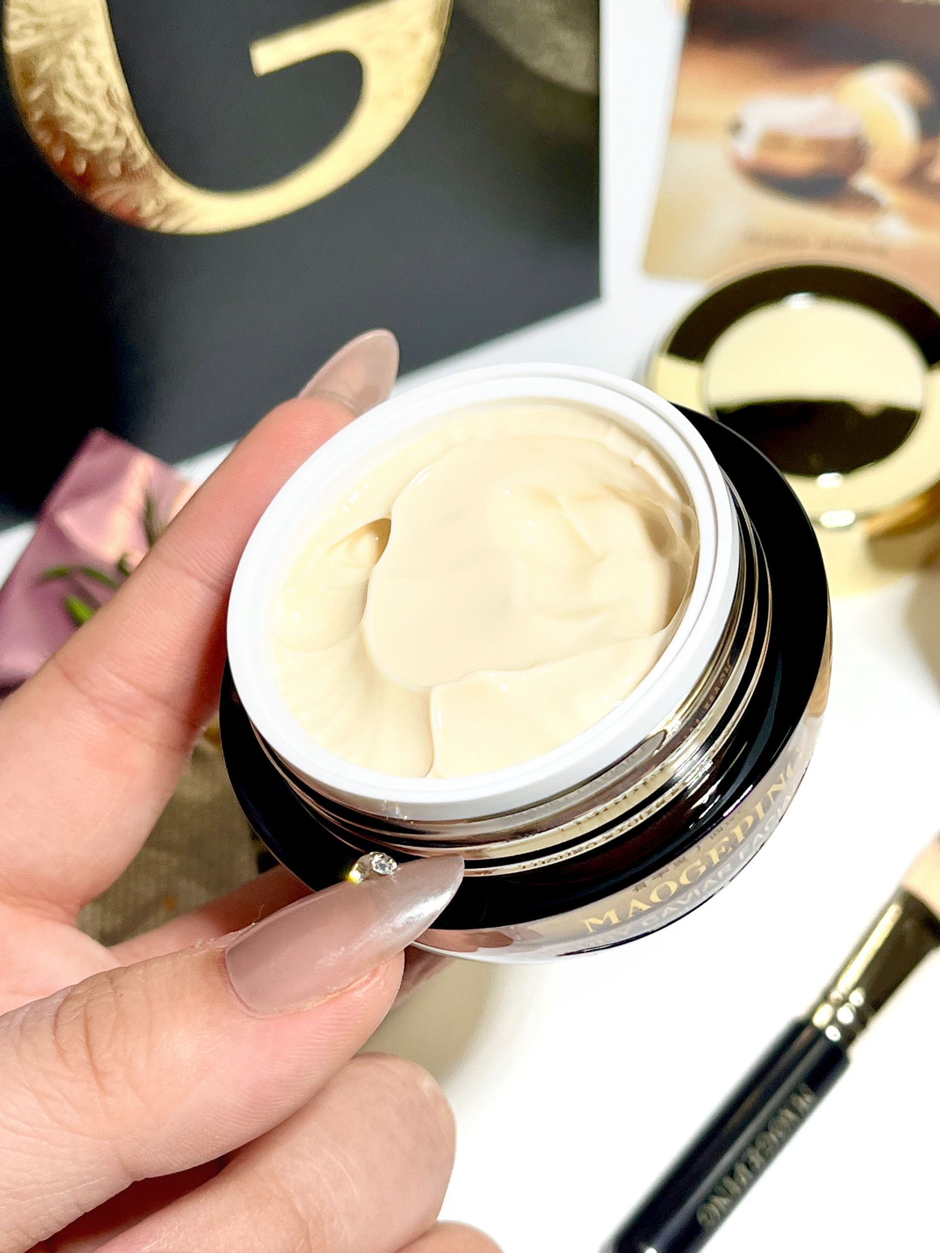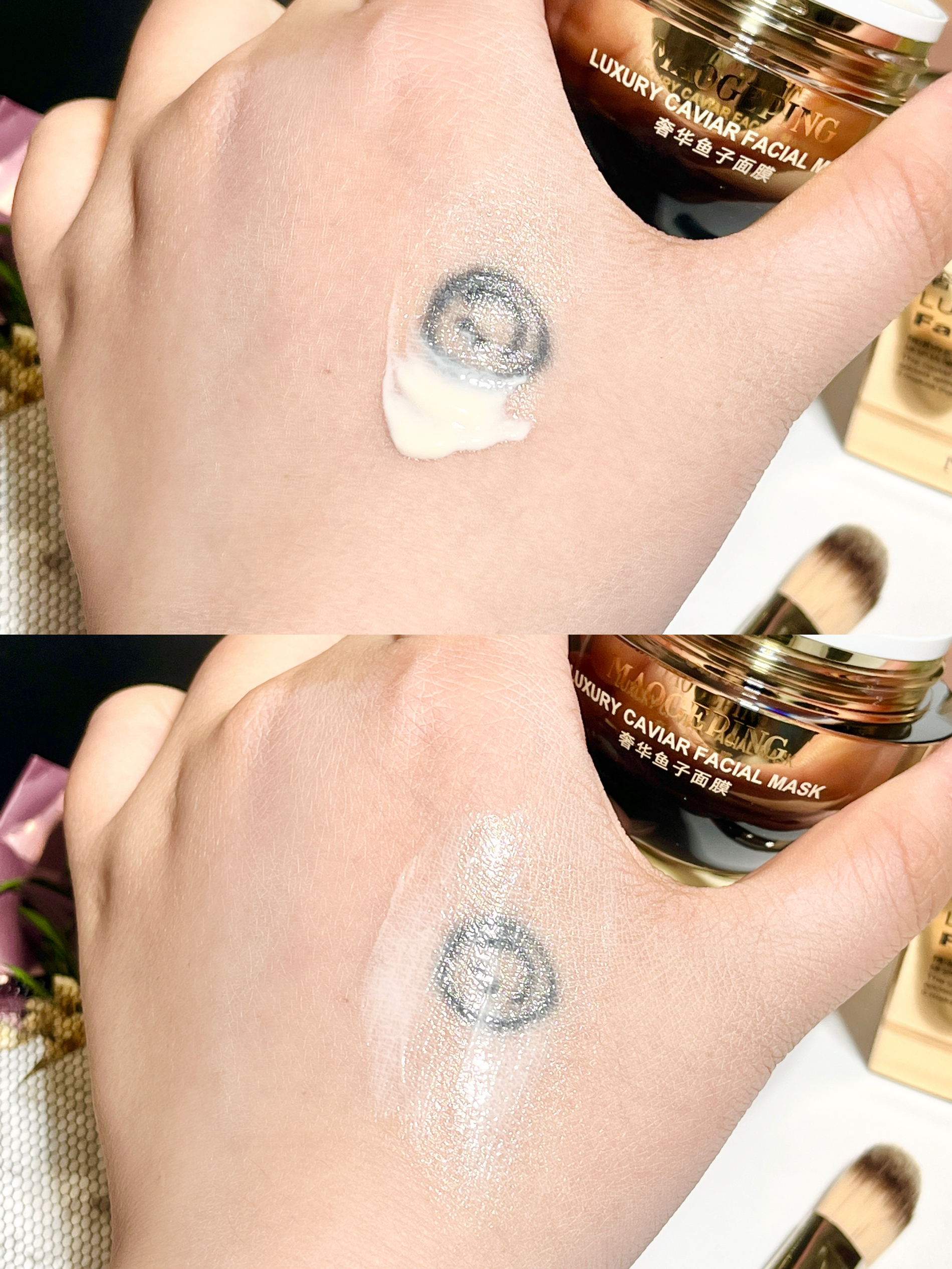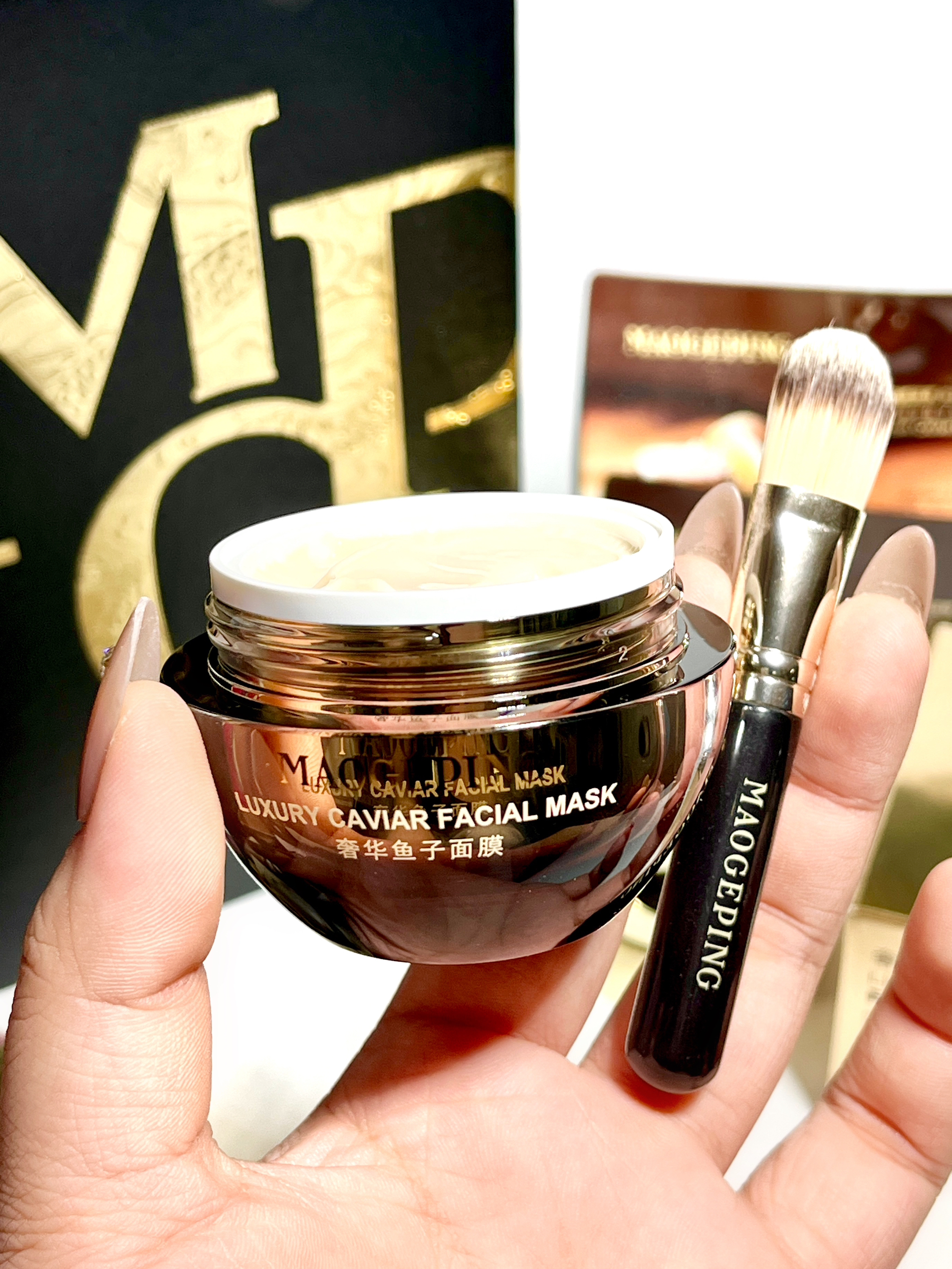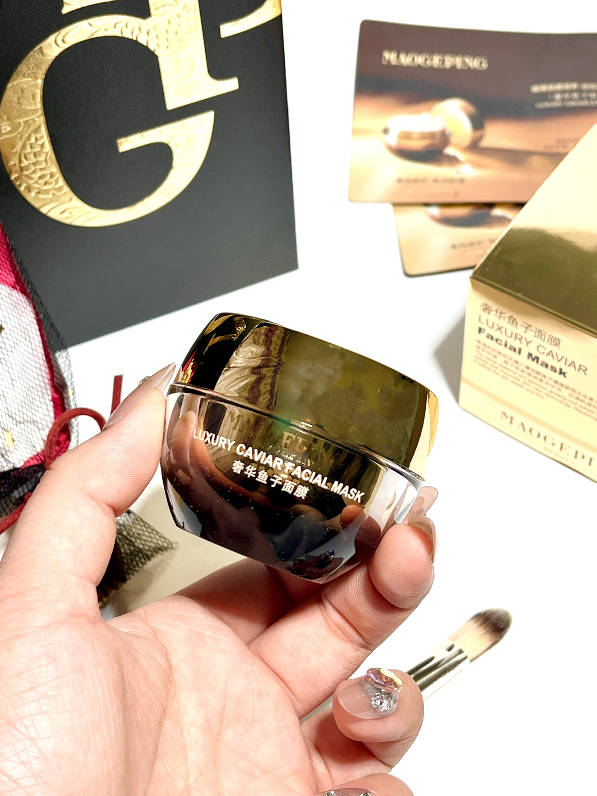 马上母亲节挑了好久选了它 就是毛戈平的鱼子酱面膜~ 黑金色包装设计看着就贵气! 礼盒蛮精致的 送礼仪式感满满 我是觉得妈妈脸上变黄长细纹了 所以做攻略选了介个涂抹面膜 它里面可都是养肤类的植萃提取~ 不仅能够淡纹抗氧 保湿修护也不错 是那种乳霜质地 用着肤感很好 还自带面膜刷 上脸丝滑好推开涂匀 大概敷15分钟变透明就ok啦 我试了下感觉洗完脸蛋水嫩嫩的 妈妈收到这份礼物尊嘟敲感动呢!