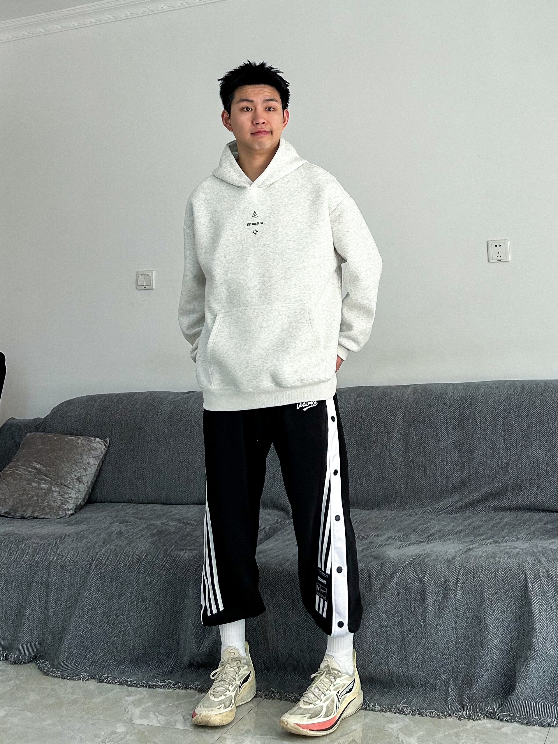 身高|体重:178|69kg 🧍♂️ 穿搭风格:运动美式 👔 上衣:准者 👖 下装:维动 👟 鞋子:音速12