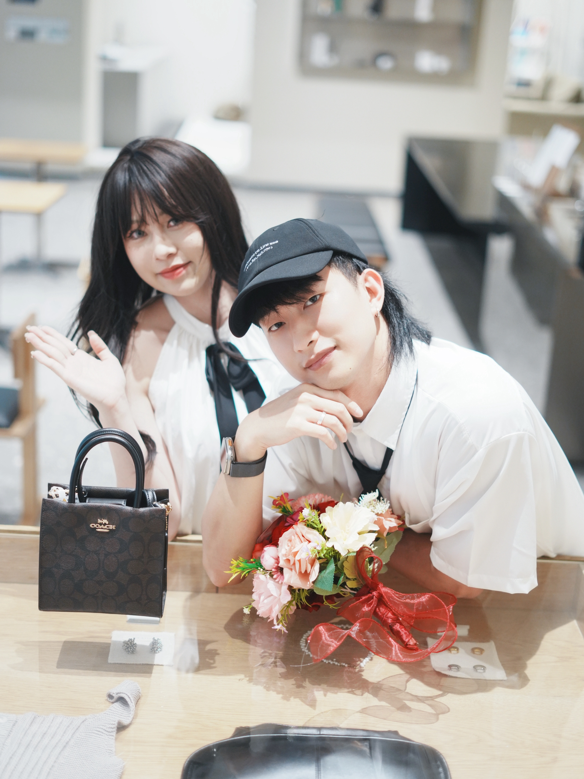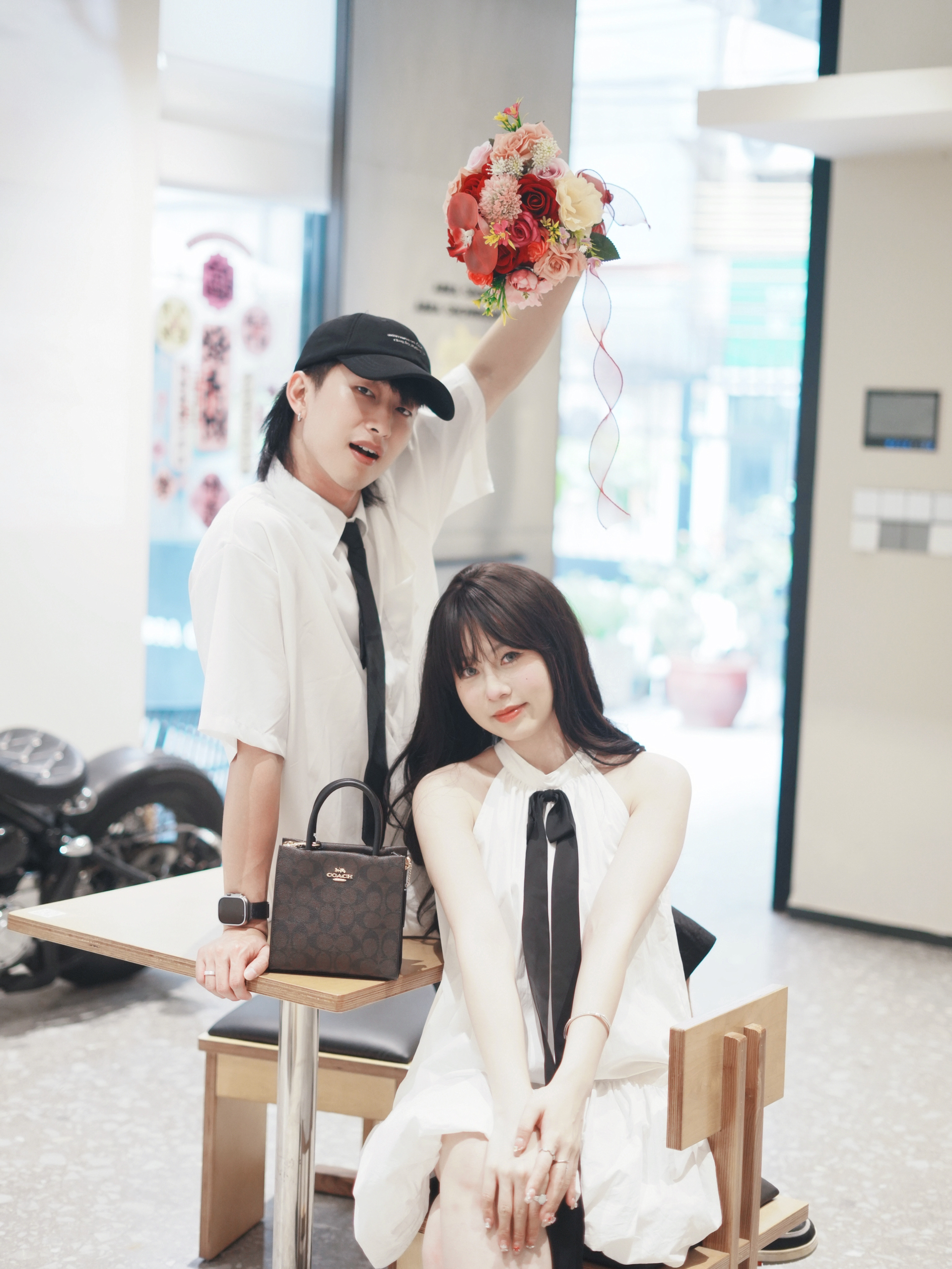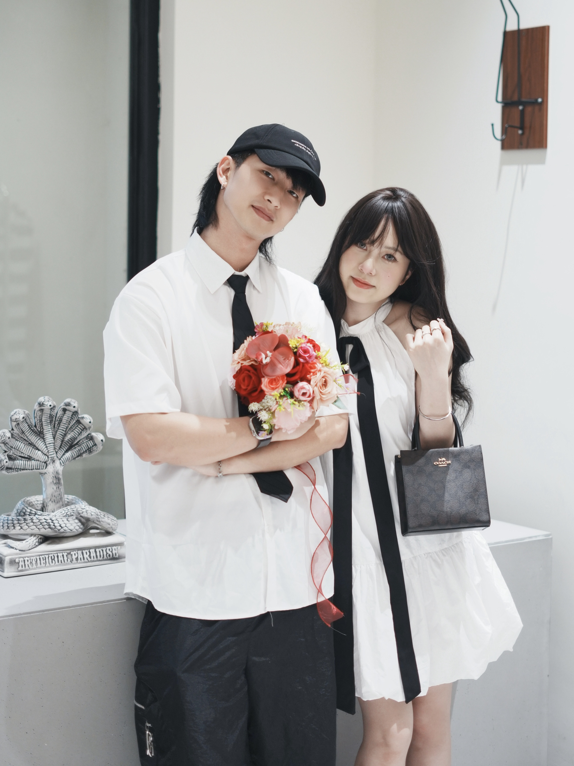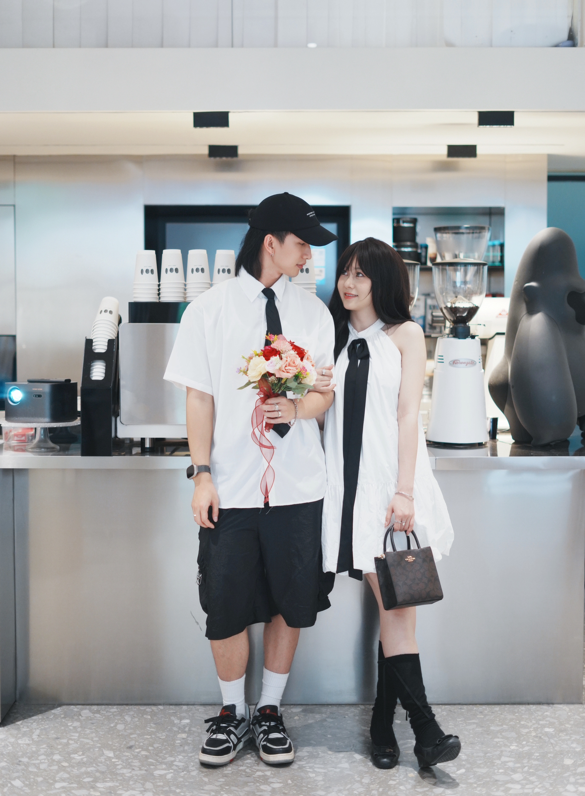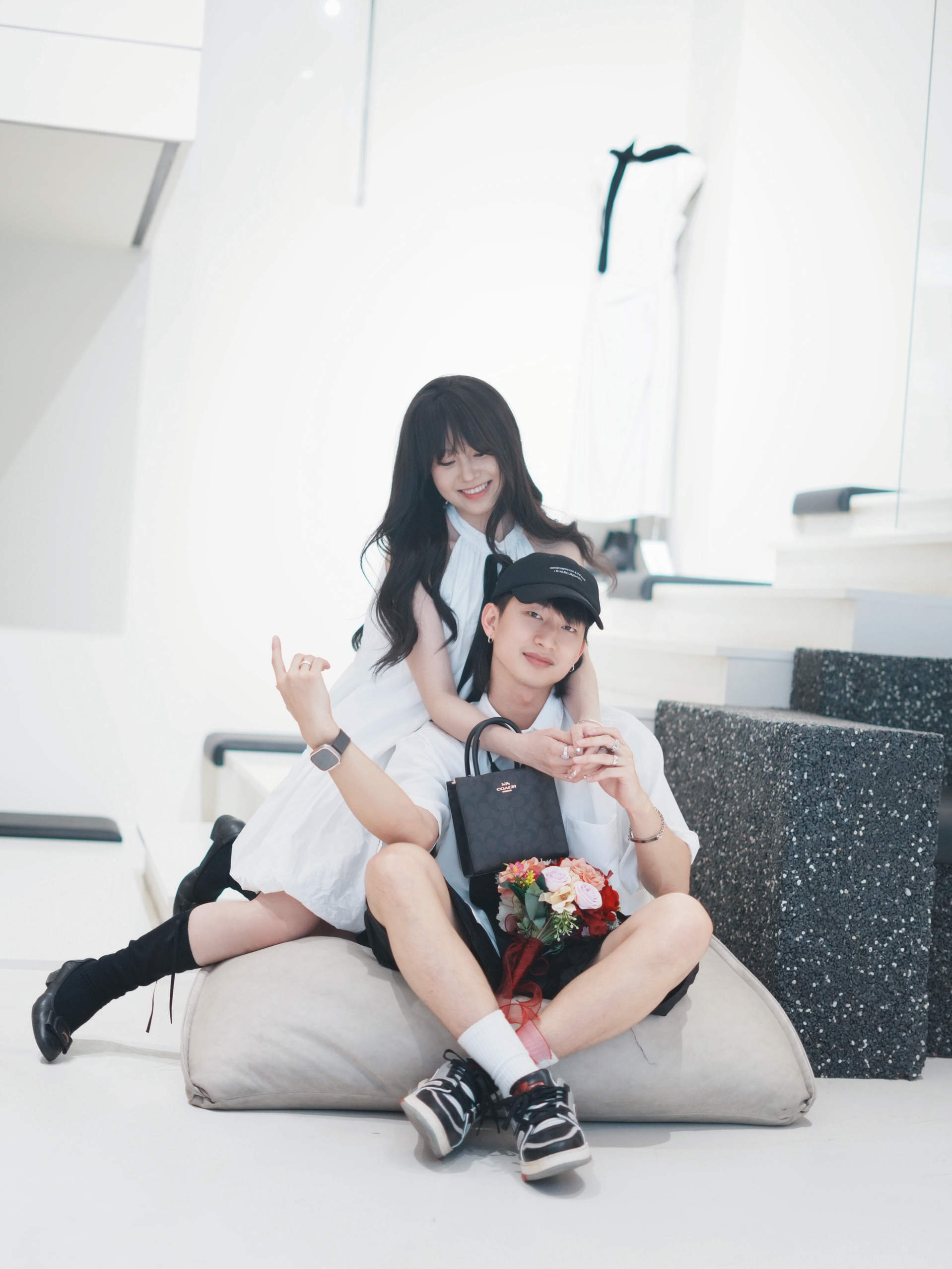 黑白穿搭不会出错~ 出来约会当然要拍照记录啦! 搭配对象送的包包,心情更加好了~