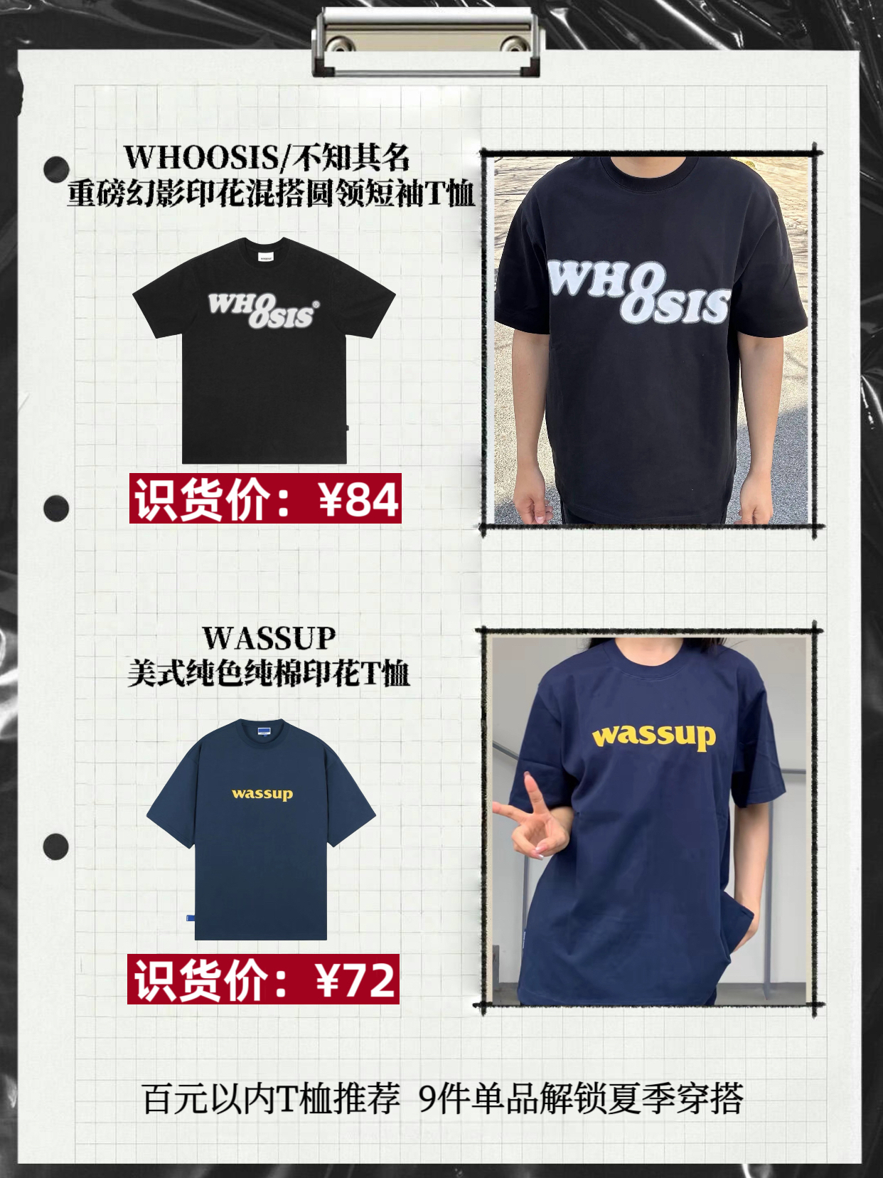 宝子们,夏日炎炎,又到了疯狂囤T恤的季节啦!今天吐血整理了9款百元以内的宝藏T恤,时尚感拉满,性价比超高,学生党和打工人闭眼入~ WHOOSIS重磅幻影印花混搭圆领短袖T恤 黑白经典配色,幻影印花设计超有未来感,上身秒变街头酷盖,随便搭配牛仔裤或工装裤,出街回头率爆表!💰84 WASSUP美式纯色纯棉印花T恤 美式简约风,纯色底搭配亮眼的“wassup”印花,干净又清爽。纯棉材质,亲肤透气...