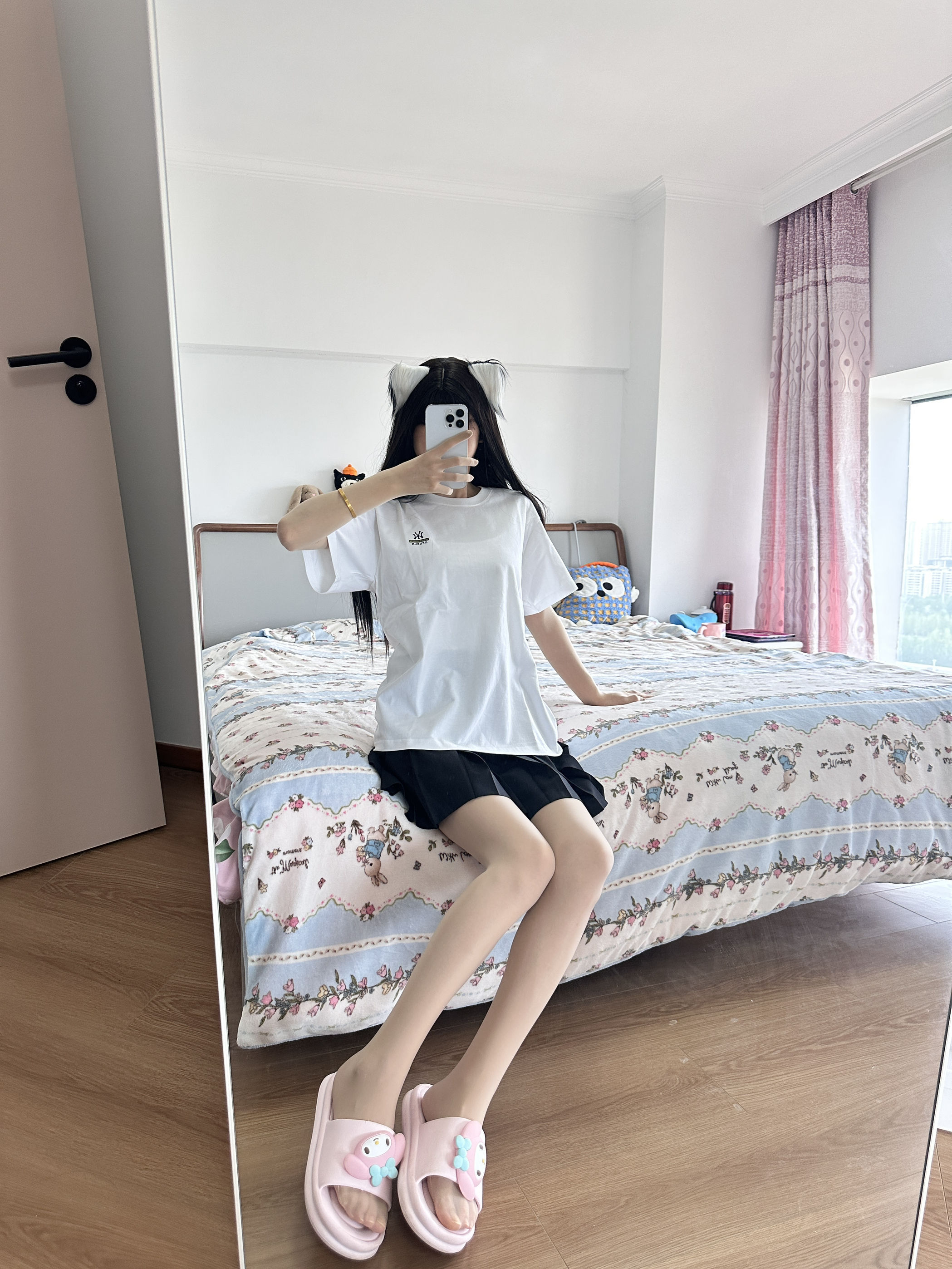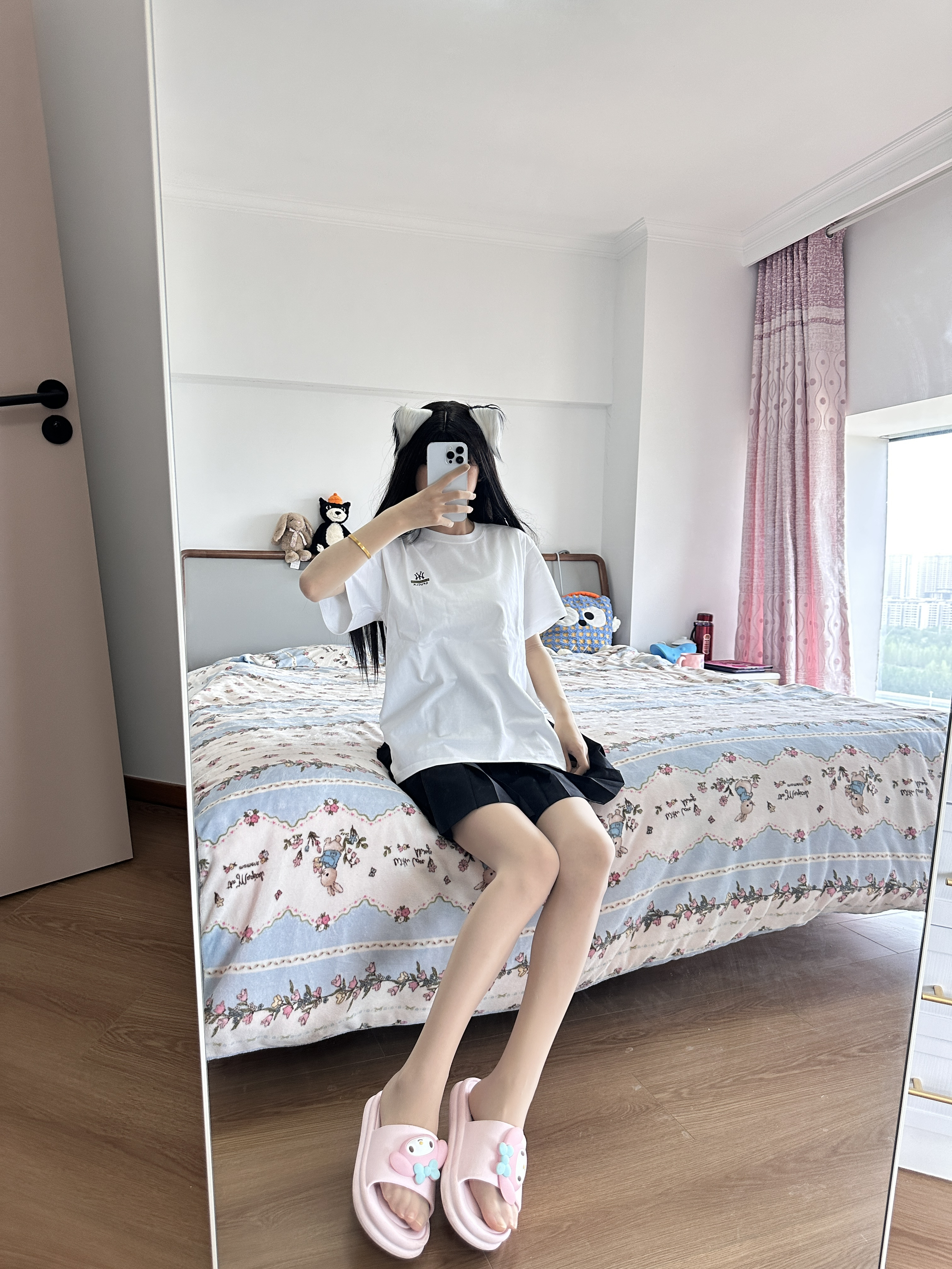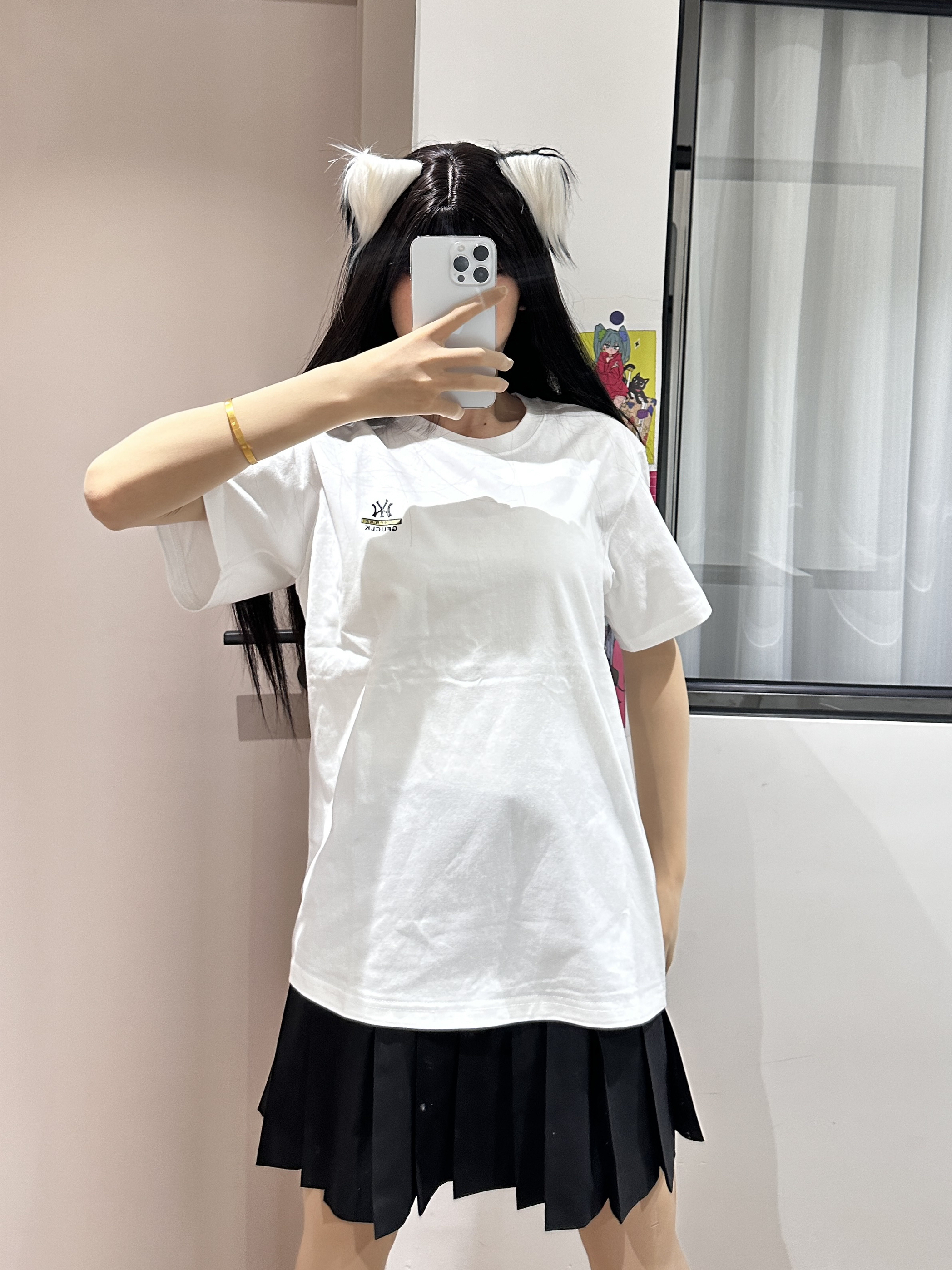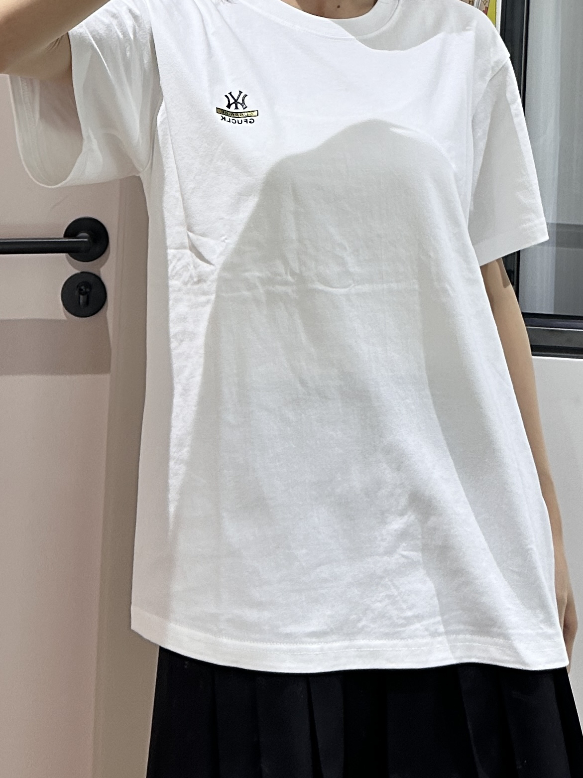 新T恤到了~ 上身还蛮舒服的 纯白色显白又显瘦 没有什么束缚感 面料质感也不错 搭配一条百褶裙就可以出门啦!