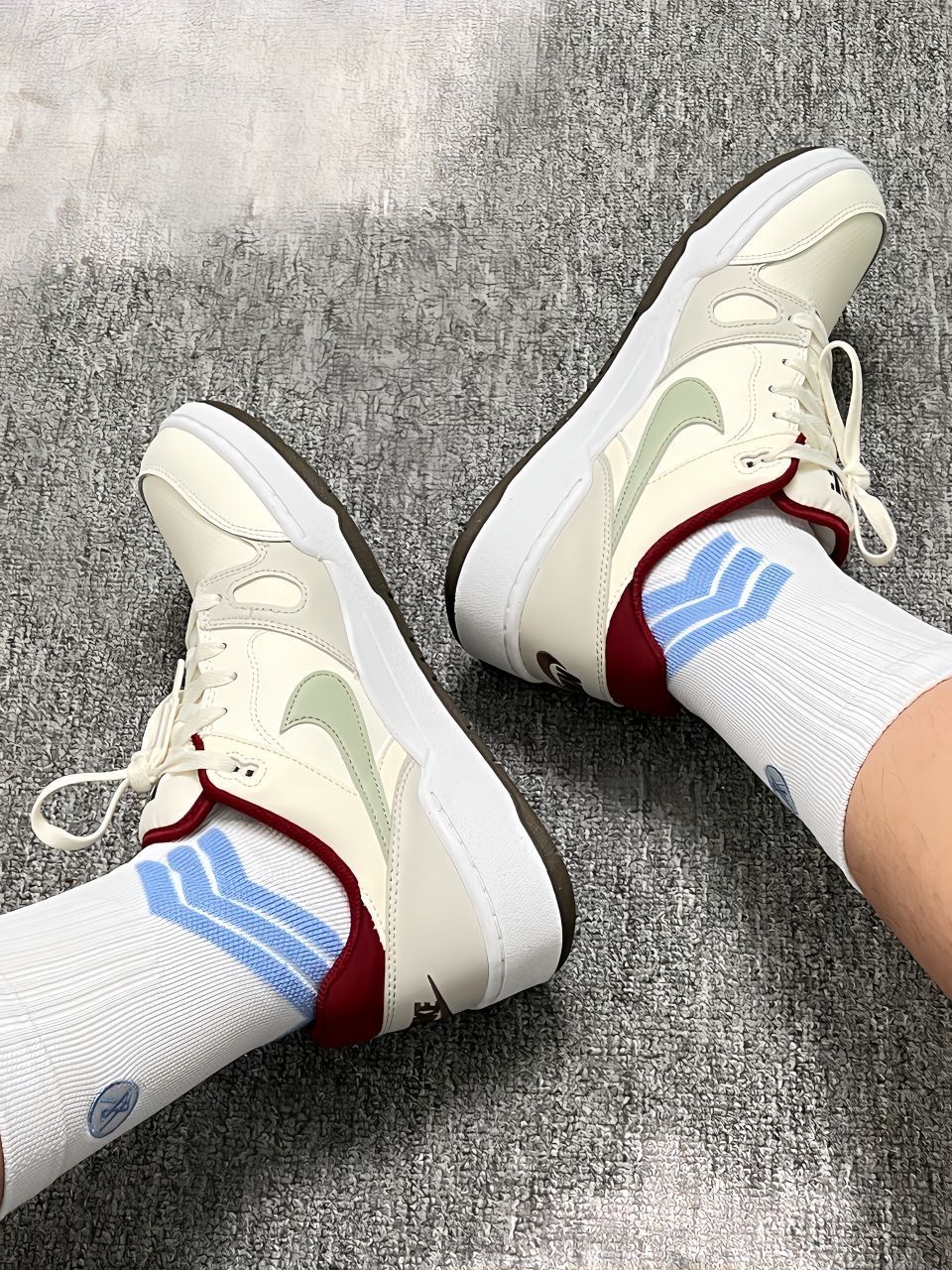 😍耐克宝藏板鞋!一整个爱住了! 🌟这配色简直是温柔本柔!米白鞋面搭配清新灰绿勾子,还有超酷酒红色后跟,高级又不失活泼,时尚感拉满 🍀随便配个运动裤、短裤,校园里回头率爆表! 🌸鞋子做工超精致,材质贼抗造。鞋型超棒,不压脚背,宽脚、瘦脚都能hold住。鞋垫软弹,舒适度绝了 ✨日常上课、运动,还是周末逛街,它都能完美适配。