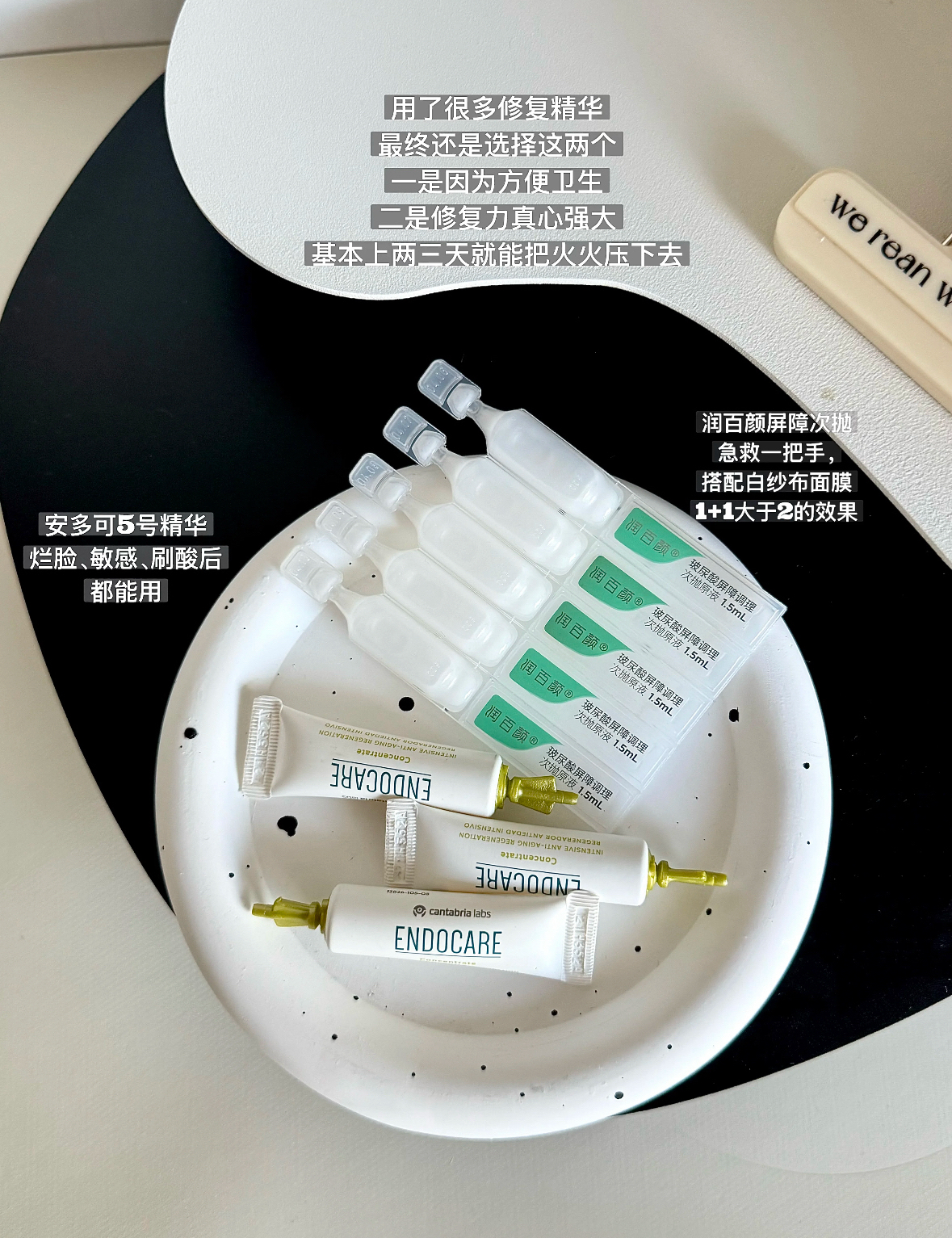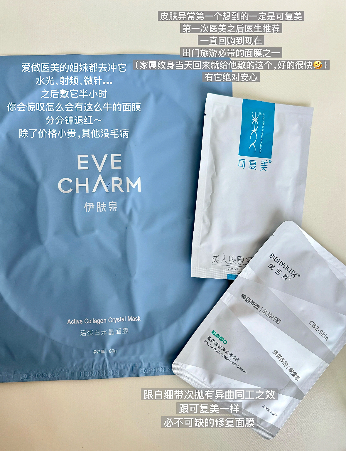 水类 ①伊肤泉喷雾:敏感期用的蕞多的就是喷雾,随时随地大小喷,主要作用就是保湿,缓解皮肤疼痛感,方便快捷。 ② 可复美柔肤水:我更喜欢拿它来湿敷,极度干燥敏感的地方湿敷的作用更大,我一般是晚间护肤第①步湿敷,可以帮助后续护肤品吸收。 • 精华类(次抛) ①润百颜白绷带:急救一把手,能快速的压住,修复屏障,搭配白绷带面膜1+1大于2的效果。 ②安多可5号精华:超百搭修复精华,烂脸、医美之后涂一层,很...