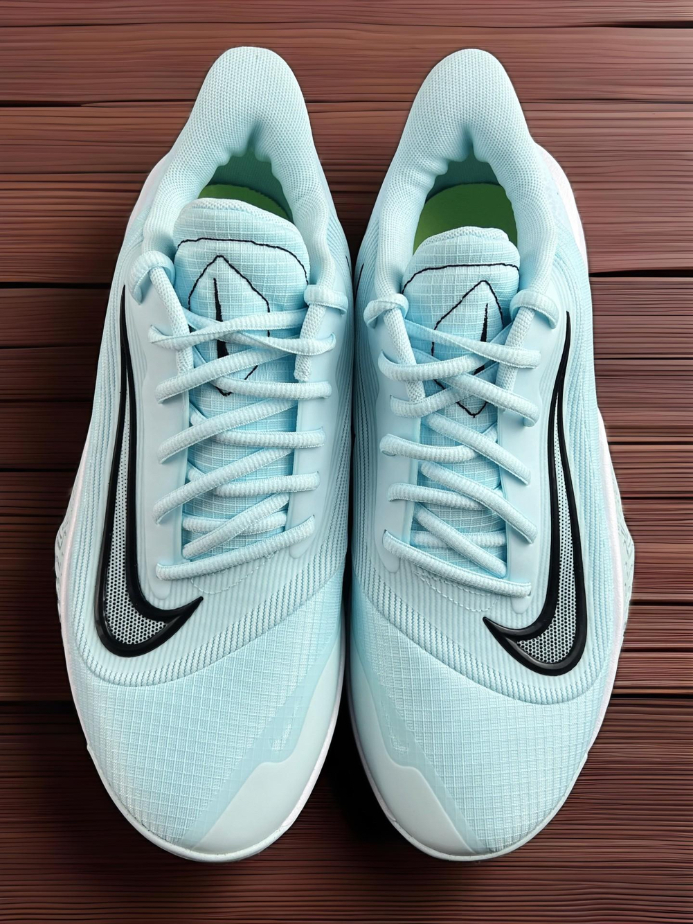宝子们,今天必须要和你们分享我新入手的心头好——这双耐克篮球鞋! 淡蓝色的鞋面,搭配经典黑色勾形标志,简约又不失时尚感,简直长在我的审美点上!鞋身的透气孔设计,既增加了鞋子的美观度,又能让双脚在运动时保持清爽,细节满满。