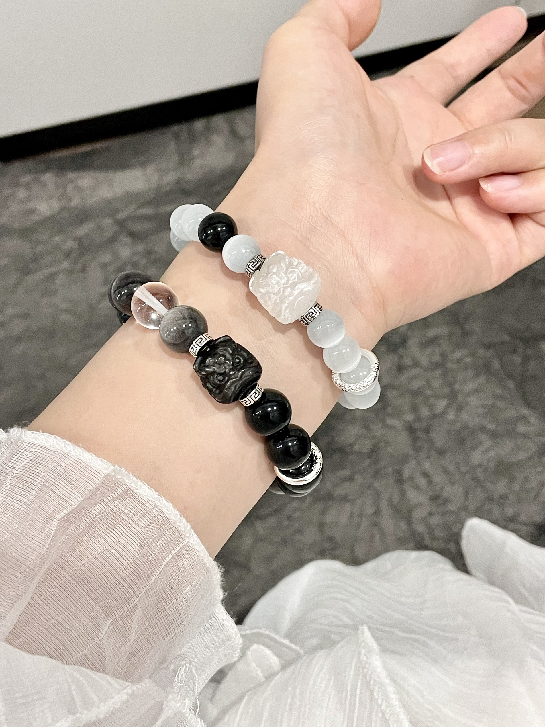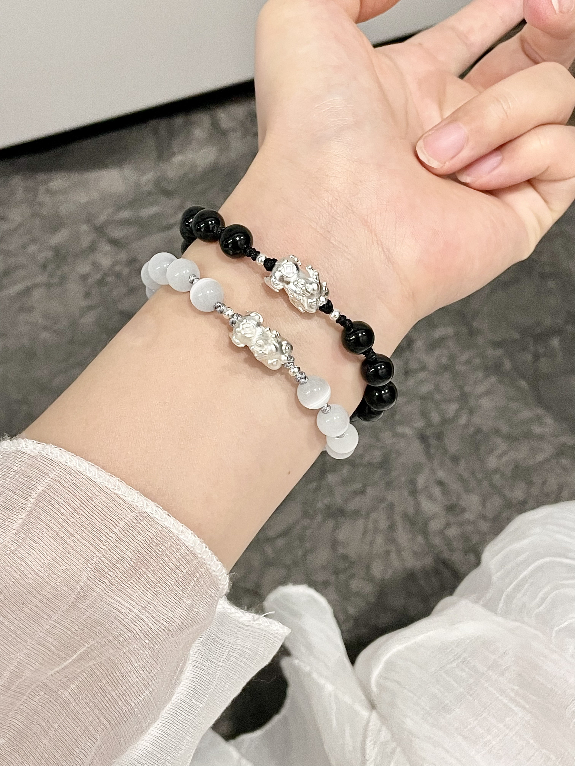 恋爱总是忍不住想和对象戴情侣款哎 最近又给我俩挑了几对情侣手链 都是新中式的风格还蛮有意义哒 我觉得戴在手上也挺舒服的 日常约会和上课戴着都适合呐 介才是女孩子要的安全感耶🤏🏻