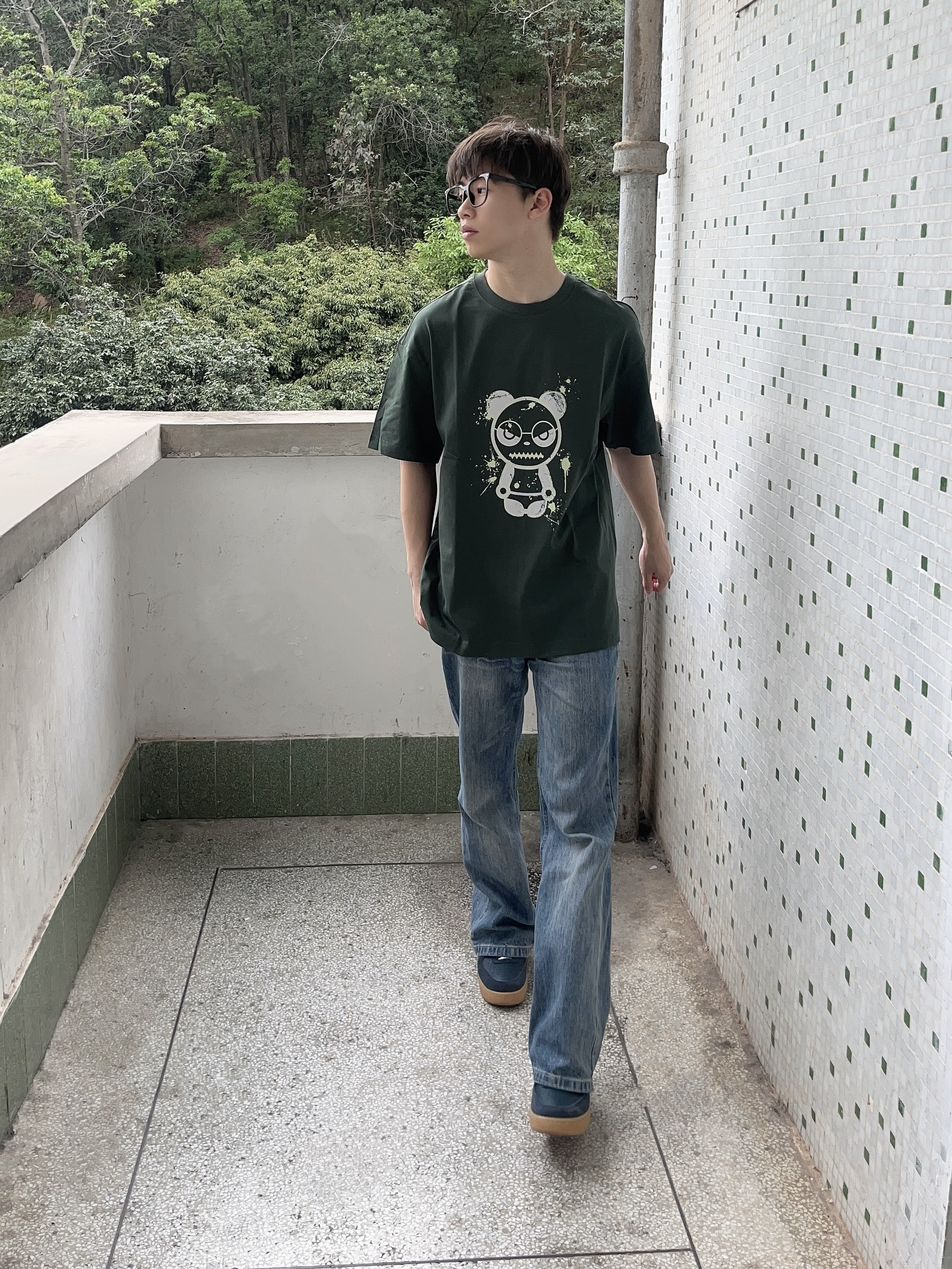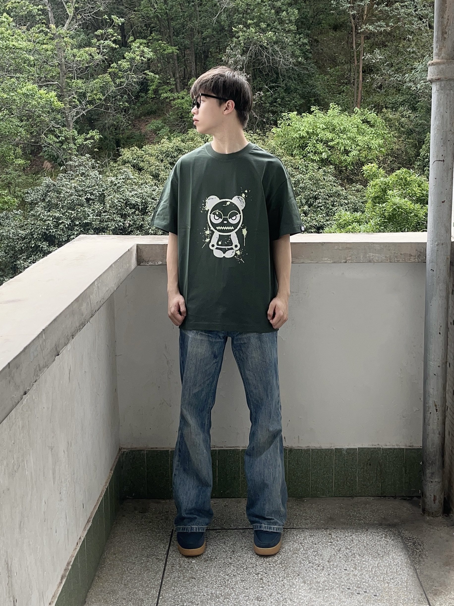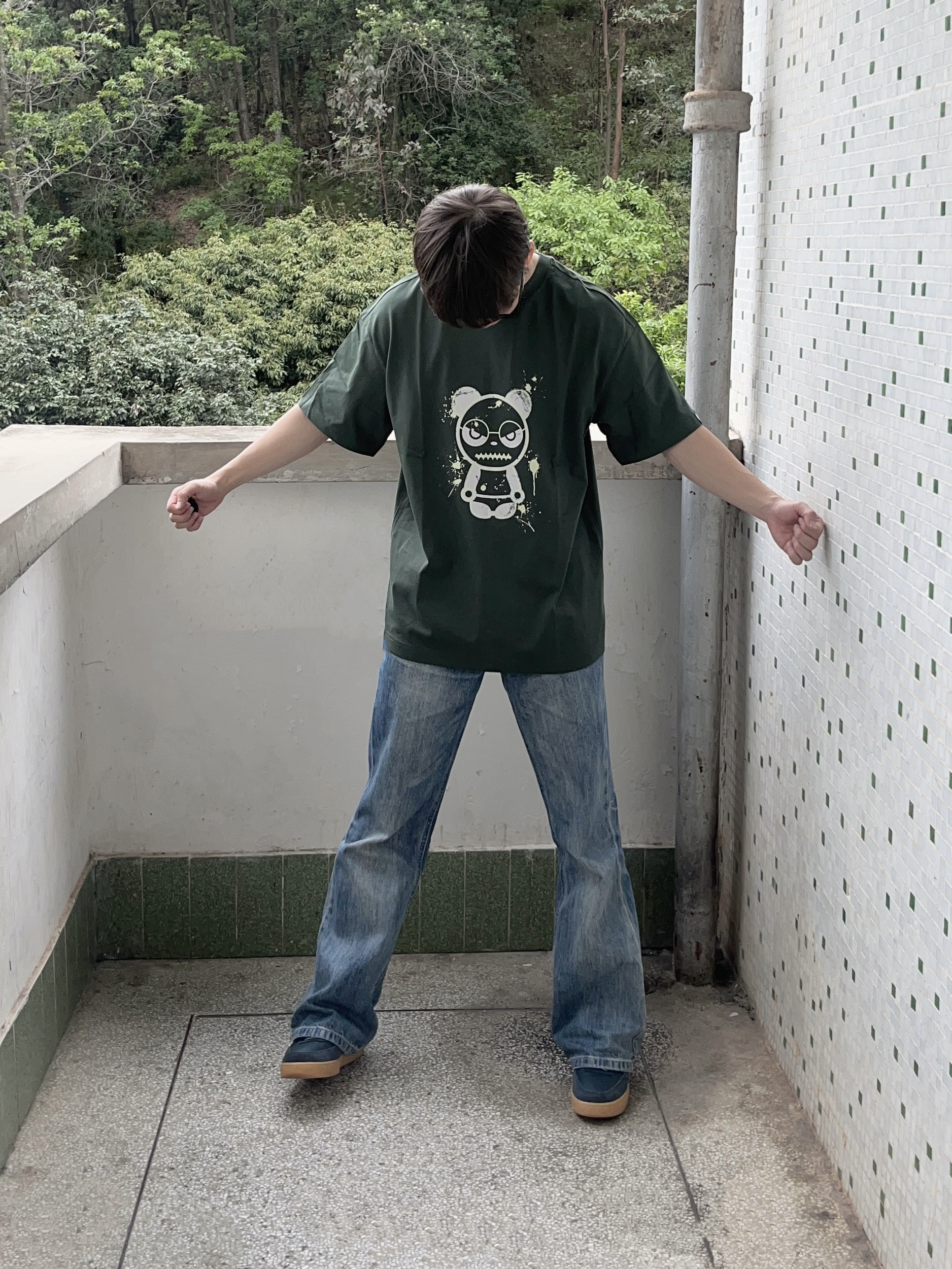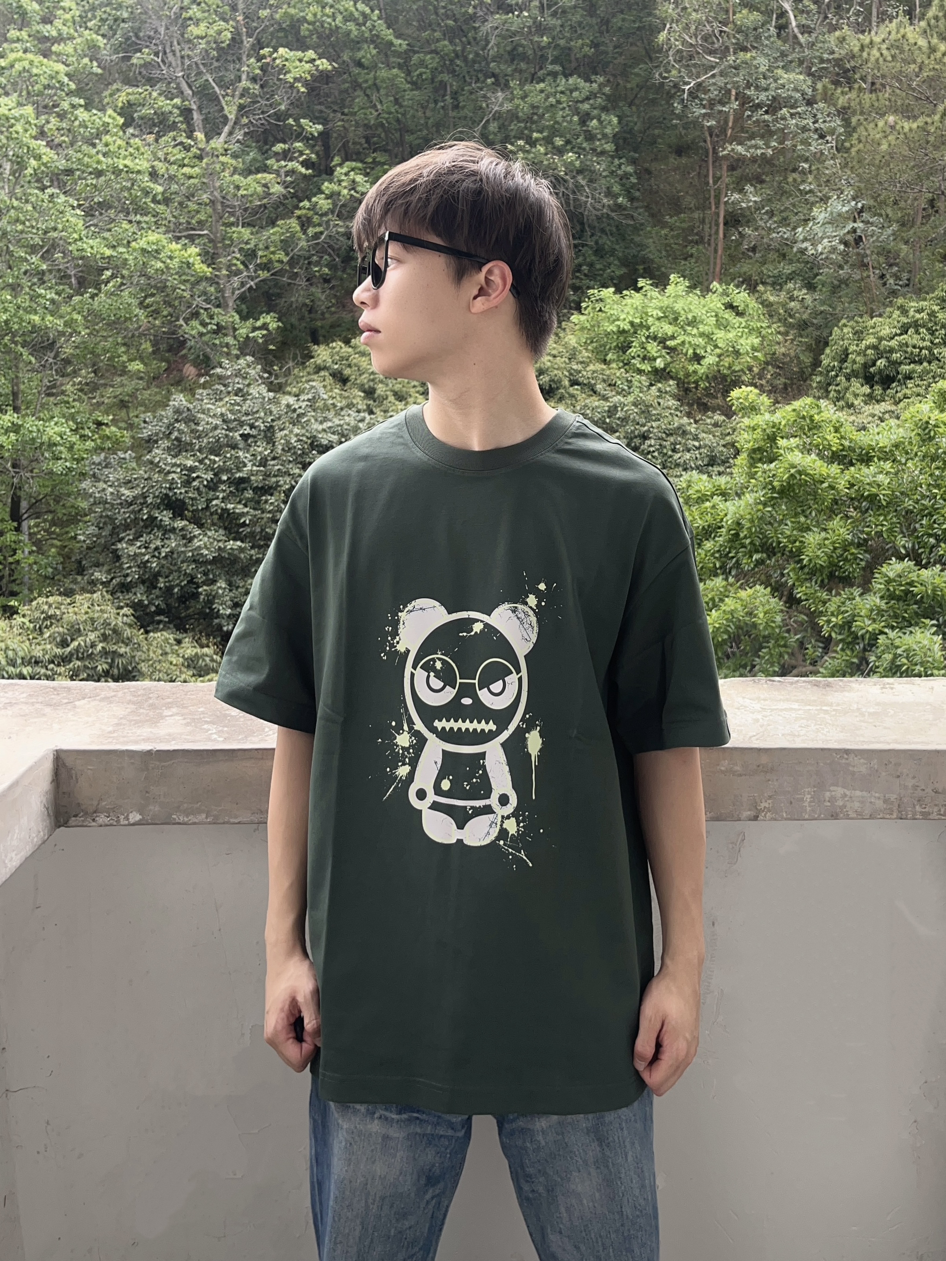 今日份穿搭分享look👀 衣服是 HIPANDA 家的 墨绿色熊猫印花短袖👔 颜值潮流卡通 面料舒适透气 上身后质感满满 版型也很正🔥 再搭配一条水洗蓝牛仔裤 一套搭配下来 春夏出行百搭又好看