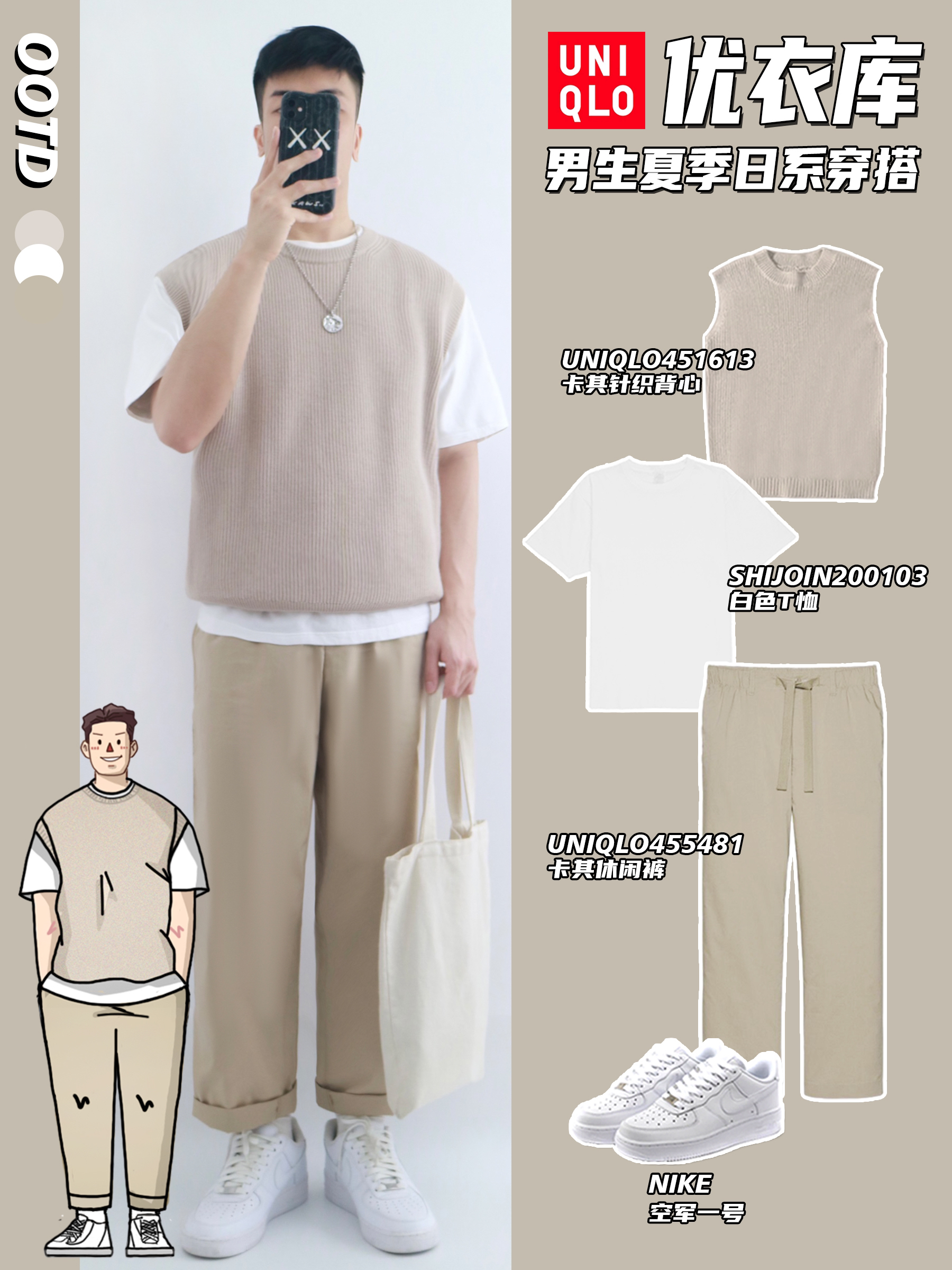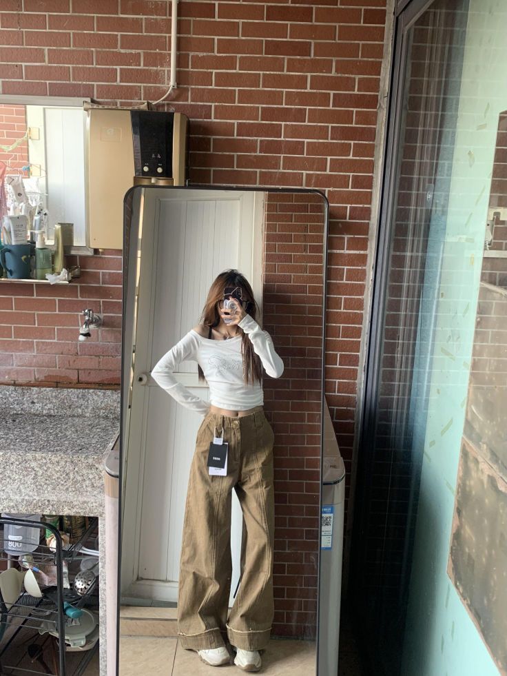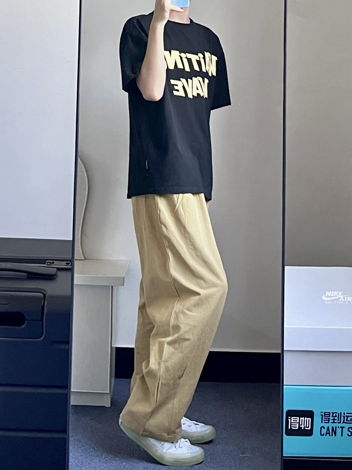 今天穿这条卡其色的裤子👖 搭配的是匡威果冻底白色高帮帆布鞋🙋 夏天这一身宽松舒适又好看🌟