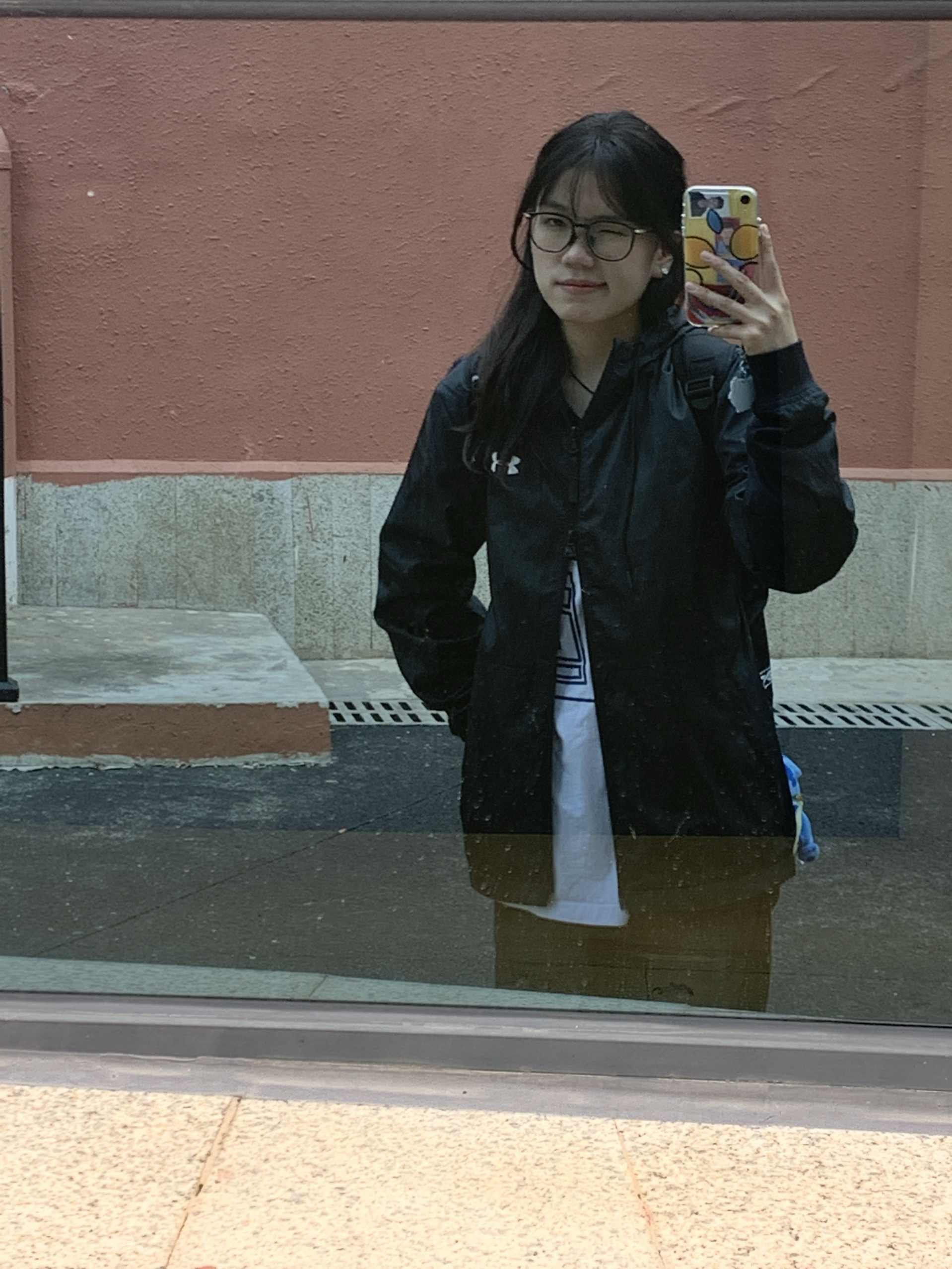 黑色安德玛冲锋衣运动外套搭简约内搭,随性又舒适,日常出街的自在look~