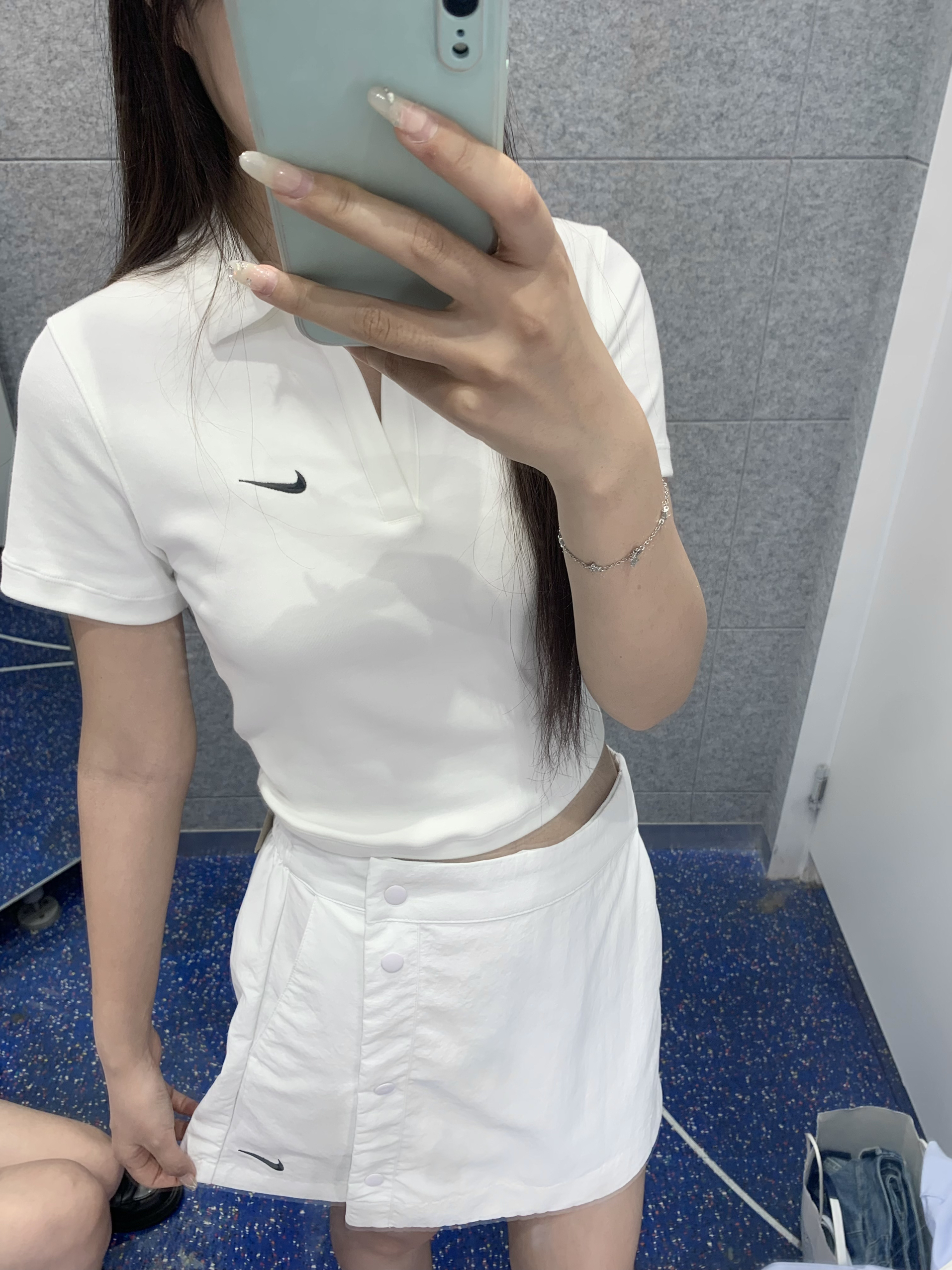 本篇笔记关联了【郑钦文同款】Nike Sportswear 翻领小勾露腰透气棉质刺绣露脐网球短袖T恤 女装 DV7885 米白、【Linda李静同款】Nike/耐克 刺绣小标五分梭织耐穿修身柔软松紧中腰防走光运动短裤 女装 HM6980 白等商品,为用户提供真实的使用体验和购买参考。
