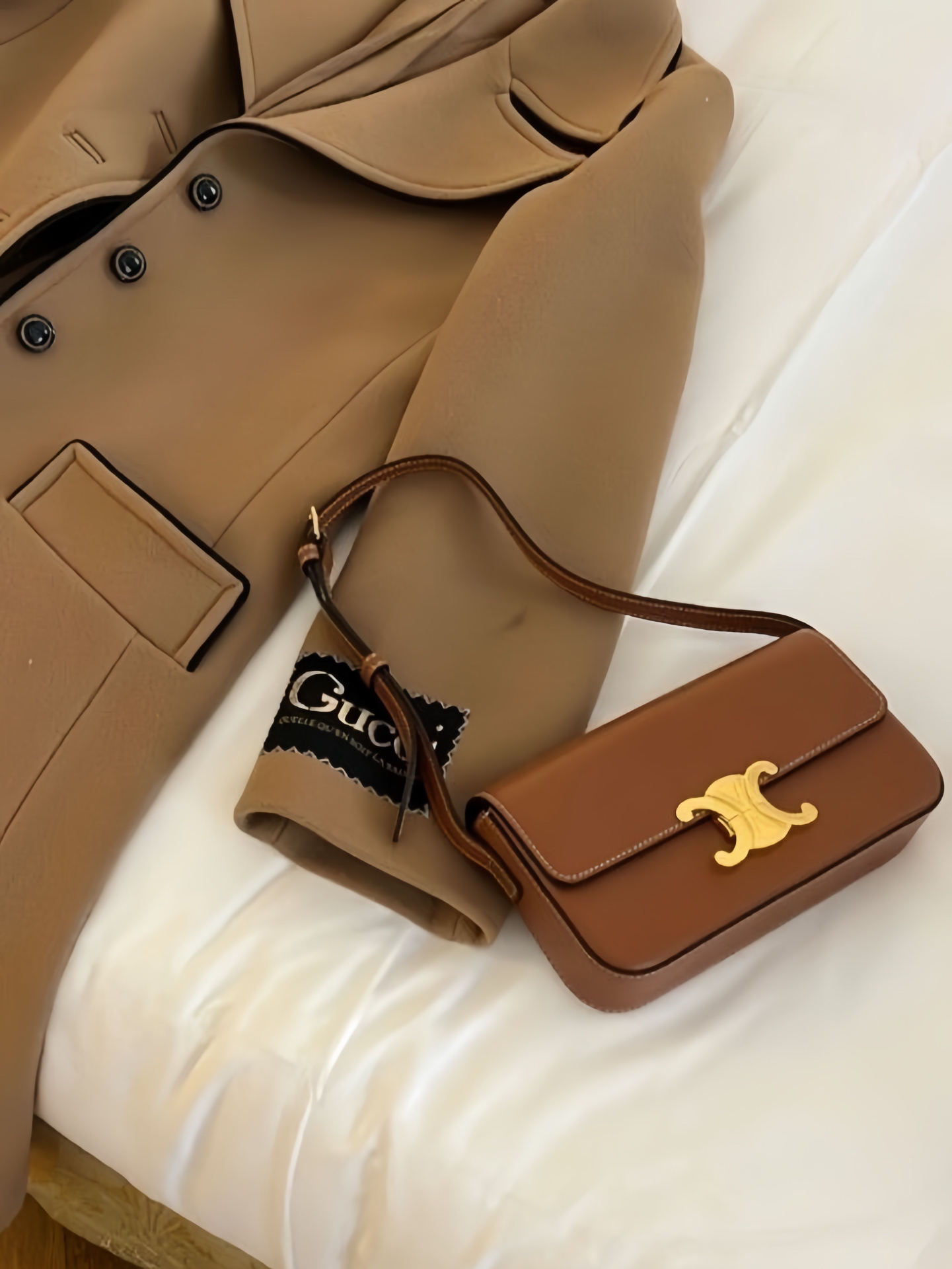 本篇笔记关联了【杨幂同款】CELINE Triomphe 凯旋门金色锁扣亮泽牛皮革腋下包肩带可调节手提单肩包 黄褐色等商品,为用户提供真实的使用体验和购买参考。