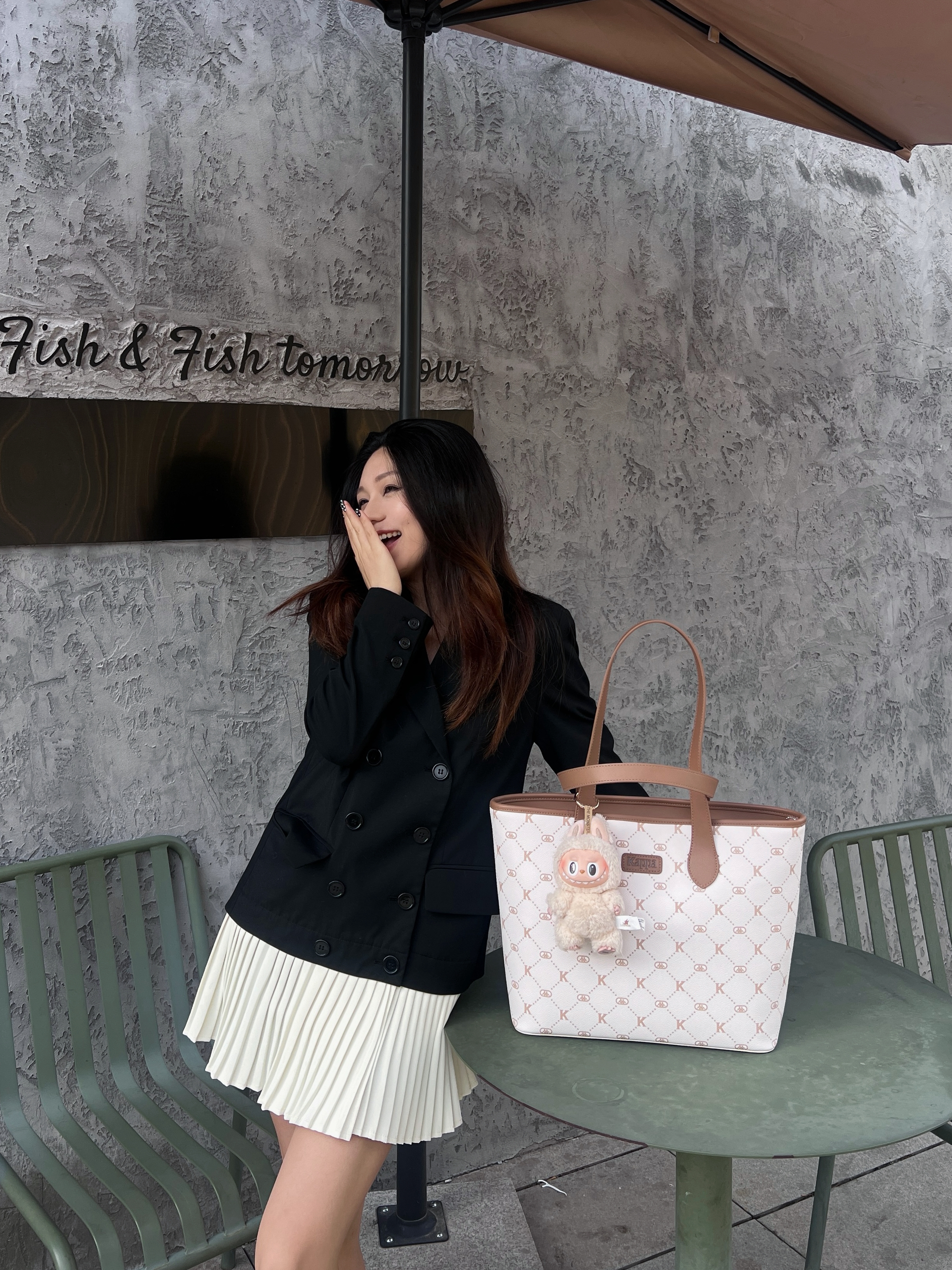 我的地盘听我的,高校学姐来报道 学院风look出街 赶课必备的大包💼要可以装下电脑和各种书📕 当然也要好看,和labubu同配色✌🏼