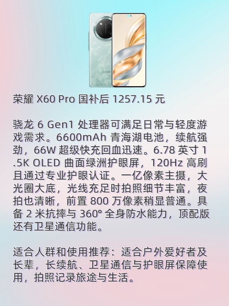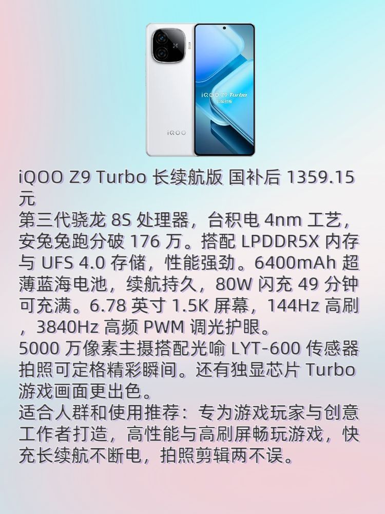 本篇笔记关联了iQOO Z9 Turbo 5G 手机 长续航版 大电池 第三代骁龙8s 独显芯片 防频闪 护眼 全网通 星芒白、Redmi/红米 Note 14 Pro 5G 手机 国家补贴 更防水 更长续航 大电量 拍照 标配版 全网通 子夜黑、HONOR/荣耀 X60 Pro 5G 手机 十面抗摔 防水 全网通 拍照 青海湖电池 双向北斗卫星短信 长续航 典雅黑等商品,为用户提供真实的使用体验和购买参考。