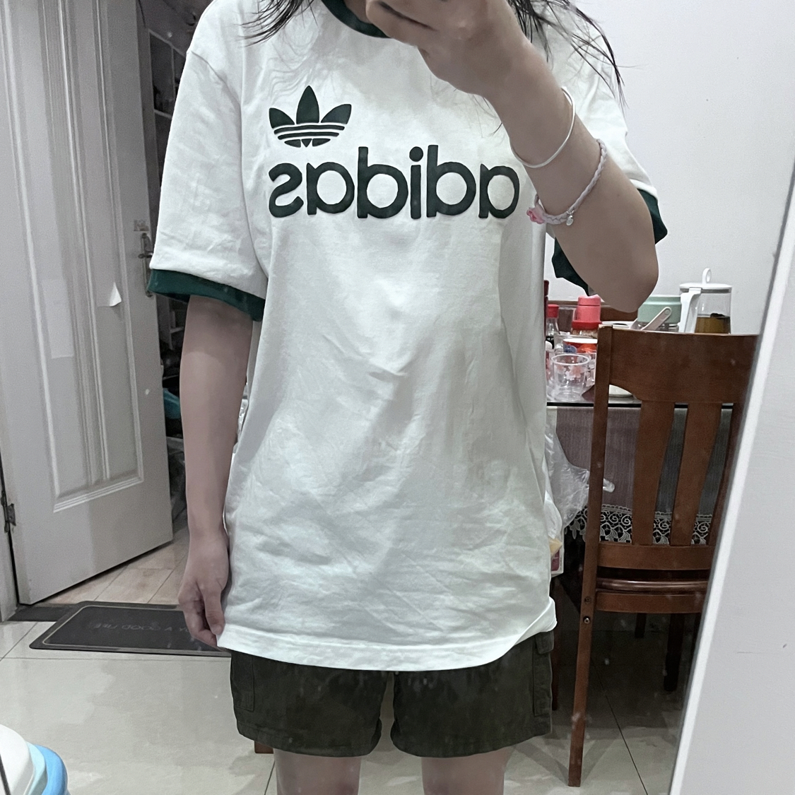 今年新出的白t 白色底色加上绿色边缘 同款还有一个黑白 选择这件是感觉这个更适合女孩子👧