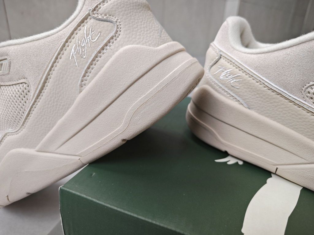 今日分享👟球鞋名称: Air Jordan Flight Court 米白 🔍分享理由: 当目光初次触及它,那柔和的米色调鞋面,恰似被岁月打磨过的温柔诗篇。细腻的麂皮与精巧的网眼材质相互交织,不仅勾勒出流畅而复古的轮廓,更带来了无与伦比的透气体验,每一步都仿若行走在轻柔的微风中。鞋跟处,标志性的飞人刺绣Logo熠熠生辉,那是乔丹传奇精神的凝练,更是身份与品味的象征。 🤔整体感受: Air Jor...