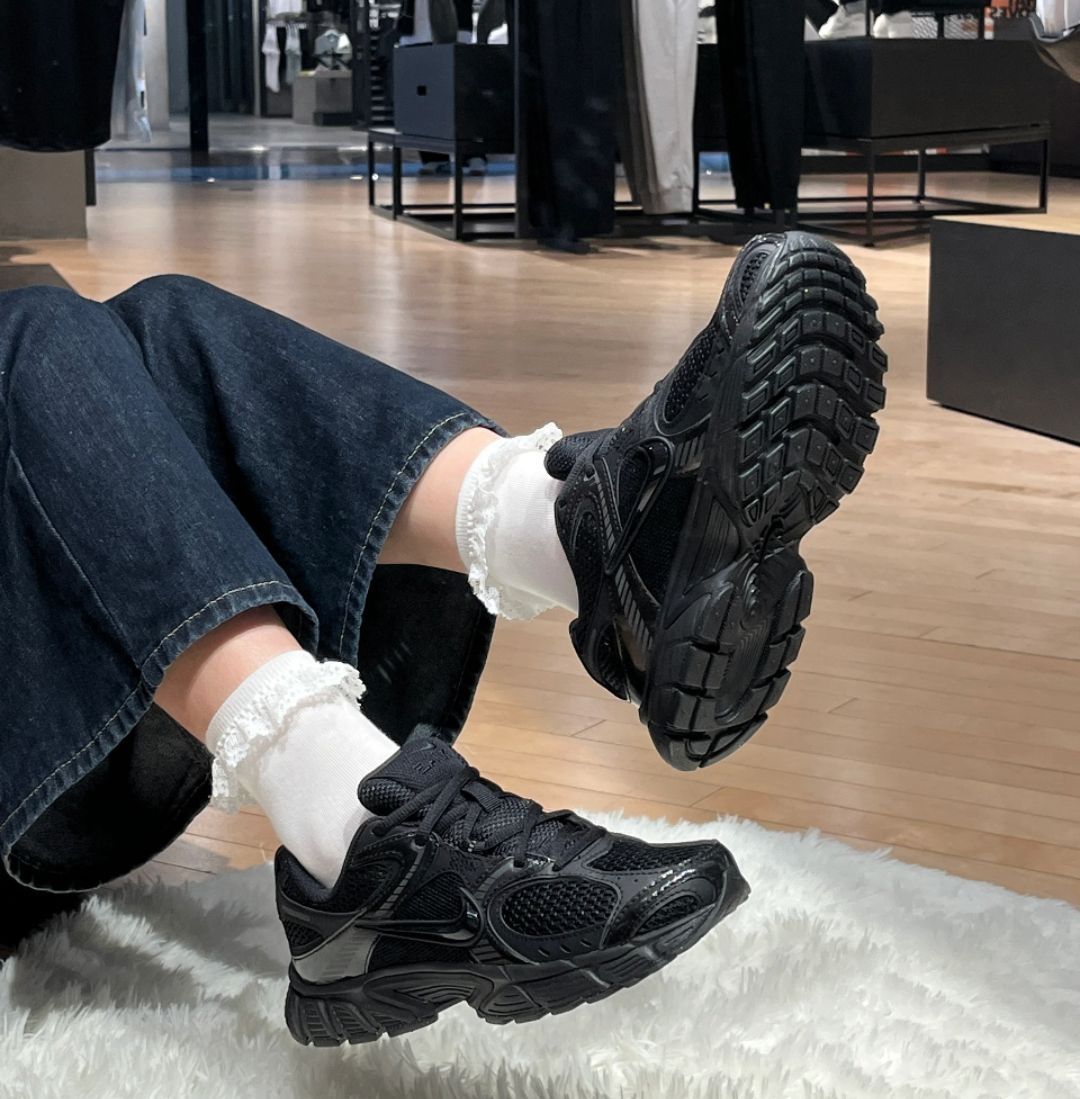 不得不夸nike你啊 复古老爹鞋V5 RNR上脚就是一个🆒 🖤黑武士配色真的不要太帅啦! 简直就是为酷妹而设计的吧