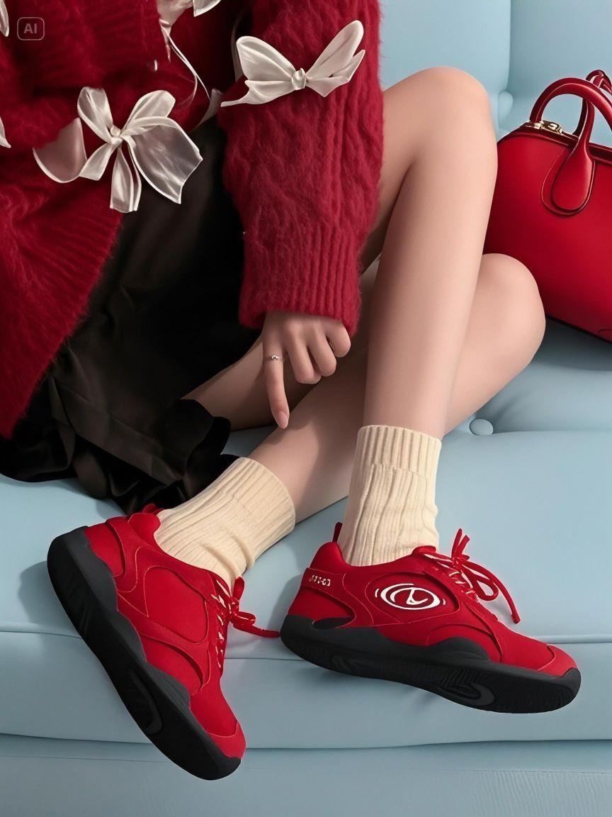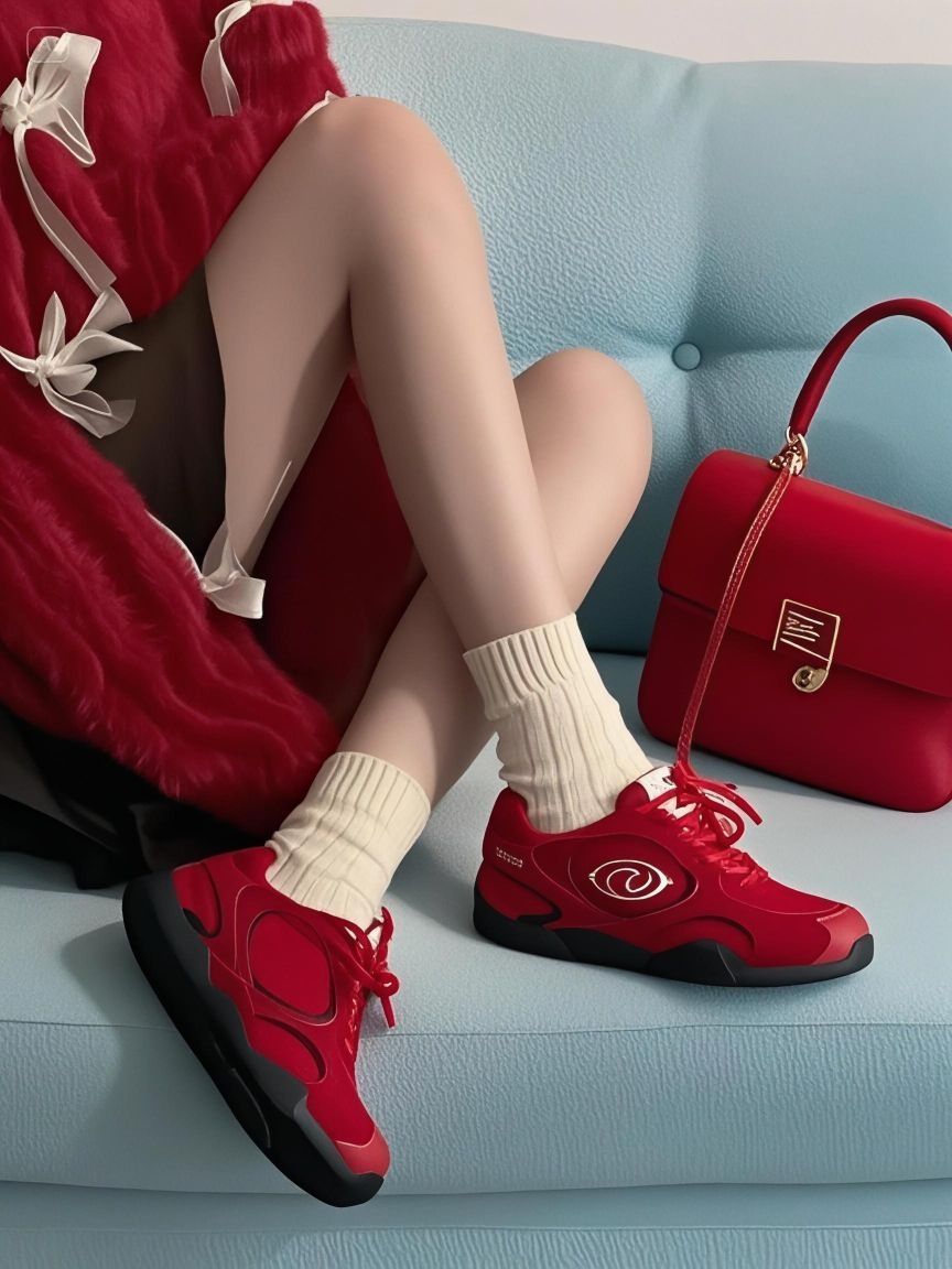 新的一年当然要从穿红红火火的鞋子开始啦~ 这双红色德训鞋上脚真的狠吸睛,高级又显白 脚感软弹,逛一天也不累jio! 自己diy加条白色鞋带也很好看~