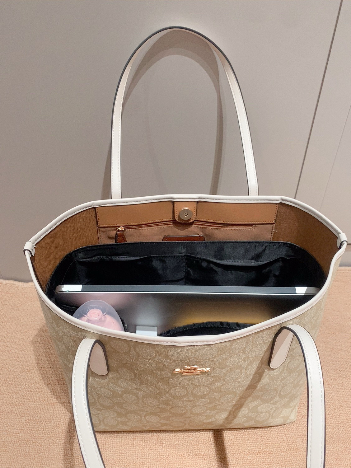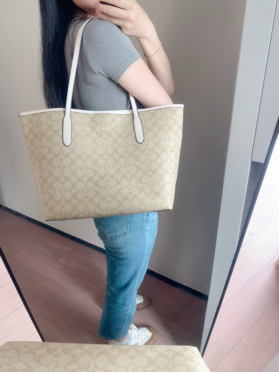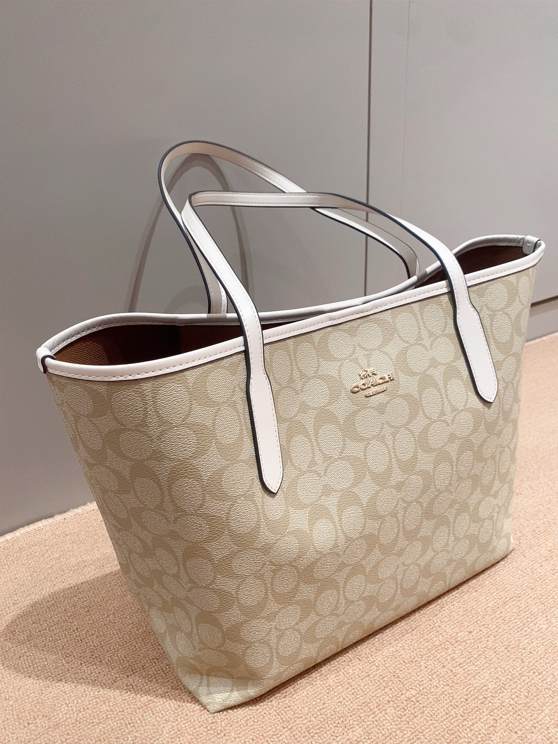 本篇笔记关联了【李佳琦推荐】Coach Zip Top 30 大号 大容量通勤铭牌满印老花PVC配皮拉链开合托特单肩手提包 浅卡其粉笔白 等商品,为用户提供真实的使用体验和购买参考。