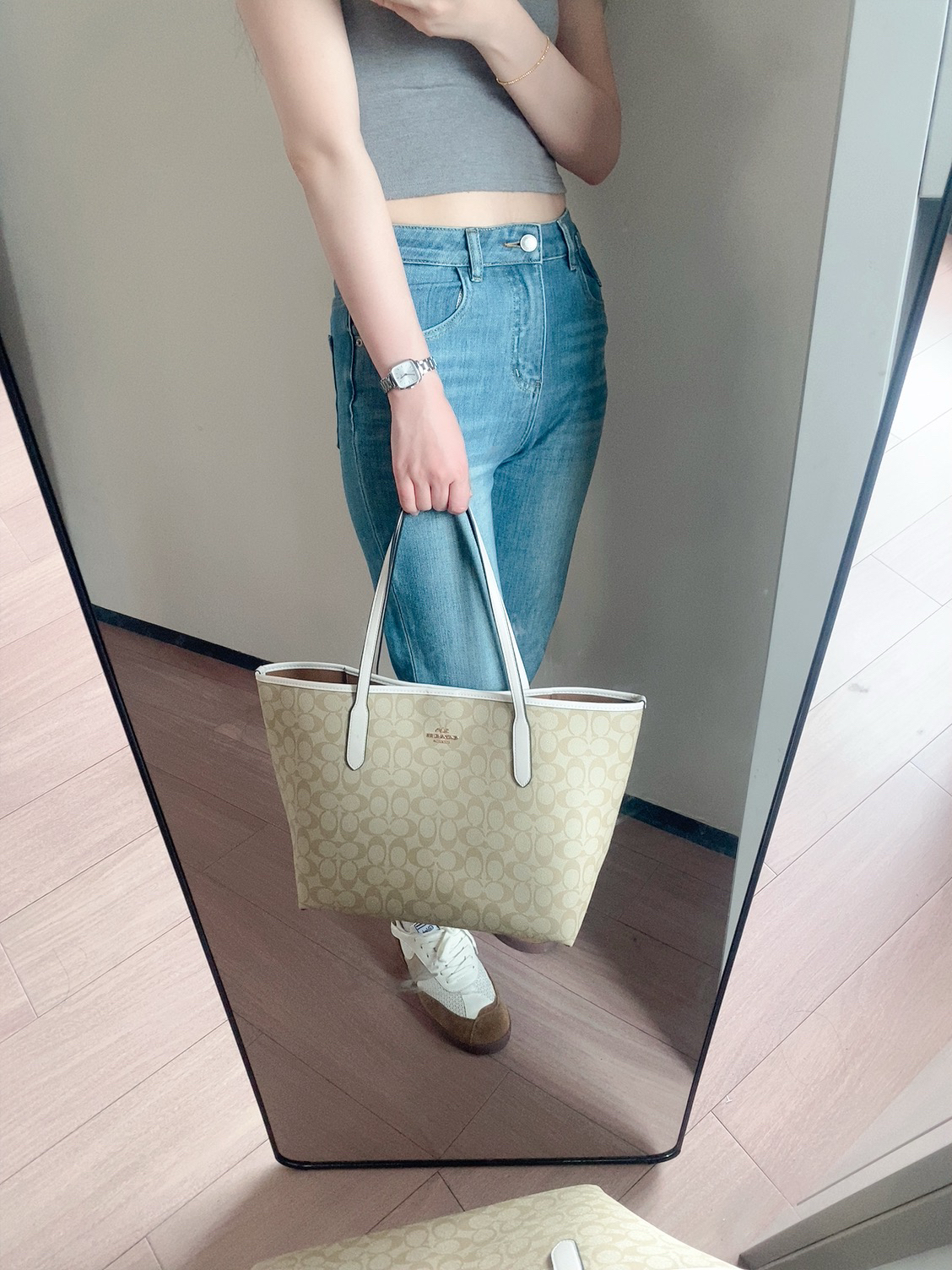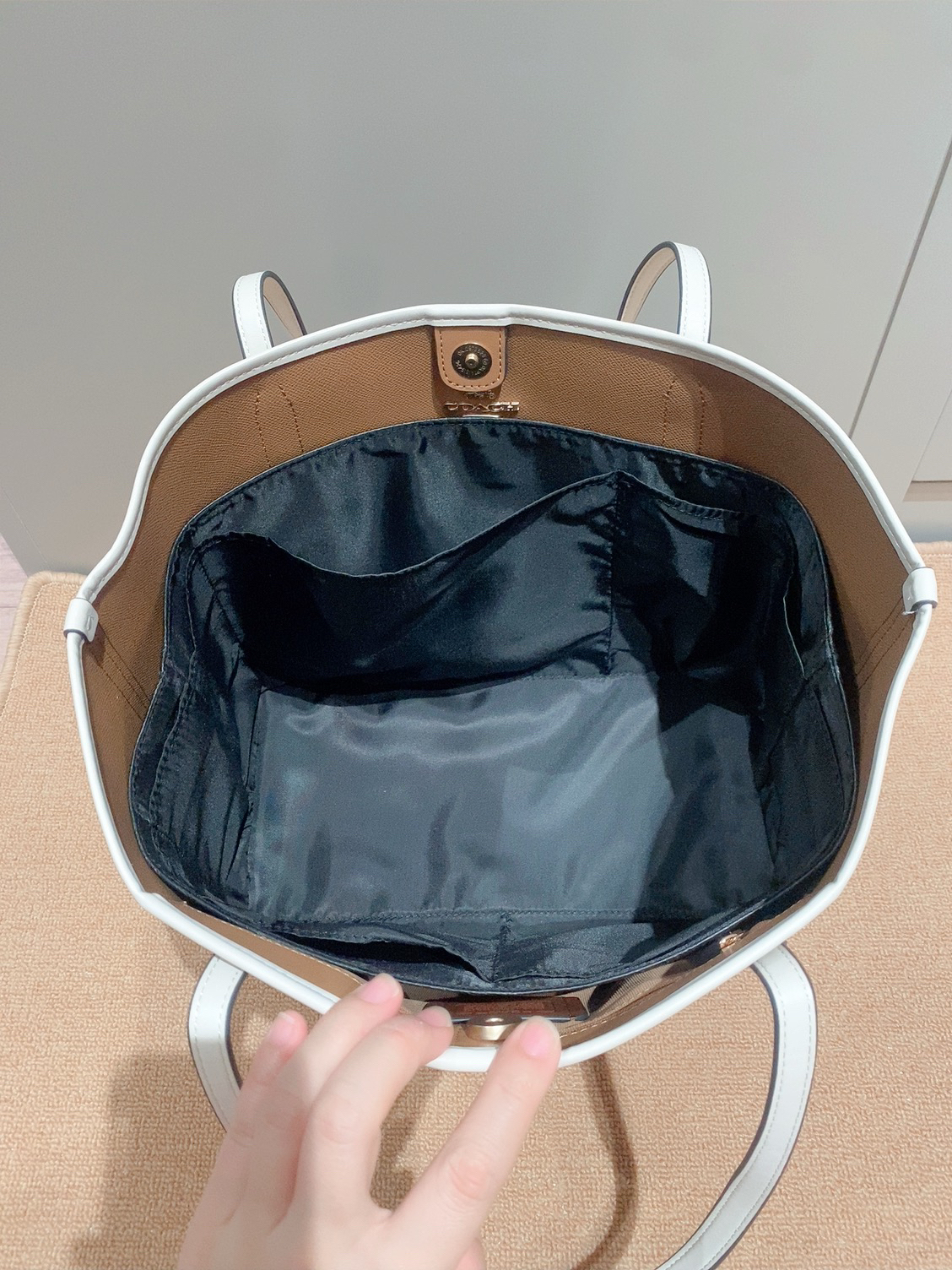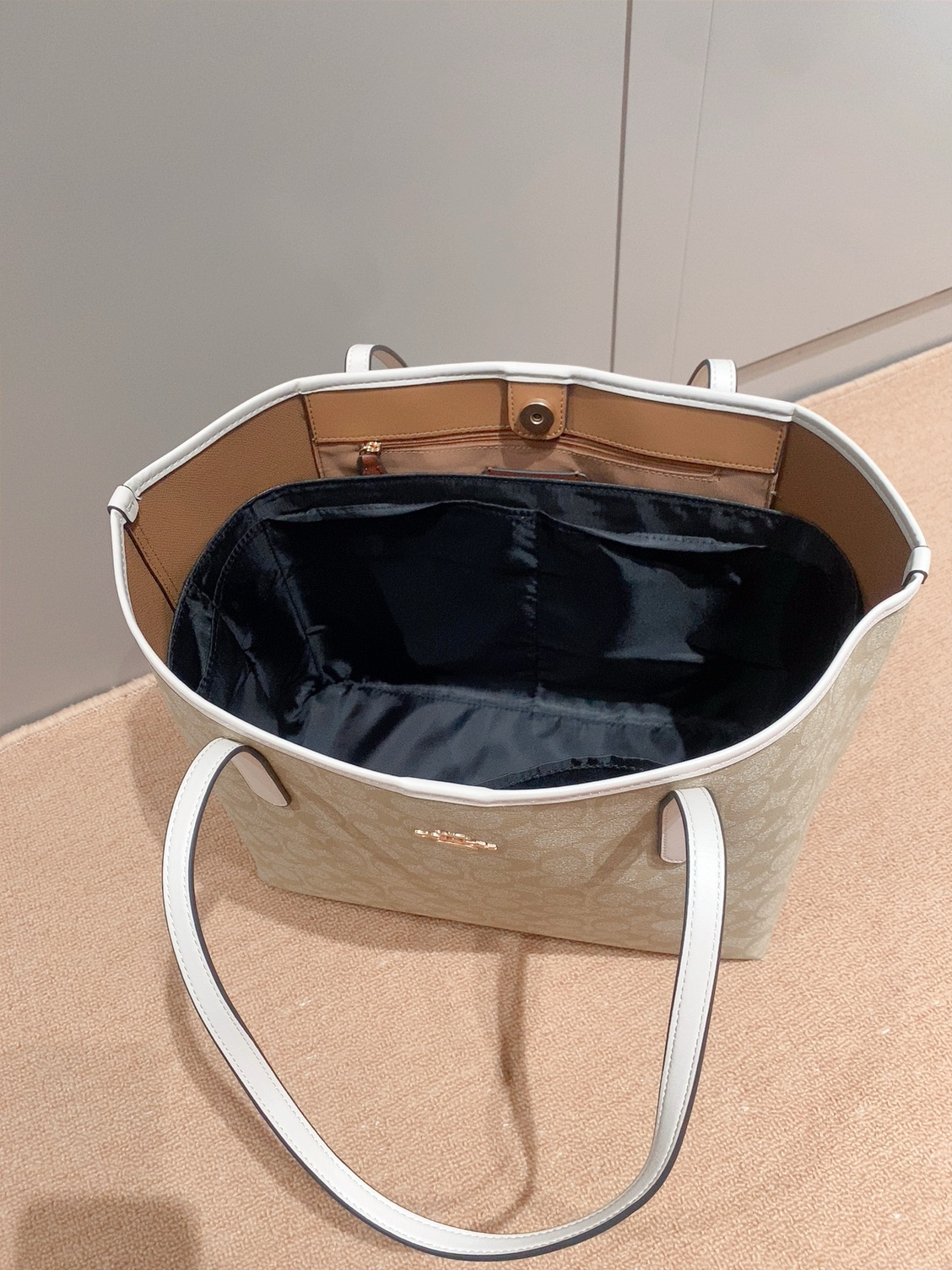 本篇笔记关联了【李佳琦推荐】Coach Zip Top 30 大号 大容量通勤铭牌满印老花PVC配皮拉链开合托特单肩手提包 浅卡其粉笔白 等商品,为用户提供真实的使用体验和购买参考。