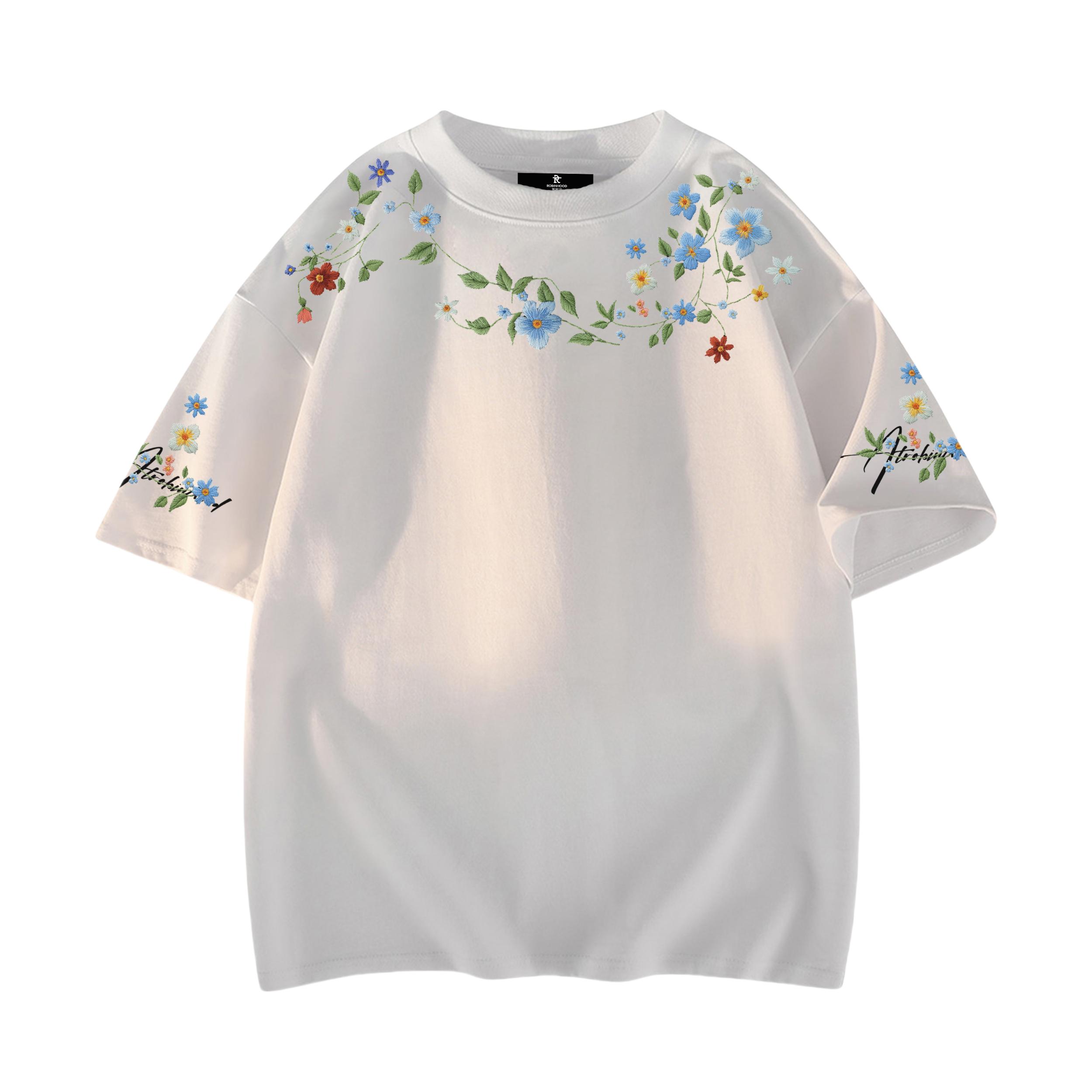 哈喽哈喽欢迎来到xc的穿搭日记 今天上身的是Dêtre par lee 家的刺绣T恤 纯棉面料,亲肤又透气 花卉刺绣细节满满 搭配白色阔腿裤,简约时尚 日常出街超合适 我178 140斤 上身2xl刚刚好