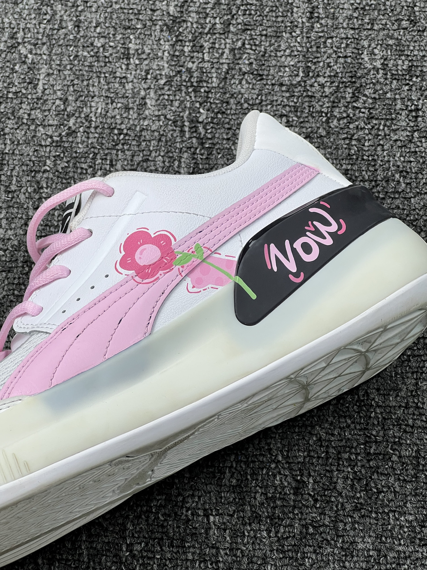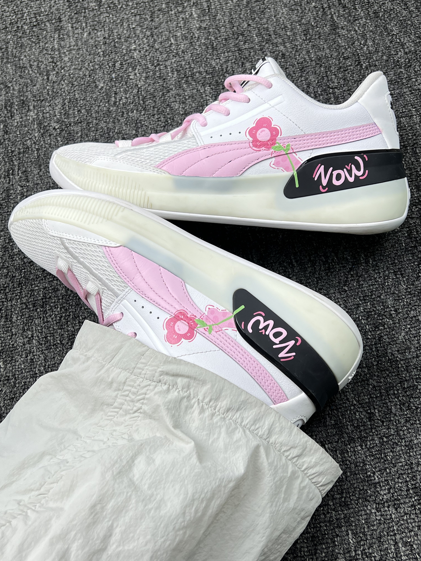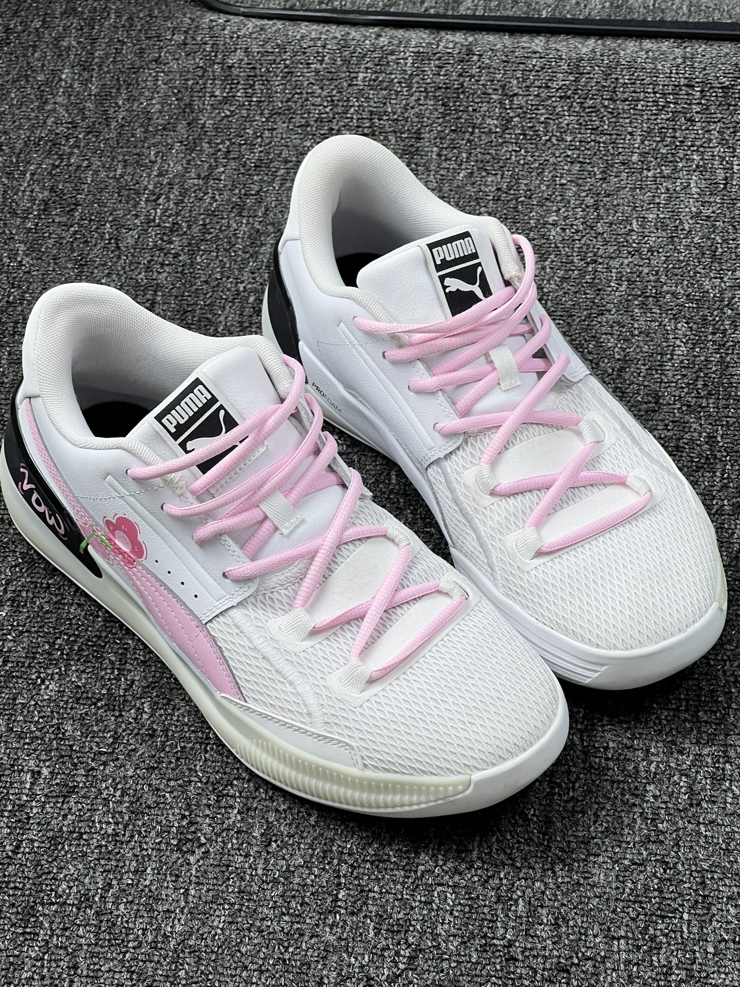 520快到啦,这双PUMA小粉豹太戳少女心!粉白配色软萌又清新,花朵刺绣好甜,上脚巨轻便,透气网面走路不闷脚,鞋底防滑打球也稳。搭配浅灰运动裤或奶白牛仔裤,妥妥阳光少年感。和对象凑个情侣款,甜蜜值爆表!唯一小缺点:粉色鞋面容易脏,得小心呵护。但520嘛,穿它表白超有氛围感,冲就完事儿!