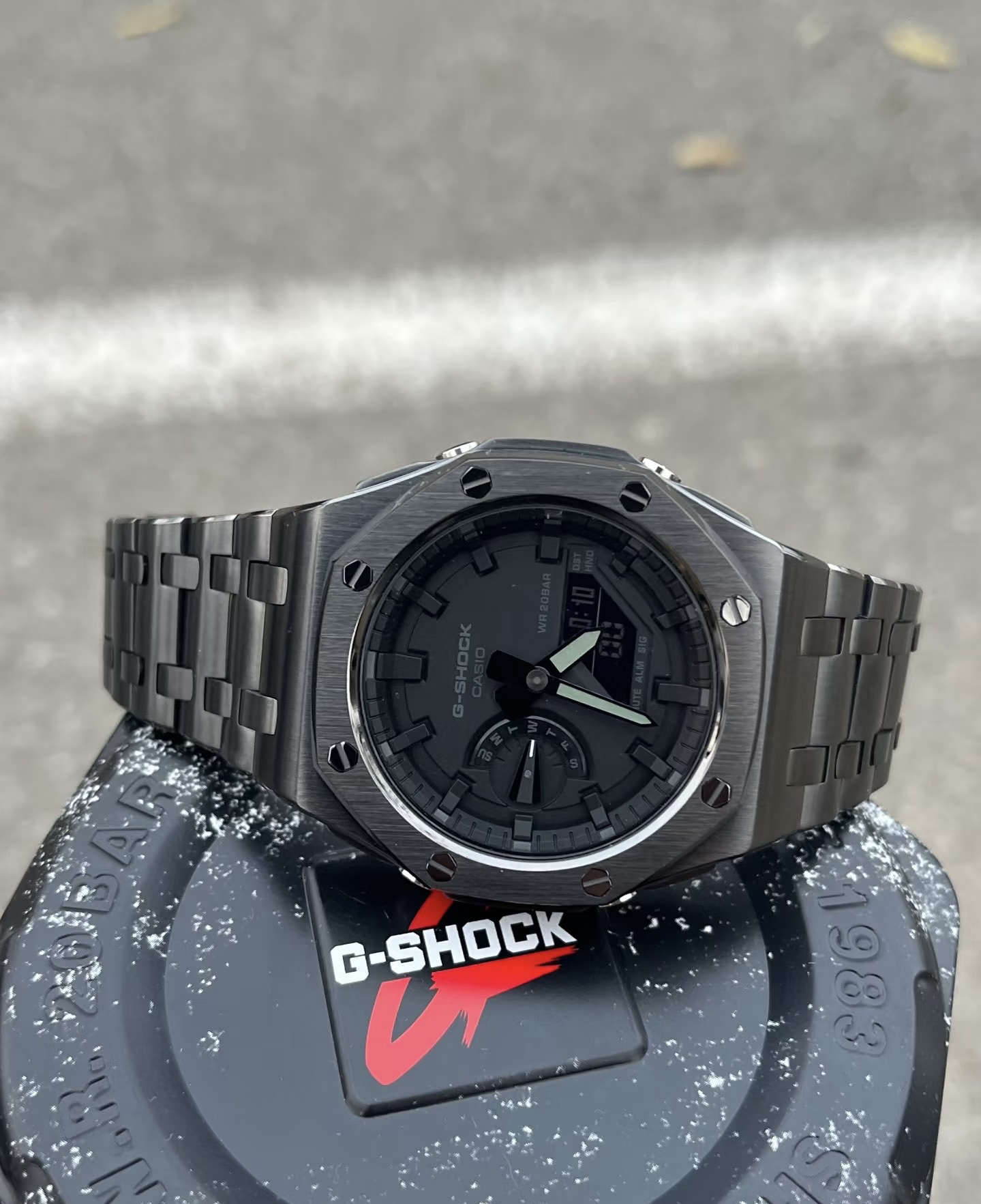 全黑锻造的质感不用多说真的顶 表盘也蛮有设计感的 八角形表盘内有液晶和指针的双显 简单穿搭一下就会很帅