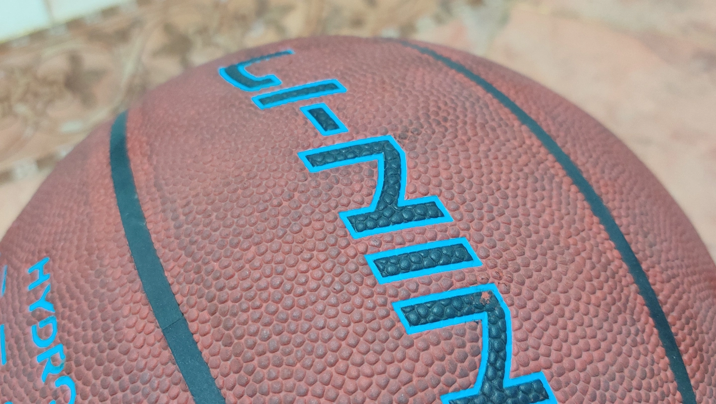 优点 1、球面不滑,也不磨手,外场不怎么吸灰,沾灰以后,也不会打滑!球面材质确实不错! 2、弹性也不错,不用打太足的气,回弹足够。 缺点 重量不足,太轻了!称重595g,连600g都不到!外场投篮轻飘飘,不稳定! 建议初中生、高中生,练球用用可以,实战这球重量不达标!