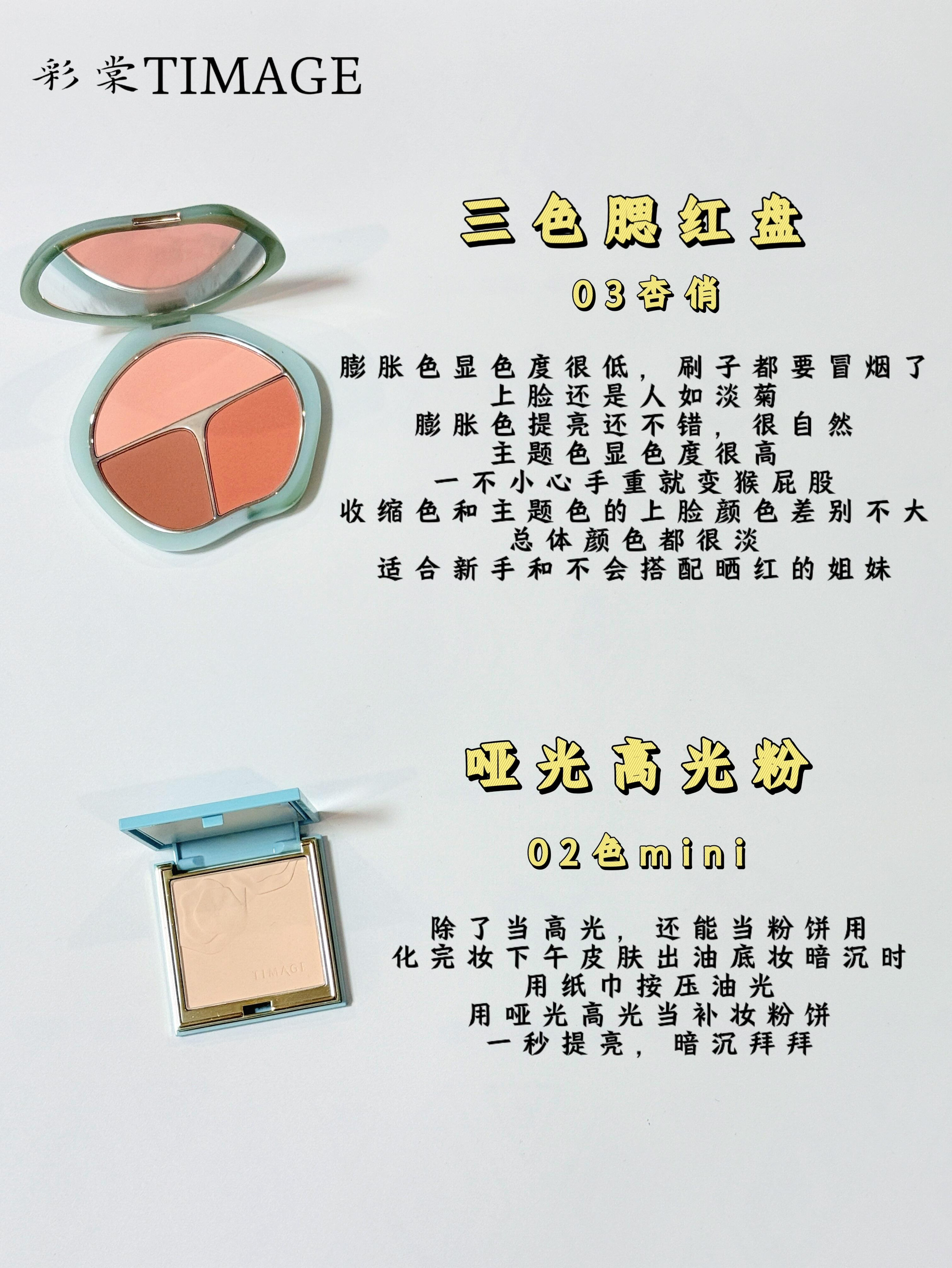 本篇笔记关联了TIMAGE/彩棠 2.0大师高光三色一体修容盘 哑光修饰提亮脸部轮廓鼻阴影 17g 02月晖清 白皙肤色、TIMAGE/彩棠 争青流玉三色腮红盘 三合一修饰轮廓提气色粉嫩哑光 13g 03杏俏、【小样】彩棠 单色高光盘 哑光提亮脸部轮廓 鼻影 柔光流影 6g 02素月白等商品,为用户提供真实的使用体验和购买参考。