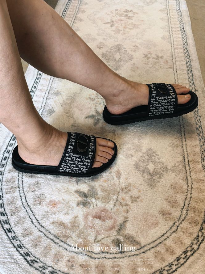 一直想入手一双能通勤又舒服的一字拖,最近被我找到了,给大家做个分享: 首先鞋面是老花编织纹理,配合黑色皮子显得很高级,实物比照片好看 上脚感受鞋底软硬适中,日常穿没有问题 搭配牛仔裤休闲裤短裤都挺好看的,很百搭