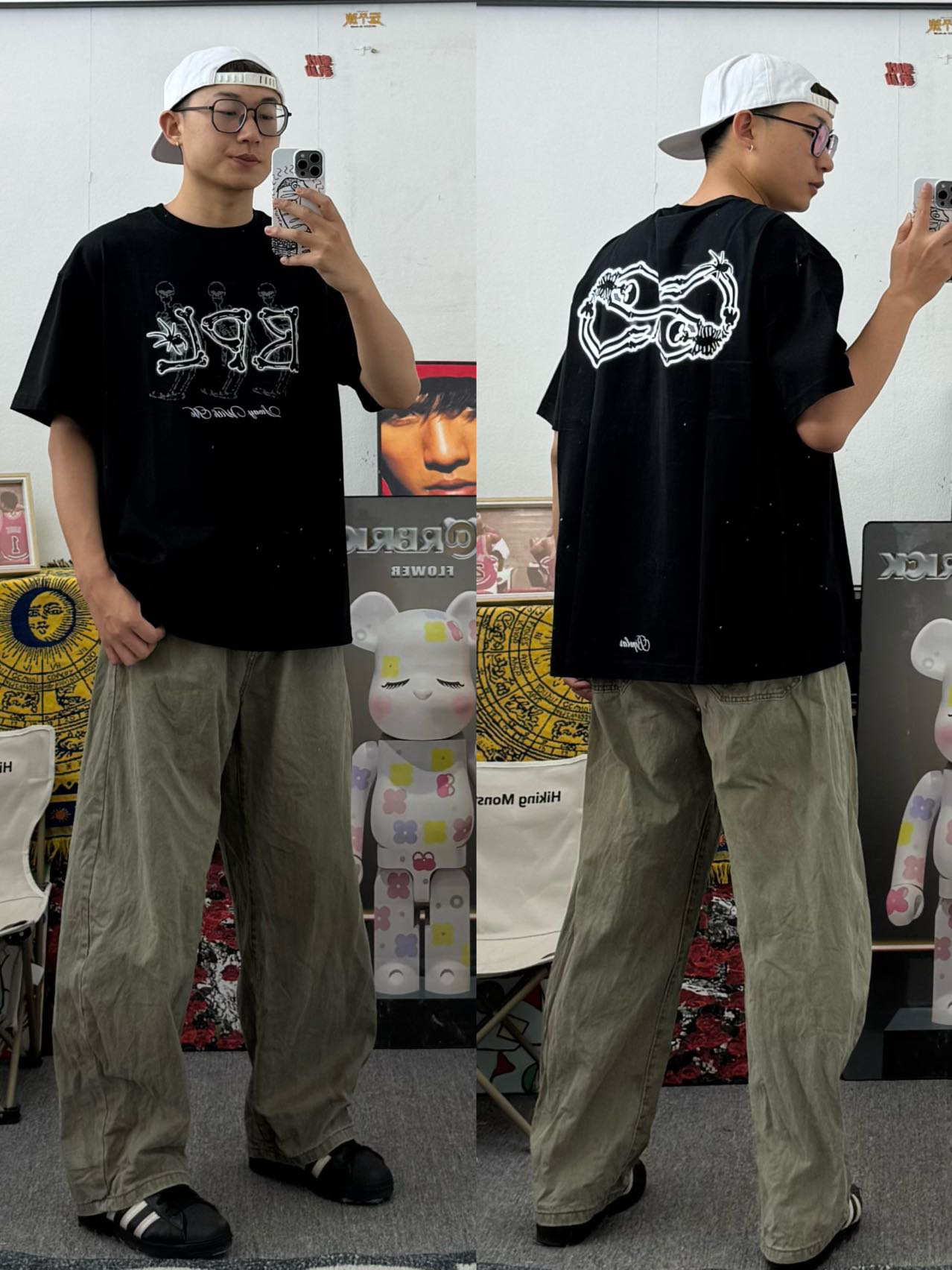 冰美式合集穿搭分享 今天给大家分享几套最近穿的短袖合集 top1 黑色短袖配绿色弯刀裤 青春活力感满满 top2 合集印花短袖配七分牛仔裤 休闲舒适 夏天这样穿不闷热 top3 白色压胶印花短袖配运动直筒裤 出街运动两不耽误 top4 印花短袖 简约不简单个性十足 个人身高/体重:178/140 都是L的