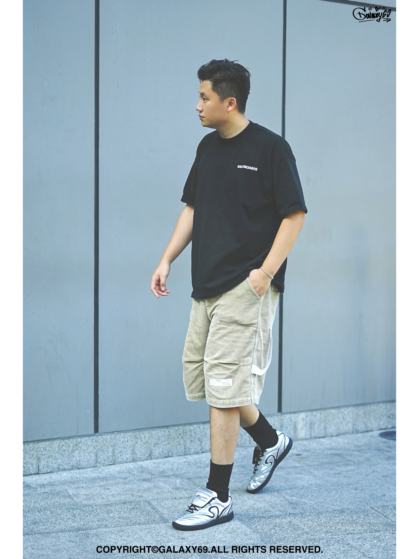 这双银色足球板鞋像踩着流动的水银出门,冷调金属感自带反光板效果,随便抓一件衣柜里的黑色T恤就能搭出松弛感。 卡其色灯芯绒裤是点睛之笔,粗粝的复古纹理平衡了球鞋的未来感,裤脚堆在鞋舌上刚好露出银色锋芒。背个帆布包往树荫下一站,裤子的暖棕和鞋子的冷银 周末去咖啡店发呆或压马路逛集市,这身就像刚睡醒随手抓的衣服,但低头看见鞋面反光时,又忍不住偷偷觉得自己有点帅。 - #恭喜我衣品进阶 #T恤穿搭短袖 #...