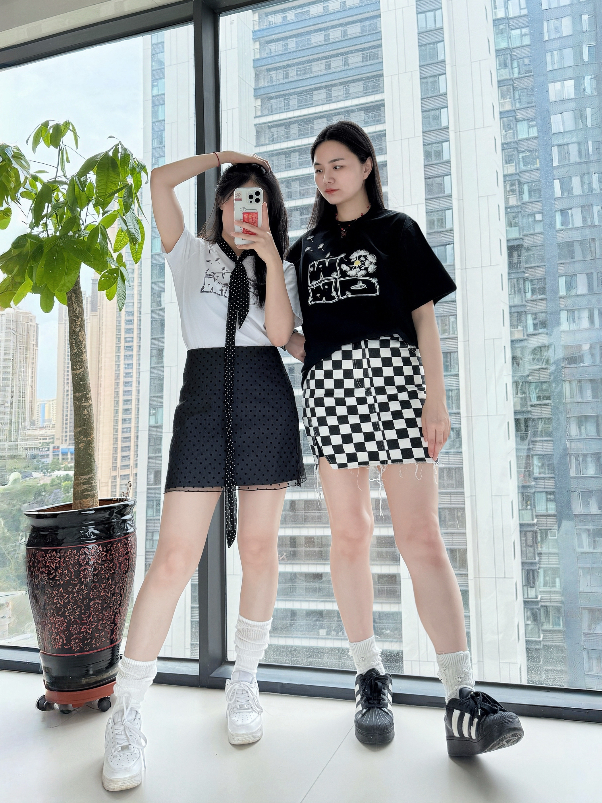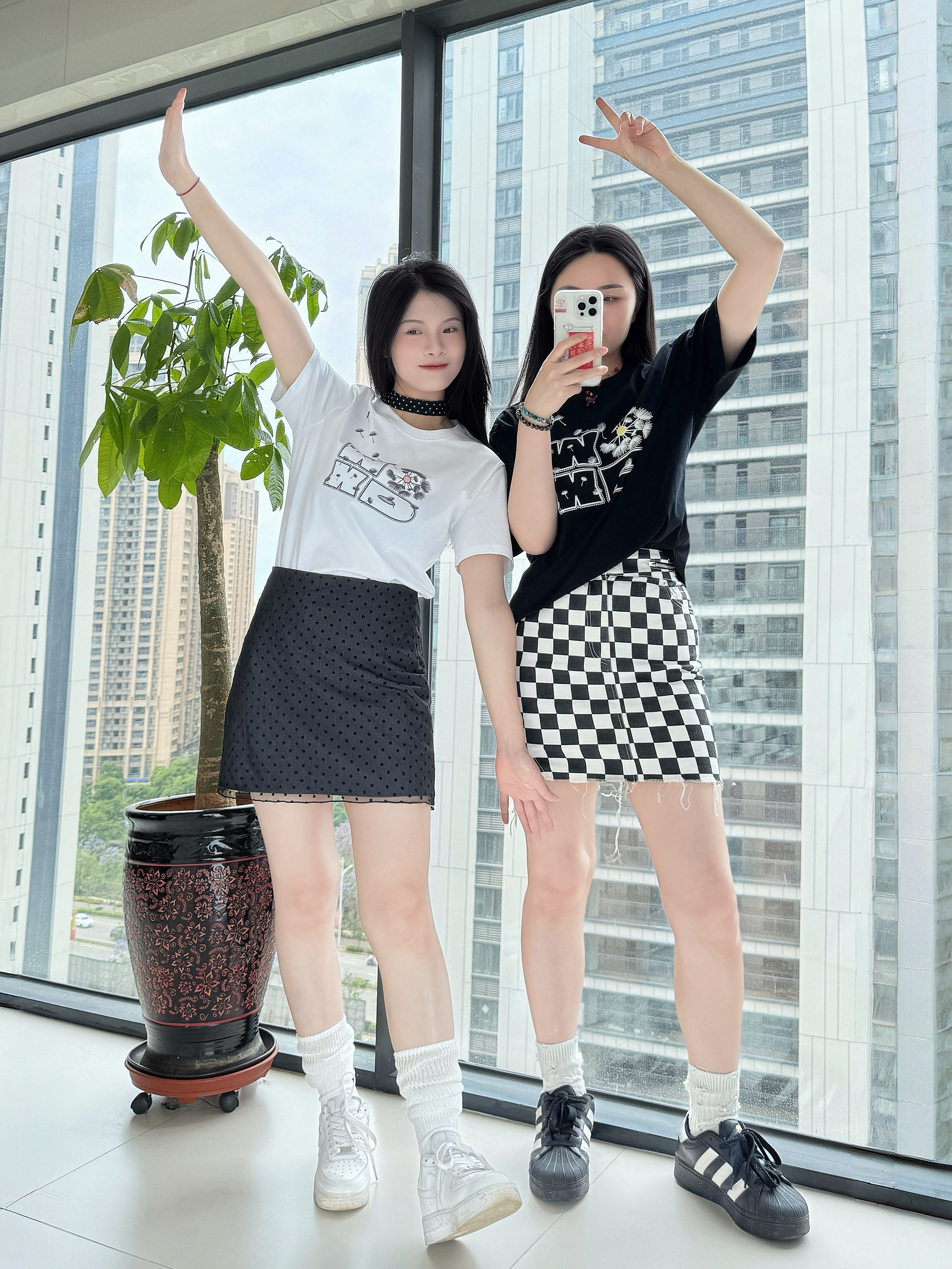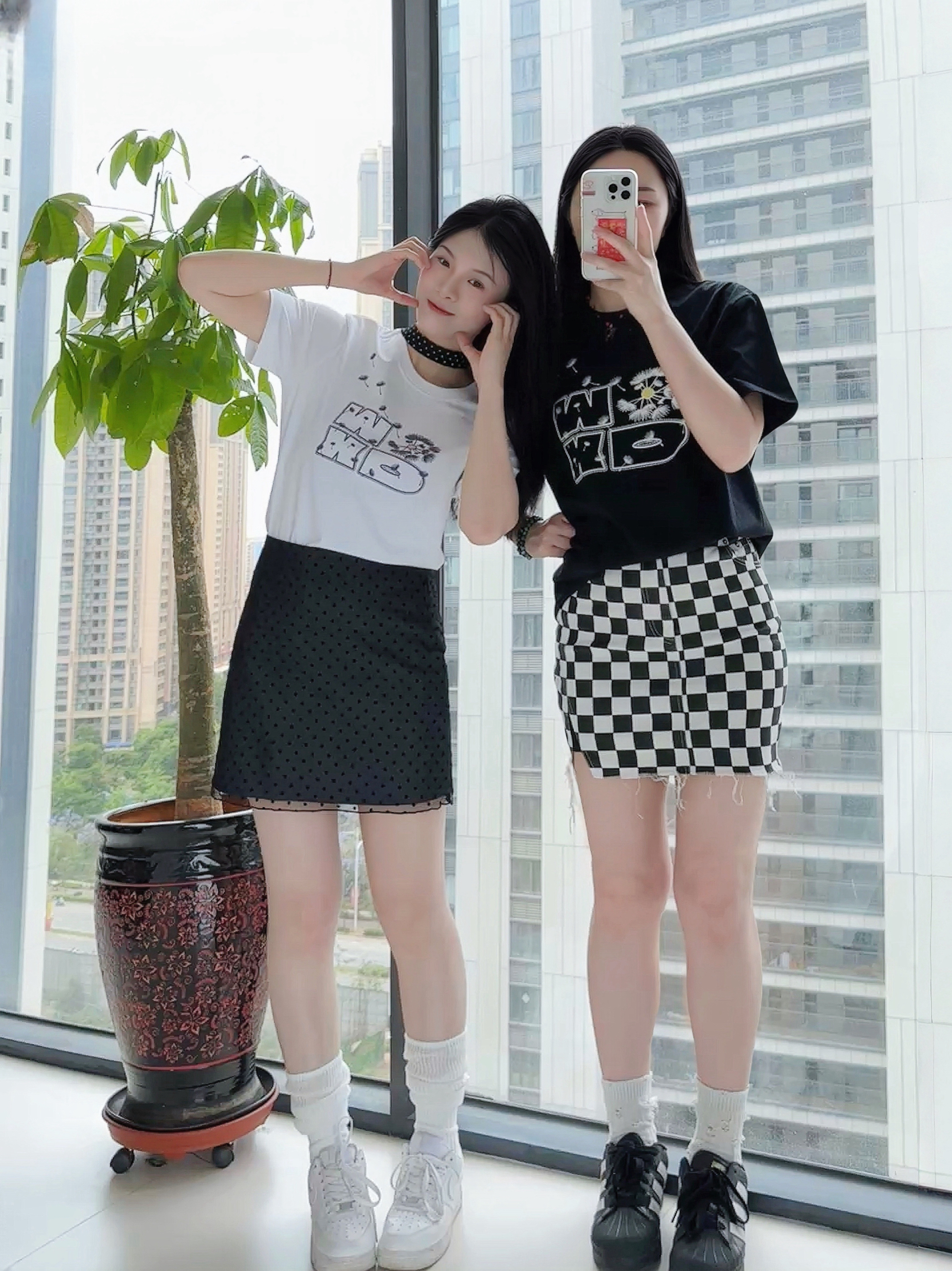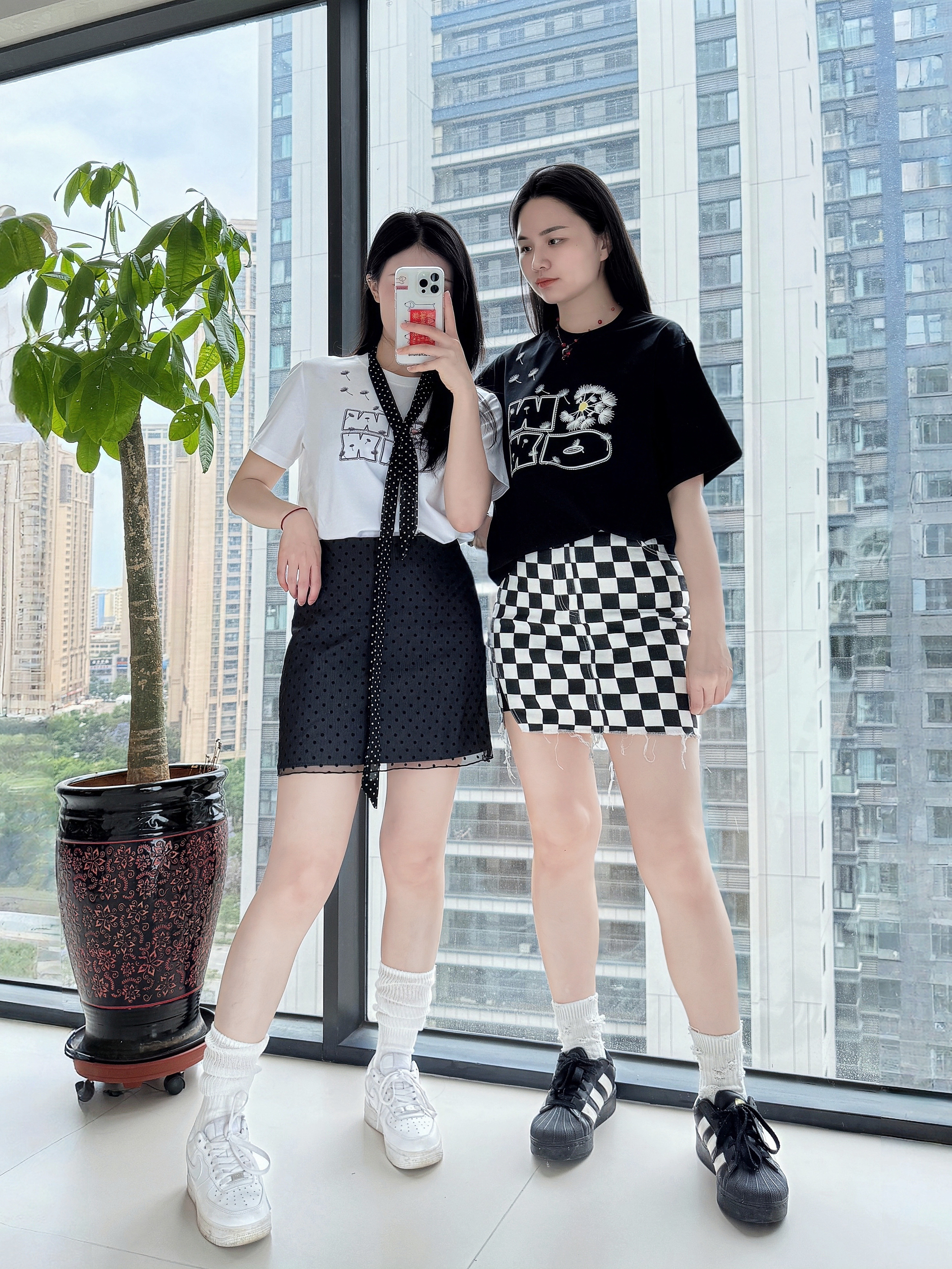 ⋆⑅˚₊⸜ 🍃‧₊˚✩彡 👚: OWOX 的凉感T恤 上身冰冰凉凉,很舒服 🤍短款正肩显瘦又百搭 🖤宽松版oversize版型 👗:搭配了波点短裙/格纹短裙 👟:搭配了经典的NIKE空军一号/阿迪达斯贝壳头🐚 纯净的清爽,是属于初夏的治愈感~