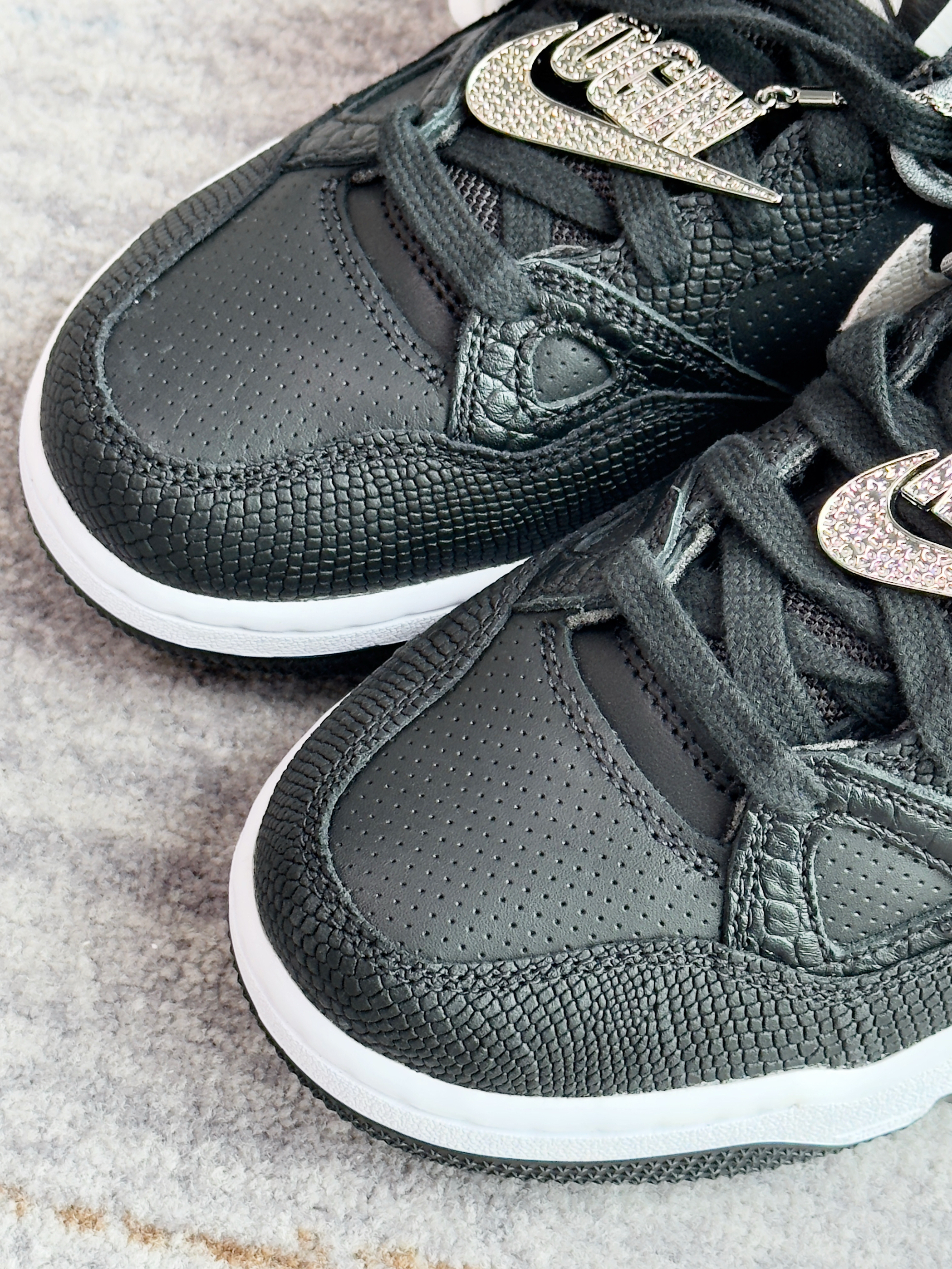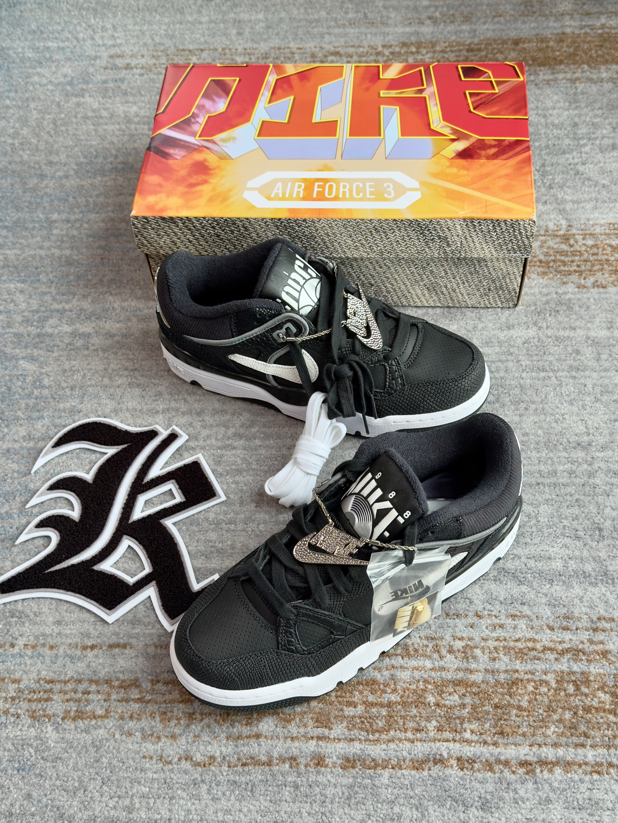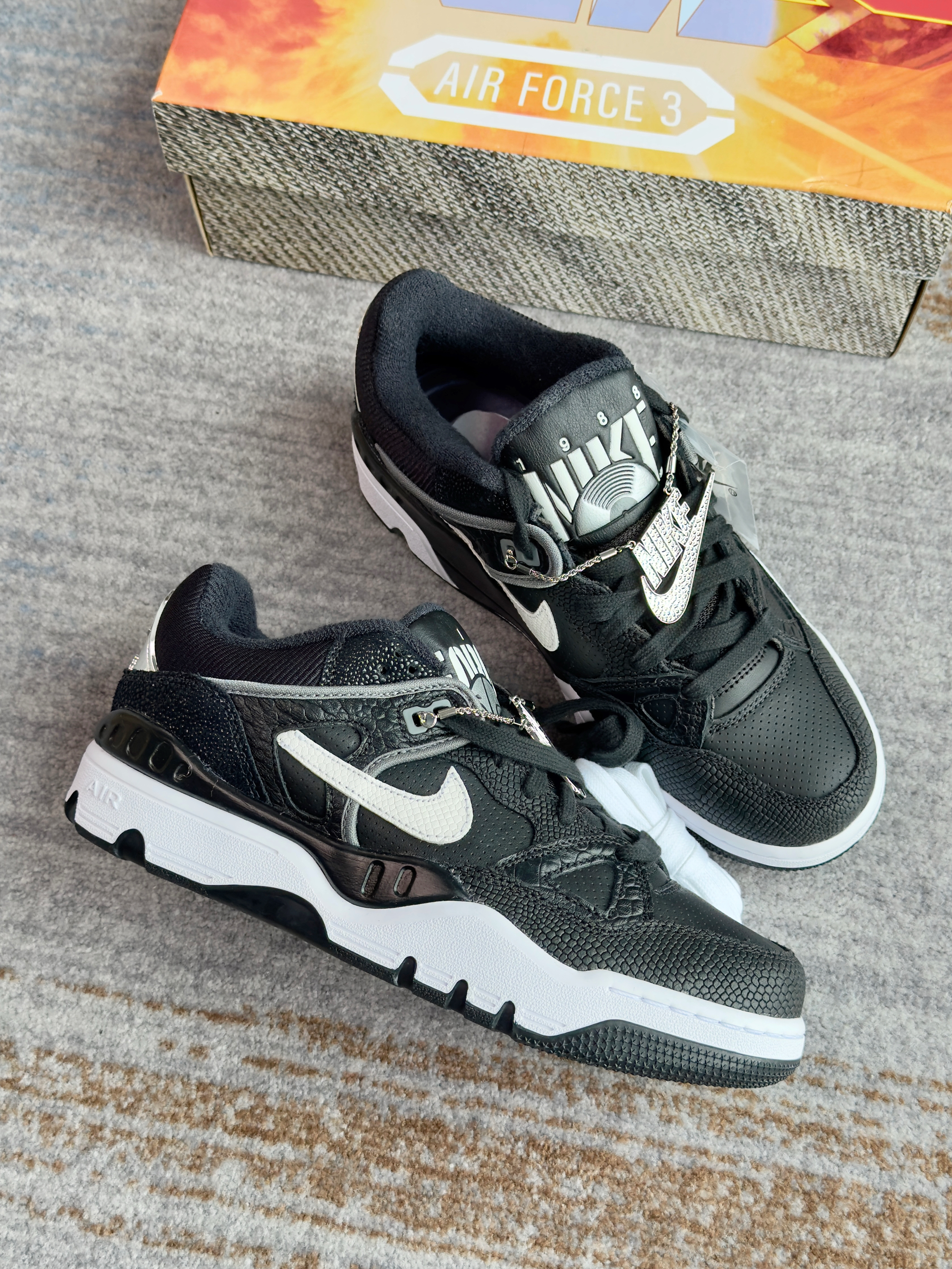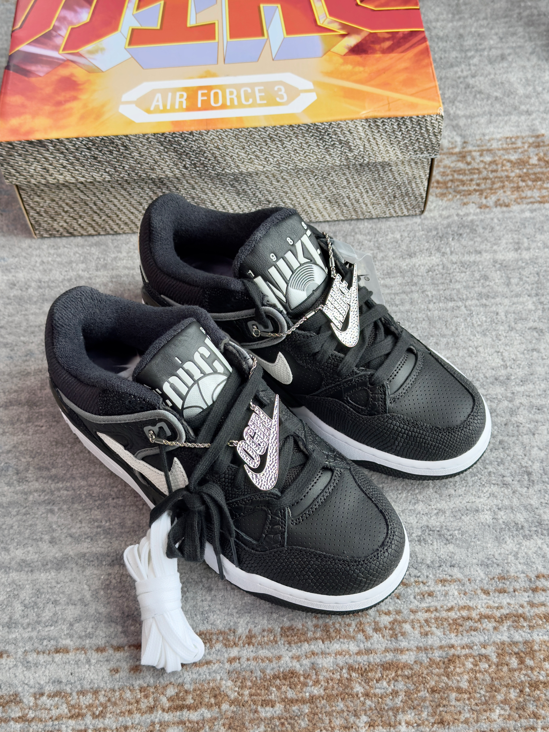 AF3这个鞋型真的太冷门 以前都没怎么见过 这次和NIGO联名才知道 整体联名规格还不错 特殊鞋盒加各种酷帅小配件 鞋子皮质也用了多种动物质感 看起来还是挺帅的 黑白配色上脚也好搭配 原价价格略高,可以等等再入手 520可以送另一半搭情侣鞋 尺码方面不偏码,正常码选择即可!