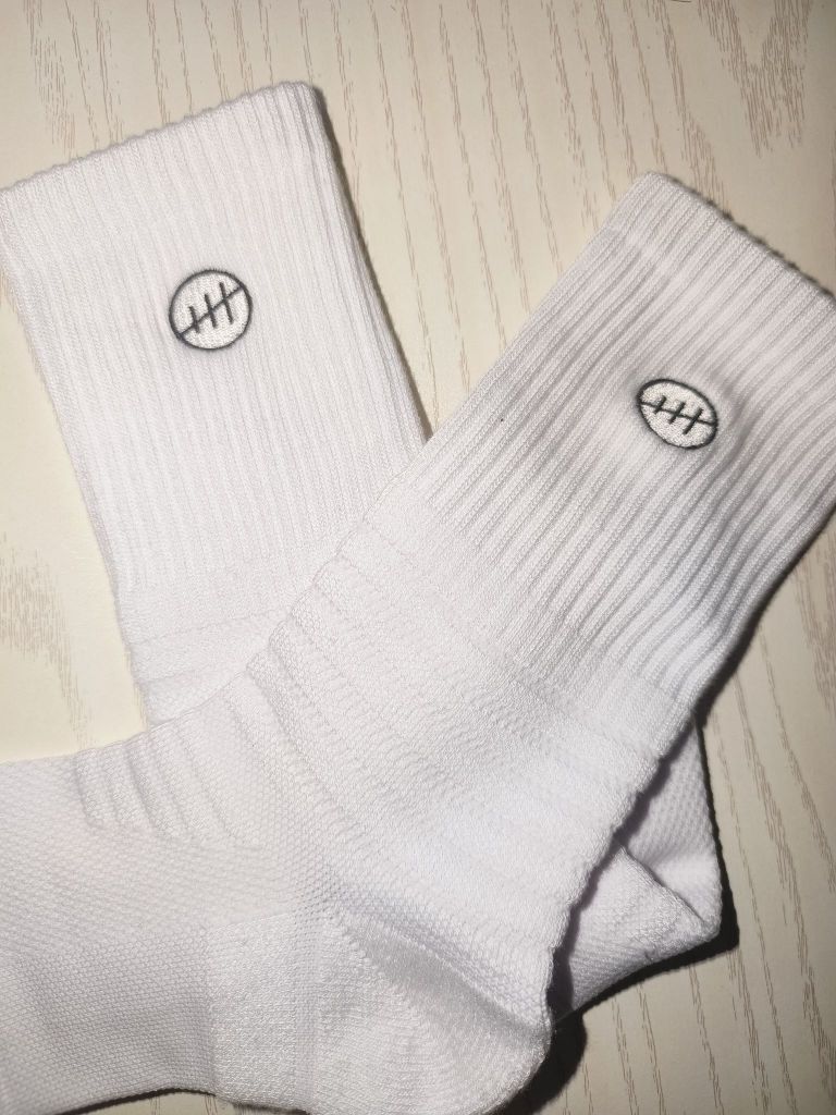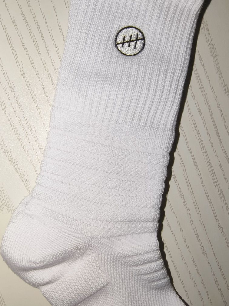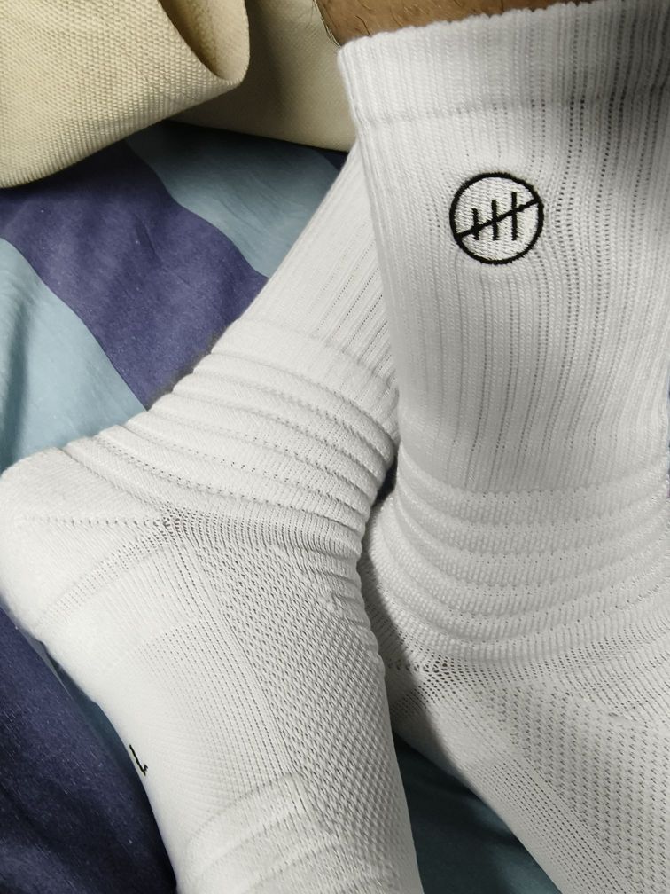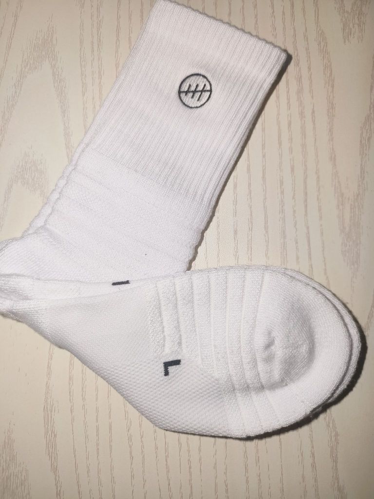 这双白色篮球袜简约大方,标志设计增添细节,材质厚实,挺耐穿吸汗,防滑感也挺不错 透气性也好