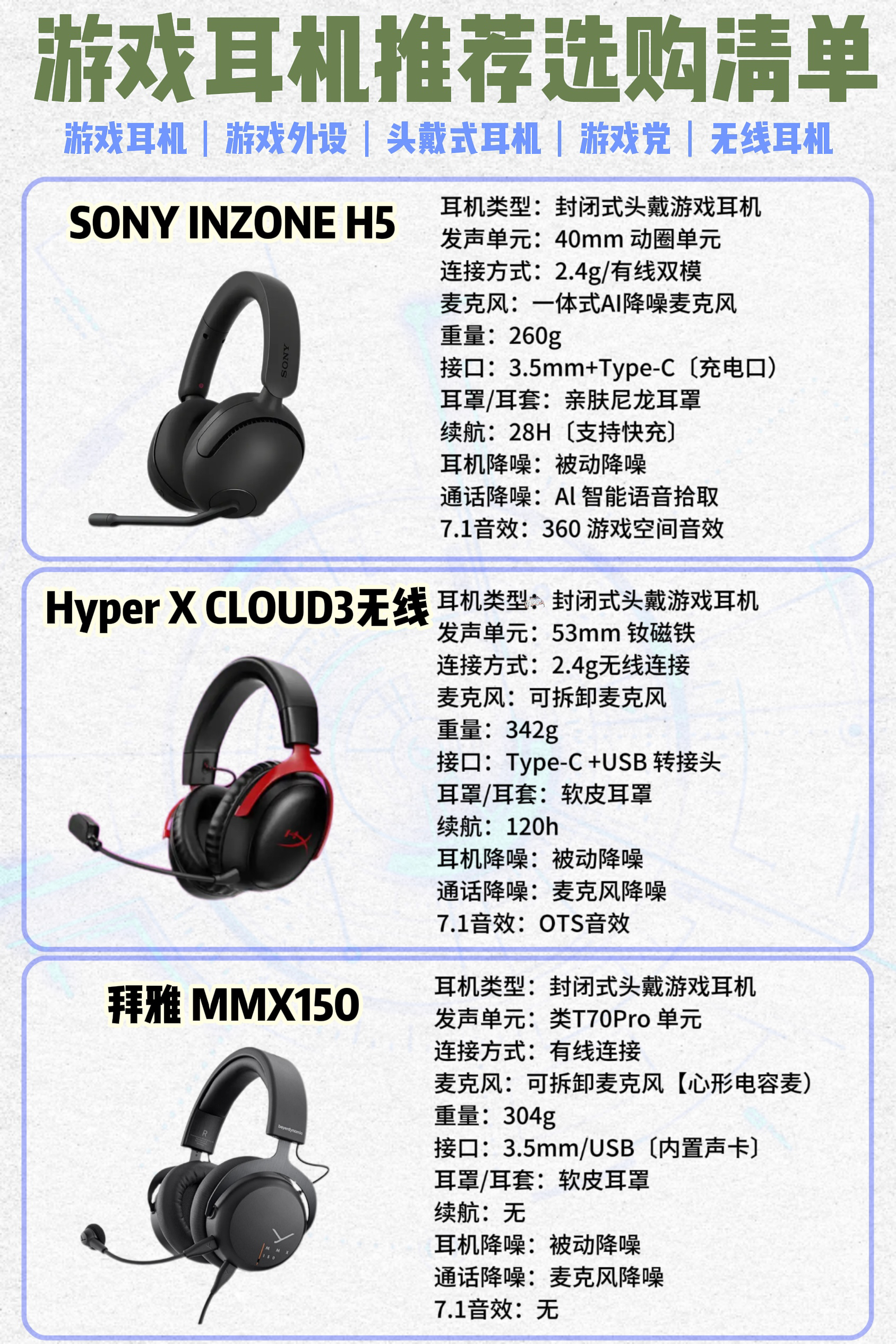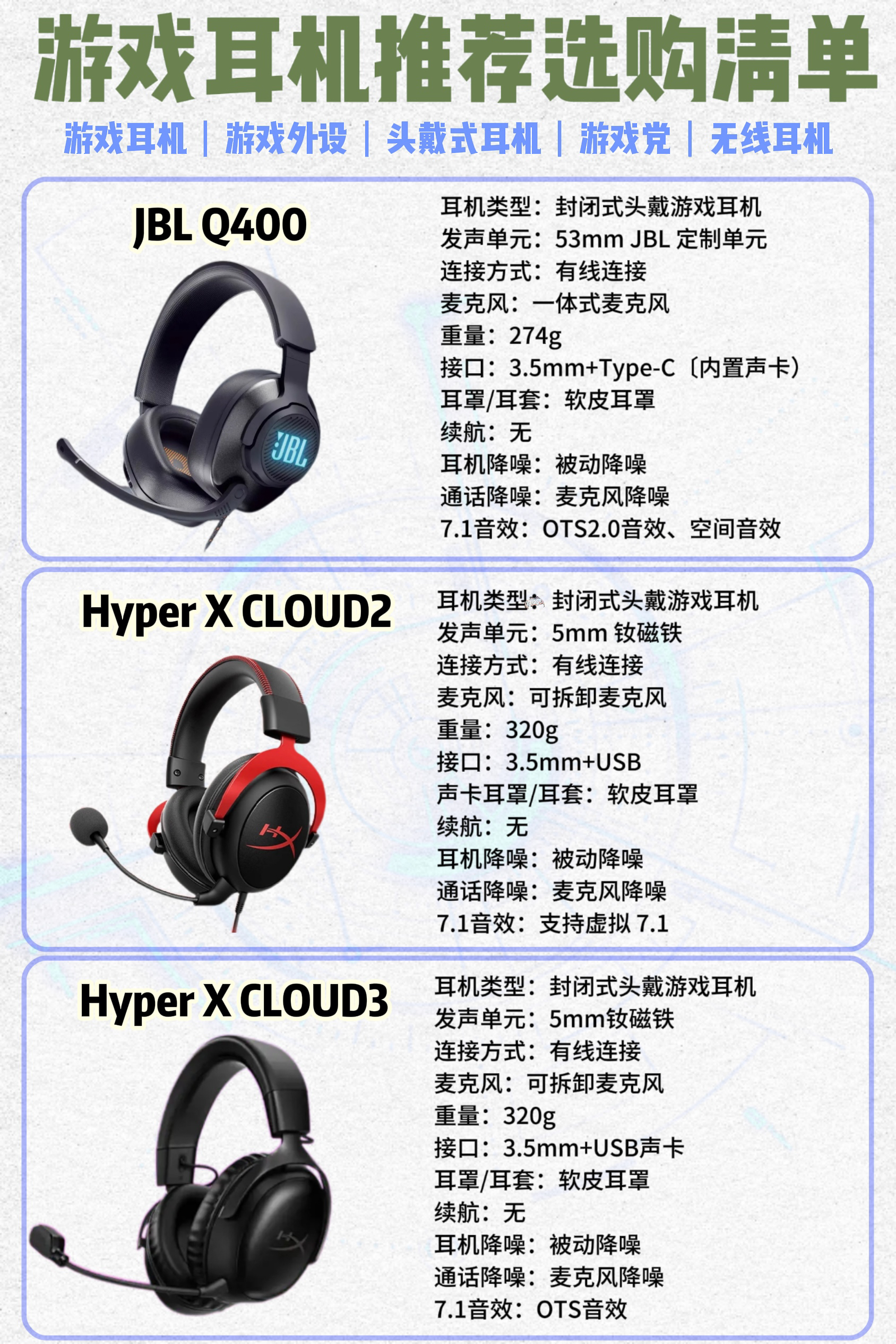 本篇笔记关联了Razer/雷蛇 旋风黑鲨V2-X 头戴式 游戏耳机 降噪 带麦 有线 电竞 7.1环绕声 白色、Sony/索尼 INZONE H3 头戴式 有线游戏耳机 降噪 电竞 高清通话 虚拟声道 听声辨位 连线 白色、HyperX/极度未知 飓风3 有线头戴式游戏耳机 DTS音效 电竞 电脑 吃鸡灵音 虚拟环绕声 csgo 带麦 入耳式 被动降噪 阿尔法耳 听声辨位 黑红色等商品,为用户提供真实的使用体验和购买参考。