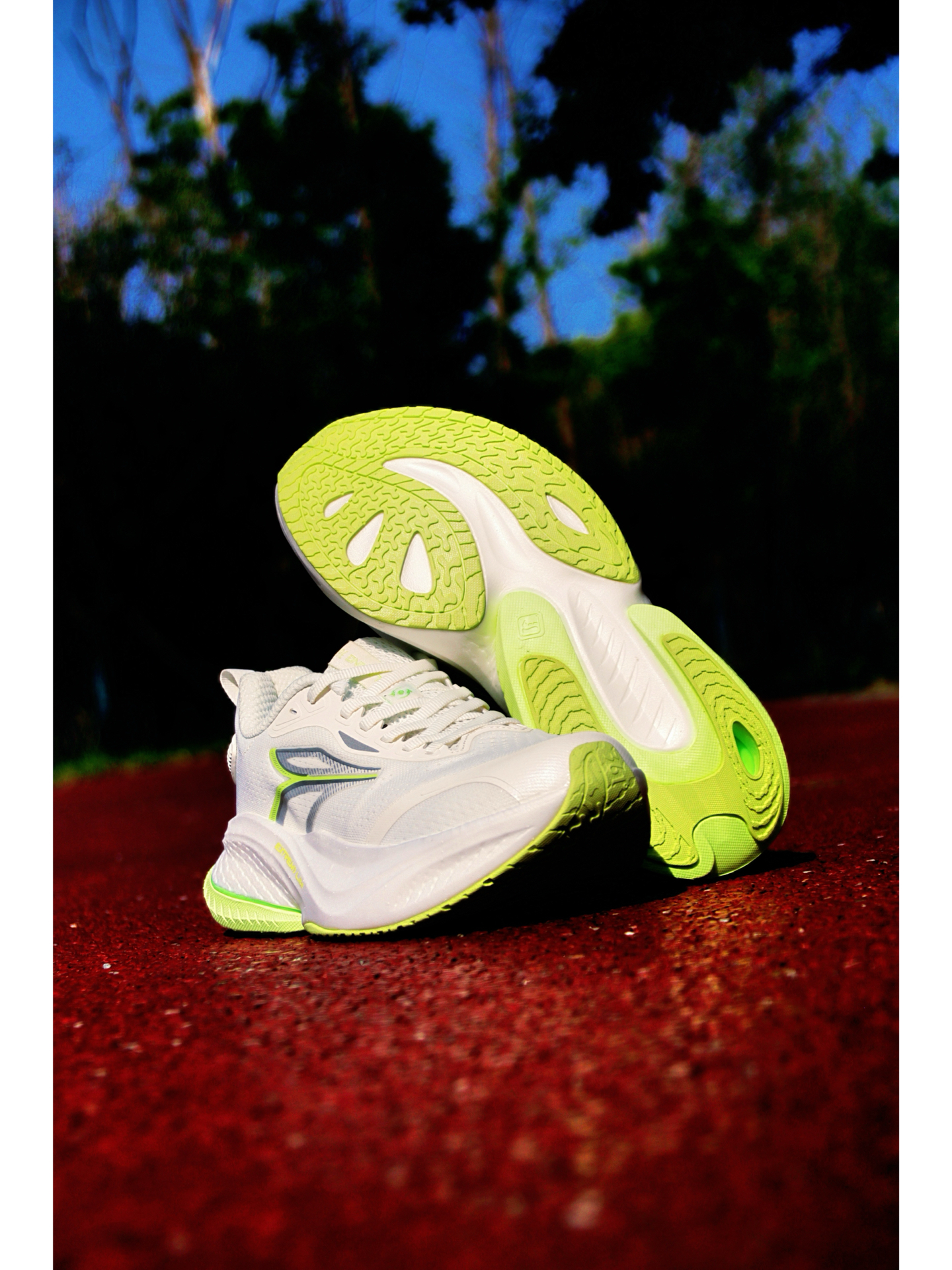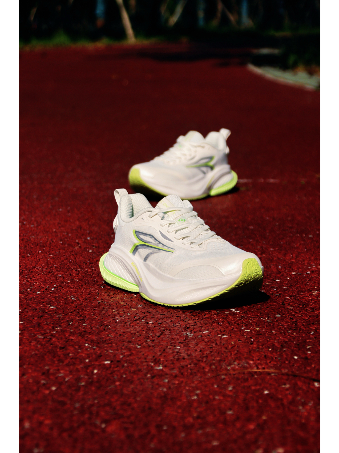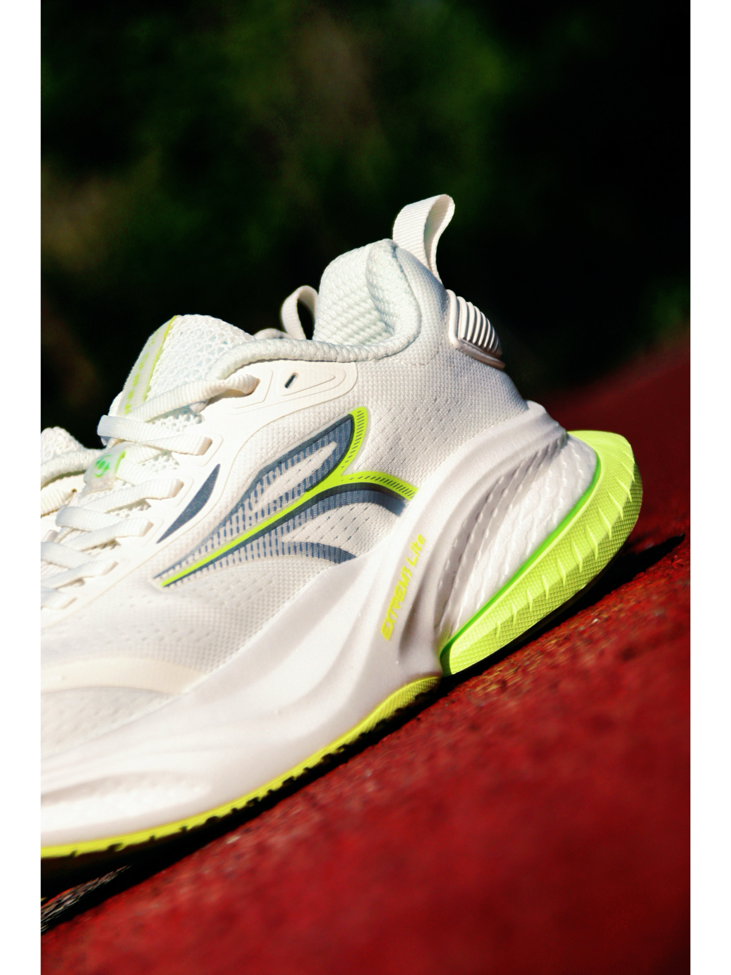今天带来的这双赤焰MAX就挺合适~ 首先这个颜值就很清爽白色搭配清新绿就跟夏天,加上柔软透气的贾卡鞋面,夏天穿跑起来也不会闷脚~ 中底上层材料升级粗胚超临界,当家发泡工艺,软弹舒适,缓震足! 后跟内置tpu环形稳定片,跑起来落地相当稳定,大体重也没啥问题~ 外底耐磨爪地也可以,日常跑步训练相当稳~