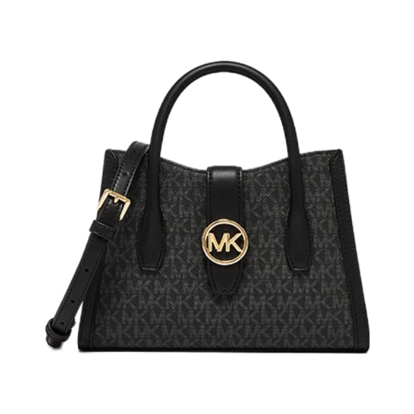 MK的专柜款Gabby手提包 我这个是中号 尺寸我觉得刚刚好! 水杯、折叠伞…都能放得下👌🏻 有长肩带,可以斜挎✅ 出差旅行,上班通勤,都ok的 黑金配色🖤✨很有富贵千金感