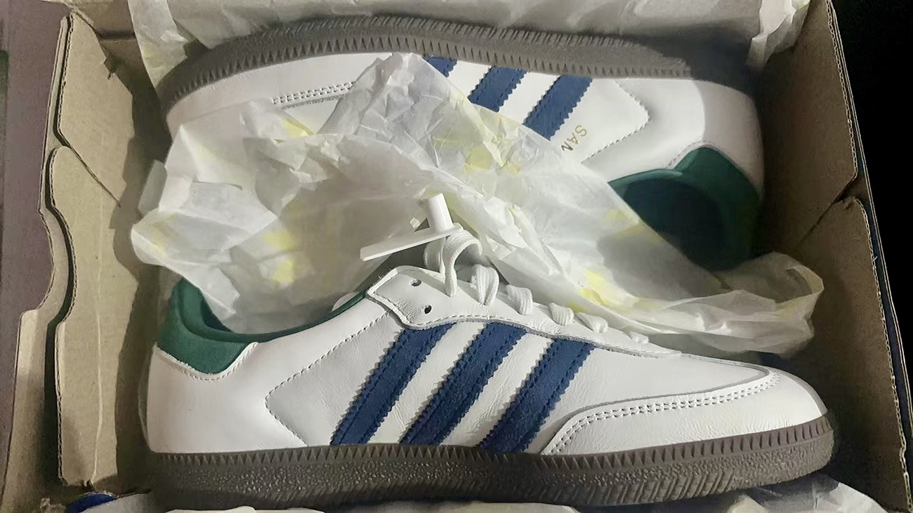 adidas Samba OG放大招!白绿深蓝碰撞出高级感,复古德训鞋型超显腿长。脚感软弹到起飞,耐磨抗造超耐穿,出街直接slay全场,这波颜值与实力兼具,不冲真的会后悔!