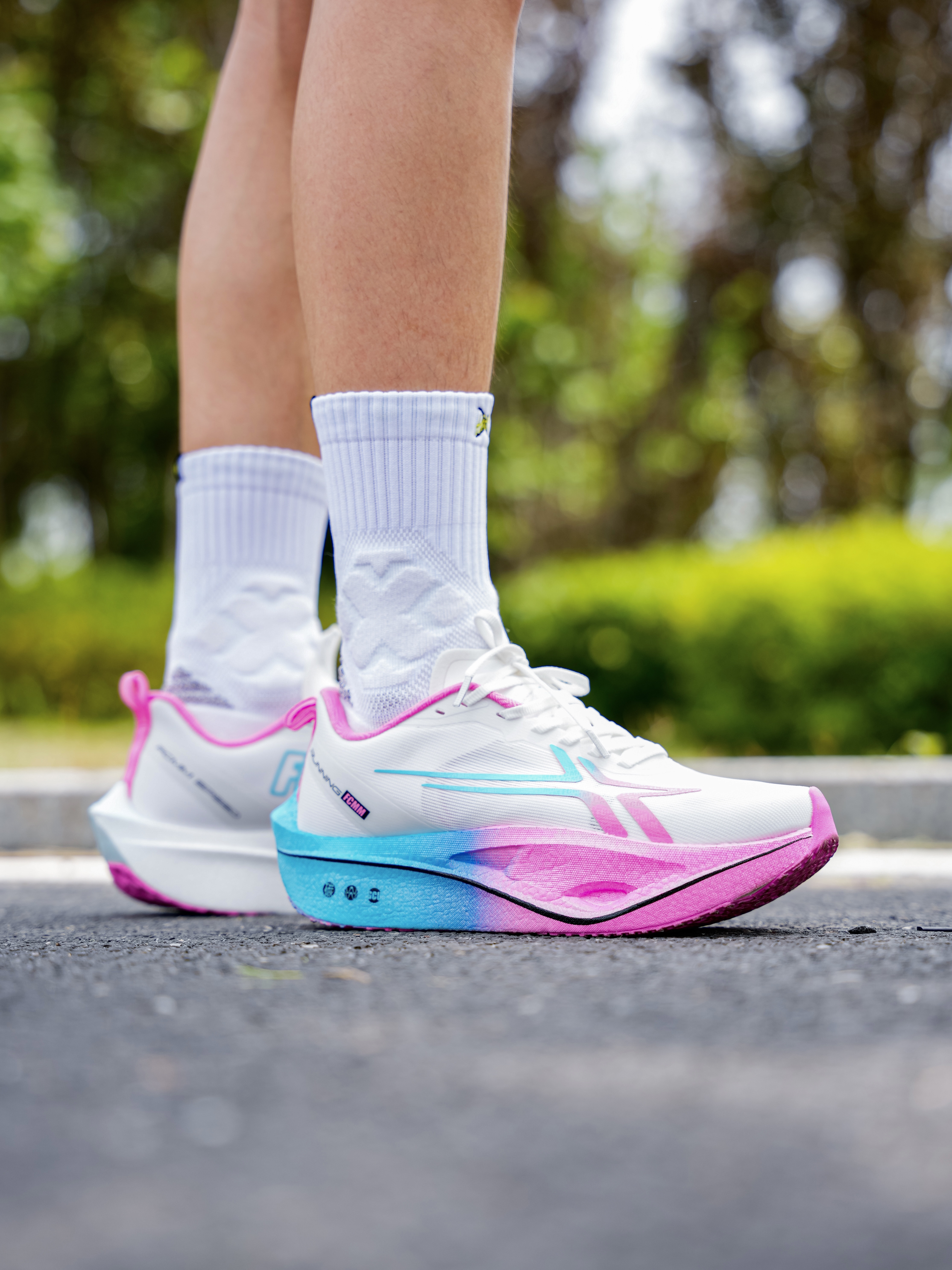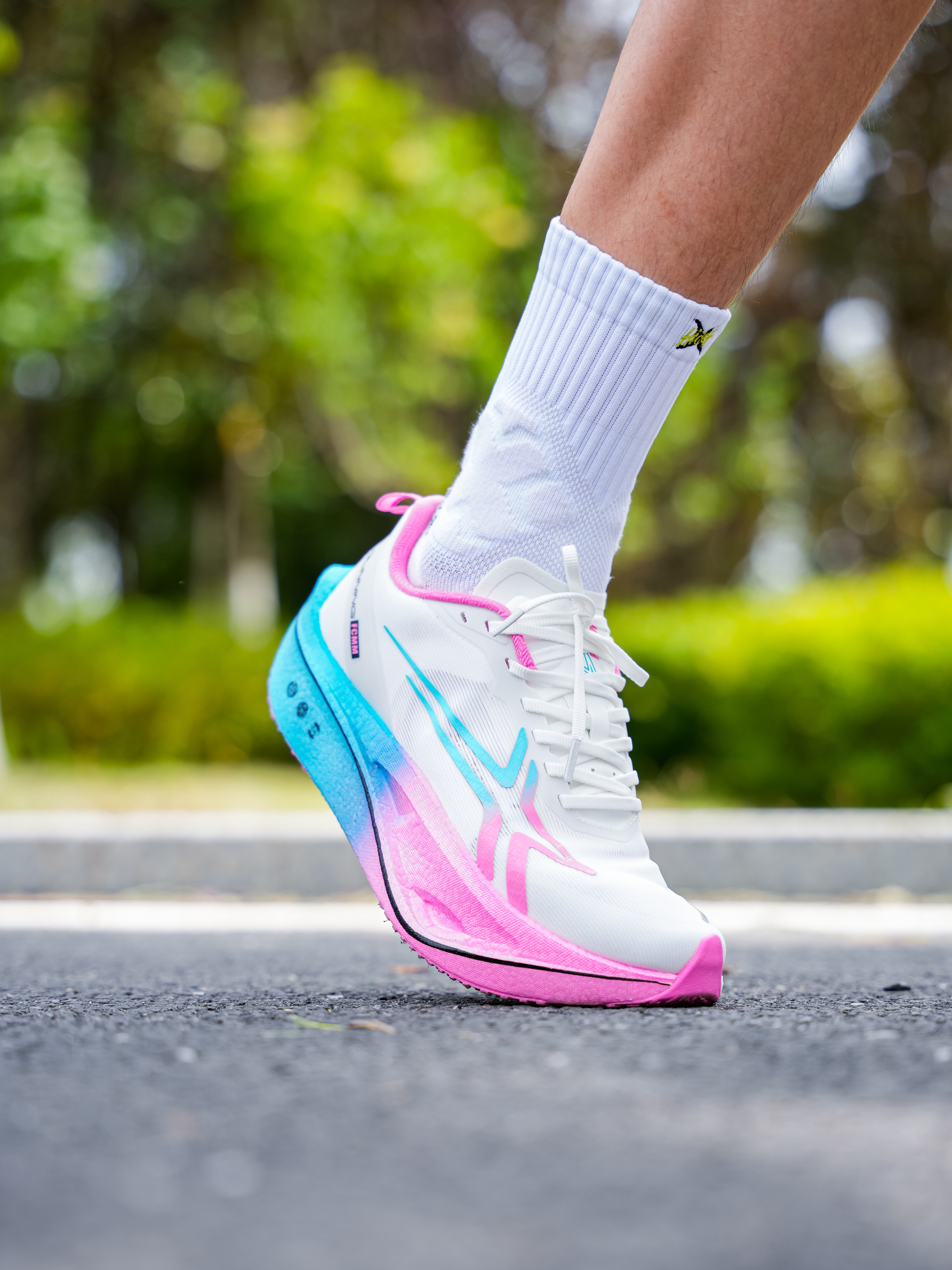 最近上脚的这双多彩缓震跑鞋!中底爆米花很厚、但是我觉得重心偏高 我觉得适合有基础跑者、入门跑者需要适应!鞋面的透气且穿起来不掉跟 尺码正常选择即可…