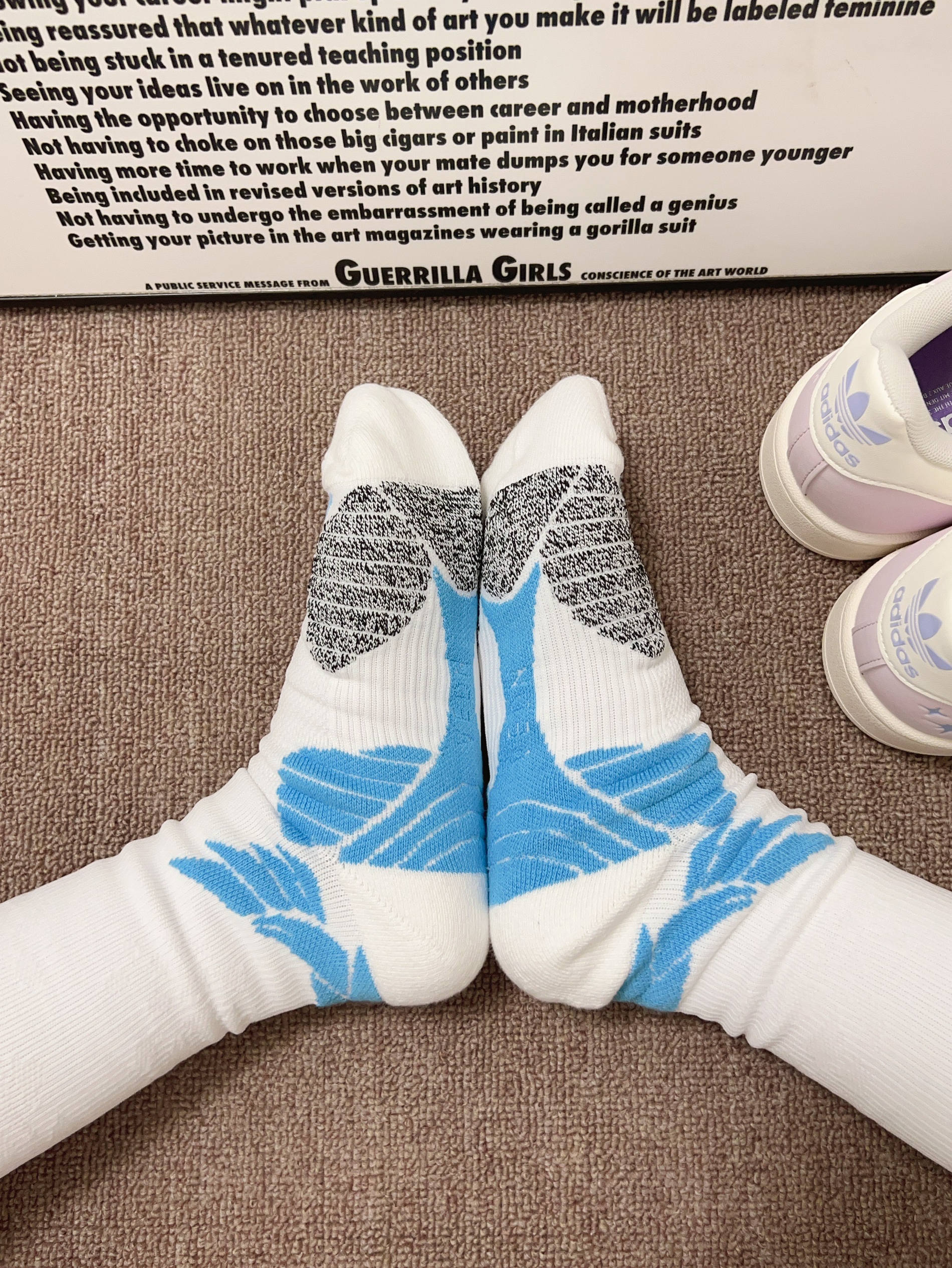 广东的夏日真的好热🫠 每次休息日都要跟小伙伴去打球超热 当然要安排新的袜子穿呀 维动这款袜子配色简约 摸着面料柔软 上脚穿舒适蛮透气的不闷 去打篮球运动穿出汗也不怕会臭脚