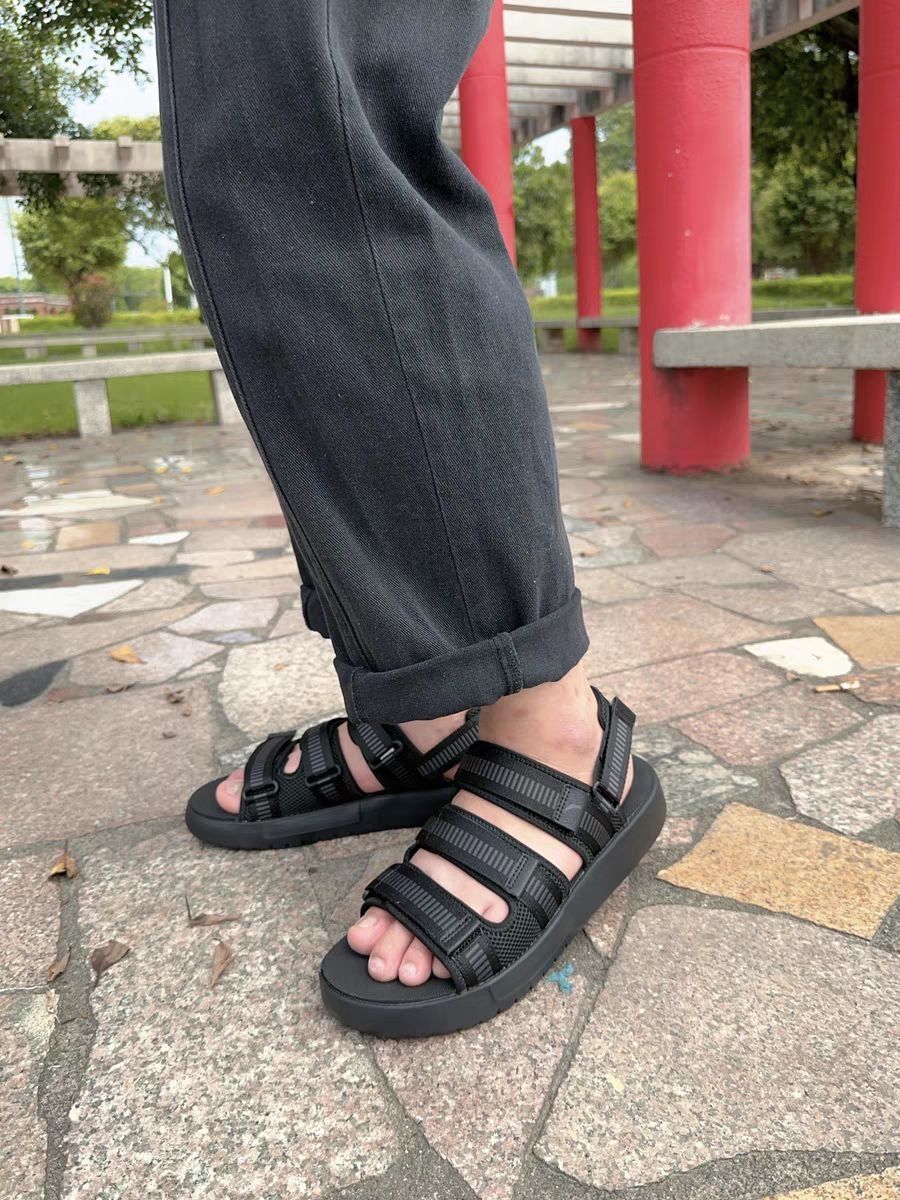黑色款简洁大方,多魔术贴设计调节方便,穿脱轻松。鞋底有弹性,走路舒适,透气鞋面夏天穿不闷脚。做工质量都在线,日常搭配休闲装、运动装都行,性价比可以,值得考虑。