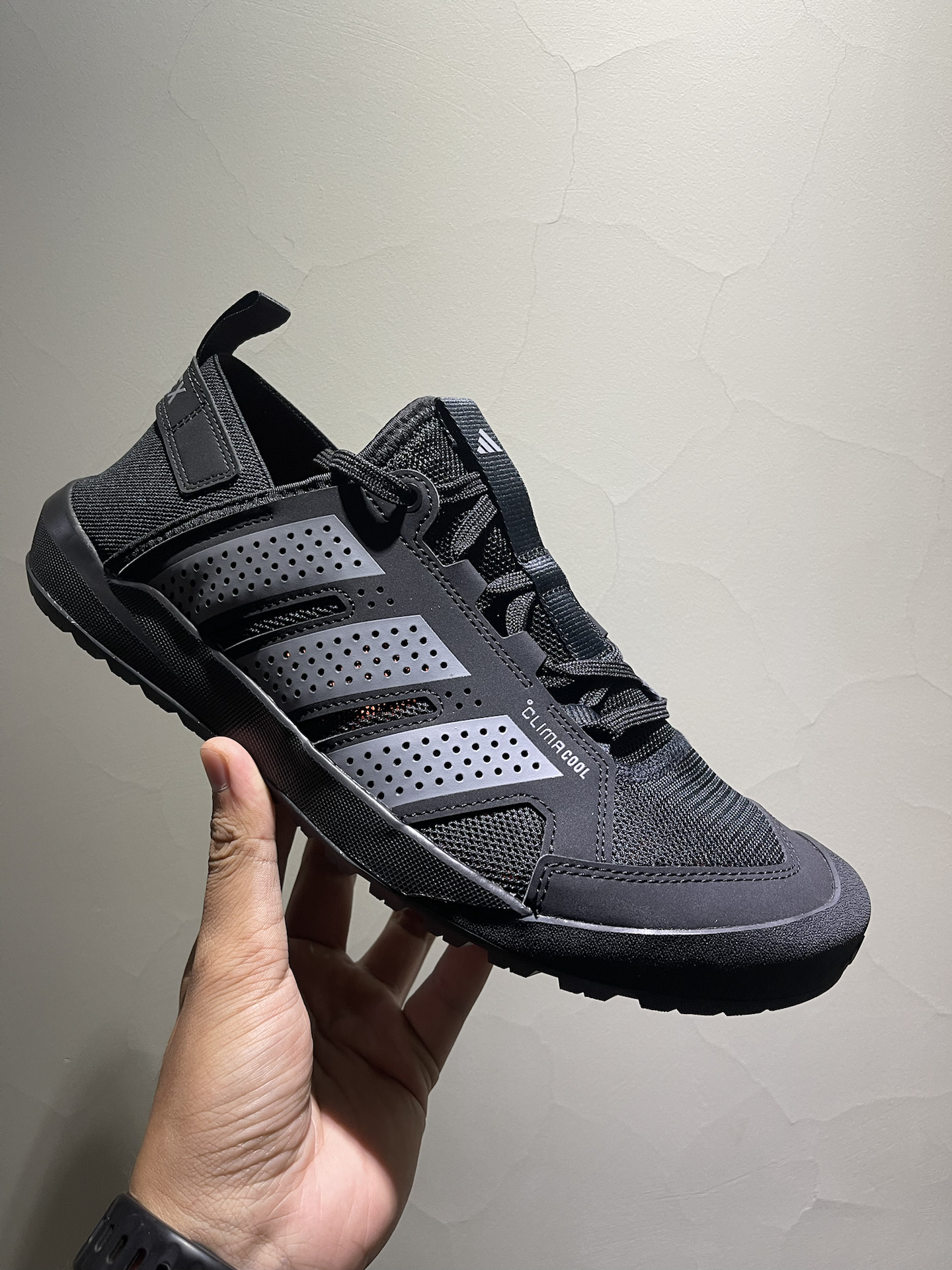 第一次买阿迪的涉水鞋,才知道原来涉水鞋都有设计排水口,哪怕不踩水,鞋子都是非常透气无比,夏天再也不怕闷脚了。 鞋头非常人性化的做了橡胶包头设计,防止脚趾头在行走过程中被一些尖锐物品划伤,这点很赞。 马牌大底一开始我还以为和普通的鞋底没什么区别,真正拿在手上的时候才能感慨道这玩意是真的防滑,特别完美的设计,又透气,有防滑,还有保护性的鞋子,真的可以考虑在炎热且多雨的夏天前入手一双!