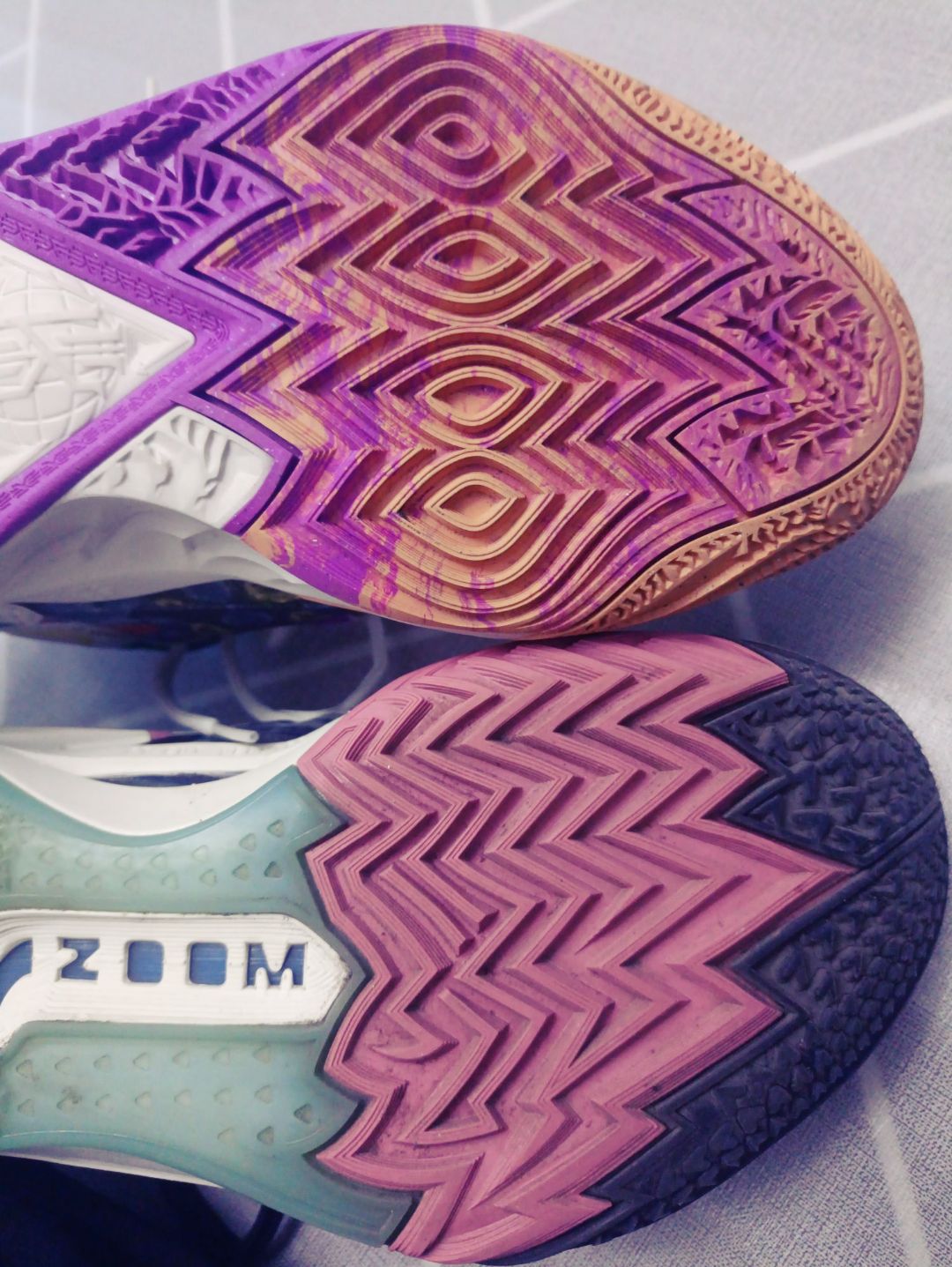 中底三件套:全掌Zoom Strobel气垫+React鞋垫+后掌六边形Zoom,缓震极限高到离谱,90公斤大体重落地膝盖无压力,起跳时还能感受到气垫的弹射助推感。