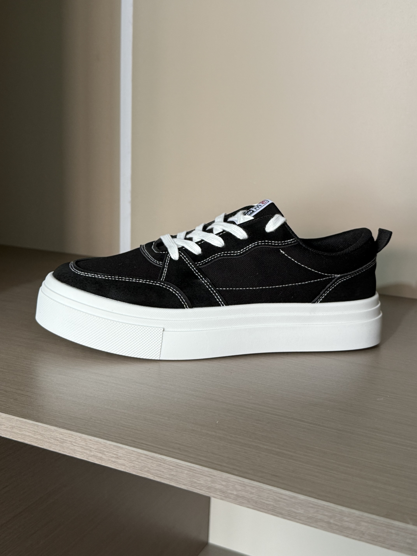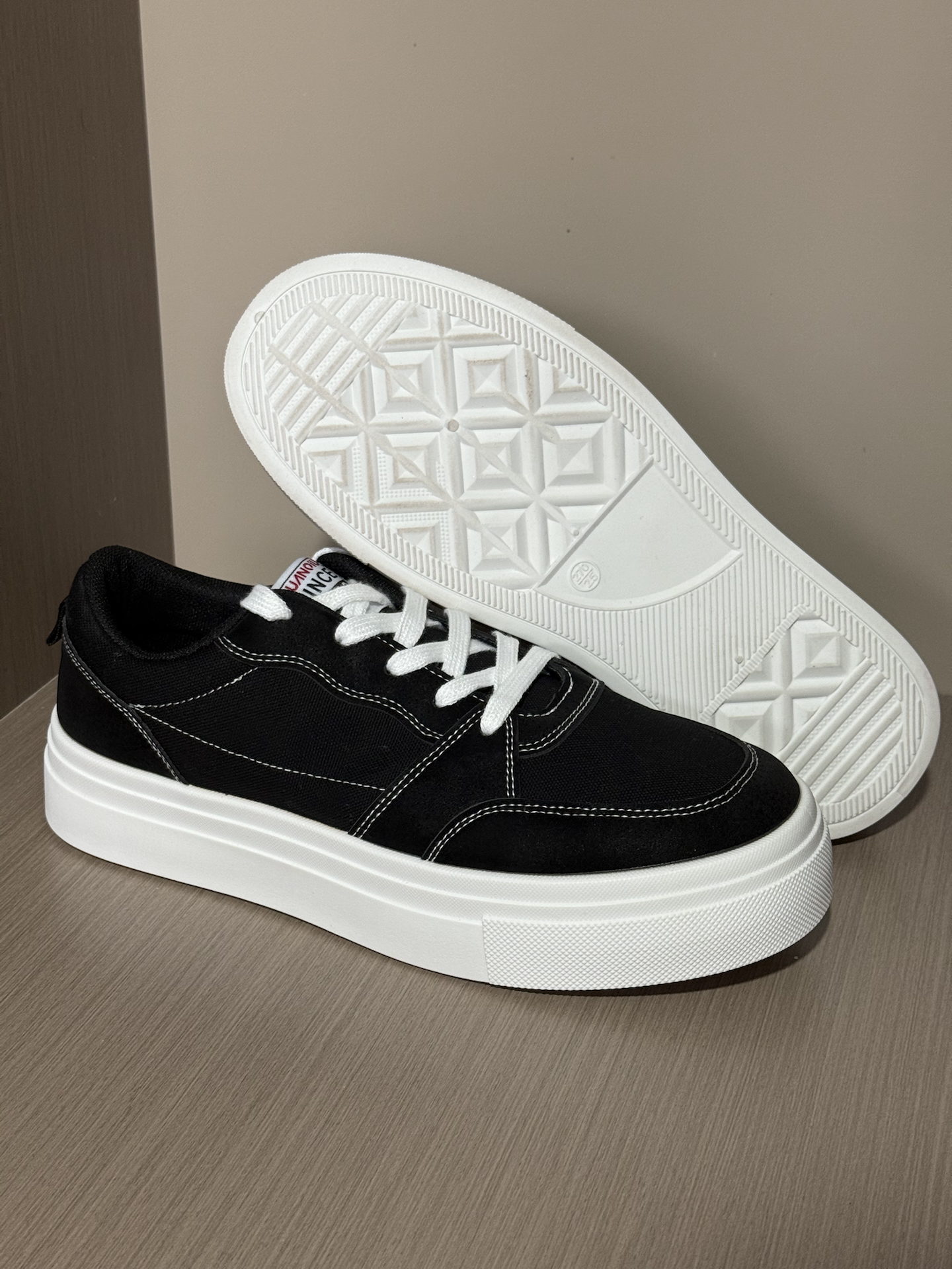 60+的小板鞋能有什么好表现? 本来我也嗤之以鼻,结果上脚啪啪打脸👋! 🖤4cm隐形厚底比增高垫还绝!腿长直接拉出屏幕 🖤鞋底软到像踩QQ糖(说好的板鞋梆硬呢?) 🖤配工装裤拽成街头潮人/换运动裤简约随意 ⚠️更离谱的是鞋面帆布材料!夏天不闷脚🦶🏻 ⚠️44码脚穿出42码既视感 终于没人说像船了😅 打工党早八跑路/学生党日常上课/情侣压马路全适配 几杯奶茶钱穿四季 脏了直接换新...